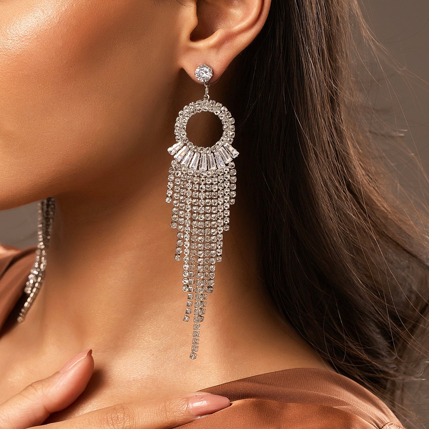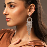 Introducing the Korean Bling Celestial Cascade Earrings—a mesmerizing blend of elegance and modern allure that effortlessly elevates your look. Crafted from premium alloy and finished in a lustrous white rhodium plating, these statement earrings feature a dazzling circular design adorned with shimmering rhinestones that cascade gracefully, creating an ethereal waterfall effect. Designed for the modern woman who embraces trend-setting elegance, these danglers are the perfect accessory for parties, office jewelry, vacations, and even everyday wear. The celestial-inspired design beautifully complements both Western outfits and traditional ensembles, making them an ideal gift for women, be it a girlfriend, wife, mother, sister, or lover. Whether you’re dressing up for Valentine’s Day, Diwali, Rakshabandhan, Christmas, New Year, or planning a special gifting moment, these trendy Korean earrings are bound to impress. Flaunt your chic side with this radiant masterpiece that effortlessly embodies class and sophistication.