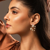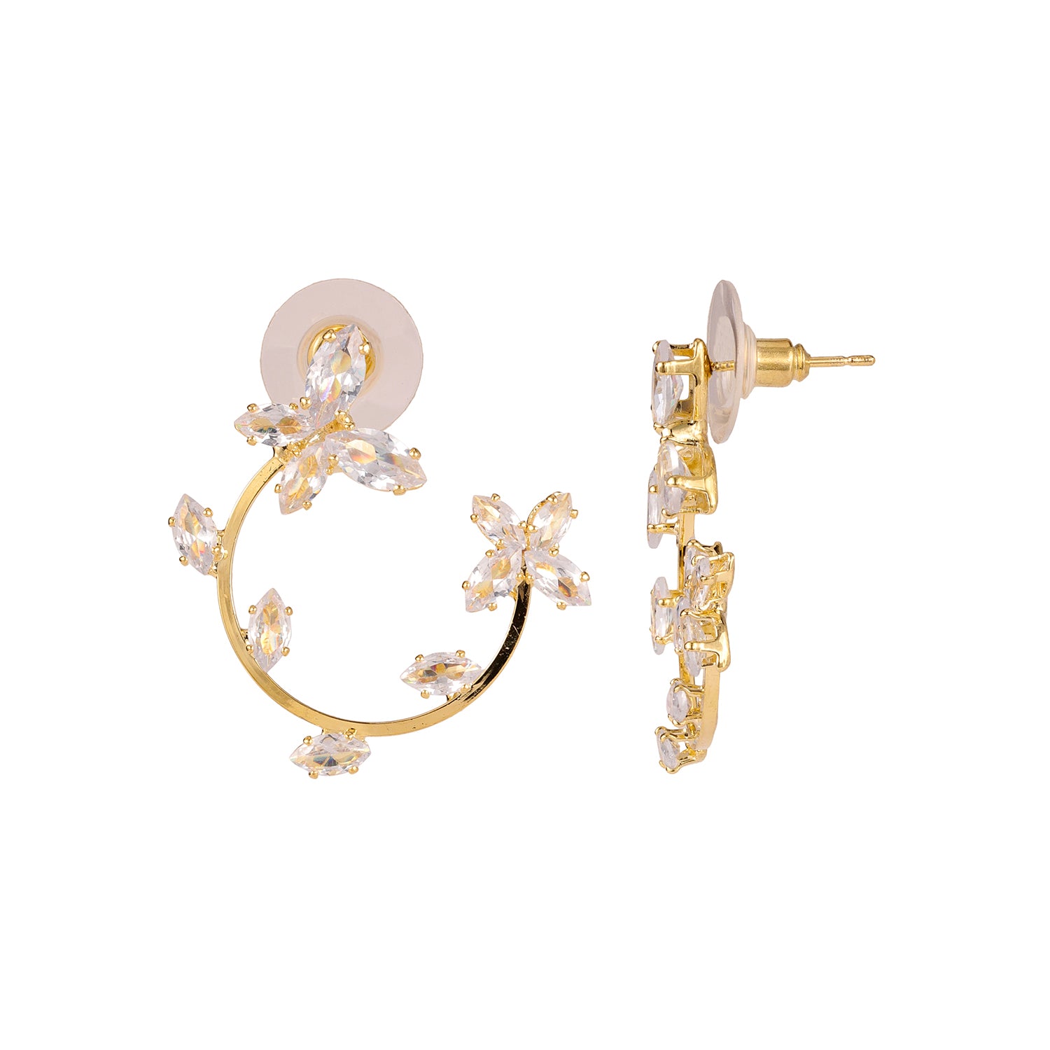 The Korean Bling Daisy Dream Hoop Earrings are a stunning blend of elegance and artistry, designed to capture attention with their enchanting daisy-inspired floral pattern. Each petal is carefully crafted to exude a sense of freshness and charm, embodying the timeless beauty of nature. The earrings are meticulously made from high-quality alloy, ensuring both durability and a lightweight feel, while the yellow gold plating adds a luxurious, radiant finish that highlights the intricate details of the design. A signature piece from the Korean Bling collection, they effortlessly merge modern sophistication with a touch of traditional allure, making them versatile for all occasions—from casual outings to office wear, festive celebrations, and glamorous parties. These unique floral danglers are perfect for styling with a variety of outfits, adding a chic flair to Western, vacation, or everyday looks. Ideal as a thoughtful gift for women, these earrings are sure to bring joy and elegance to the recipient, whether for Valentine's Day, Rakshabandhan, Diwali, or any special celebration.