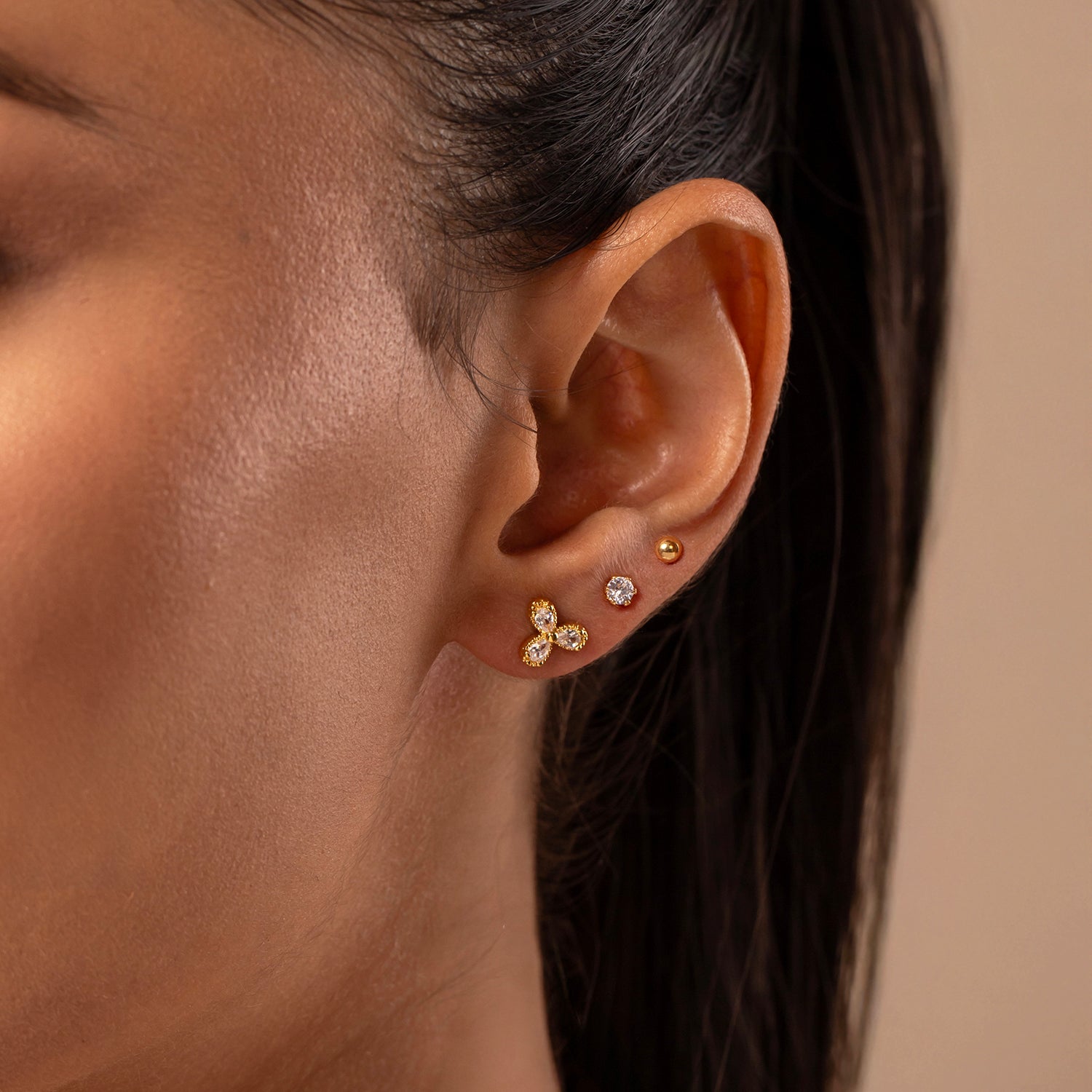 Why choose one when you can sparkle in three, The Korean Bling Essential Glam Set Earrings Combo is a versatile earrings set for women that blends elegance with everyday practicality. Part of the Korean Bling collection, this earrings combo for women includes three distinct stud designs, a dazzling crystal-studded floral trio, a timeless solitaire stud, and a sleek polished ball stud. Crafted with high-quality alloy and plated in radiant yellow gold, this set of earrings is designed to add charm, versatility, and sparkle to your jewellery collection. This Korean style earrings combo is perfect for every occasion. Wear the floral trio as bold Korean statement earrings for evenings, the solitaires as subtle everyday wear earrings, and the golden ball studs for polished workwear chic. Comfortable, stylish, and easy to pair with any look, these studs are trendy earrings for women who love both glamour and minimalism. They also make a thoughtful gift for her, a meaningful earrings gift for birthdays, anniversaries, or festive occasions. Whether it’s a gift for girlfriend, a special women gift, or versatile jewellery gifts for women, this earrings set for women is sure to delight.