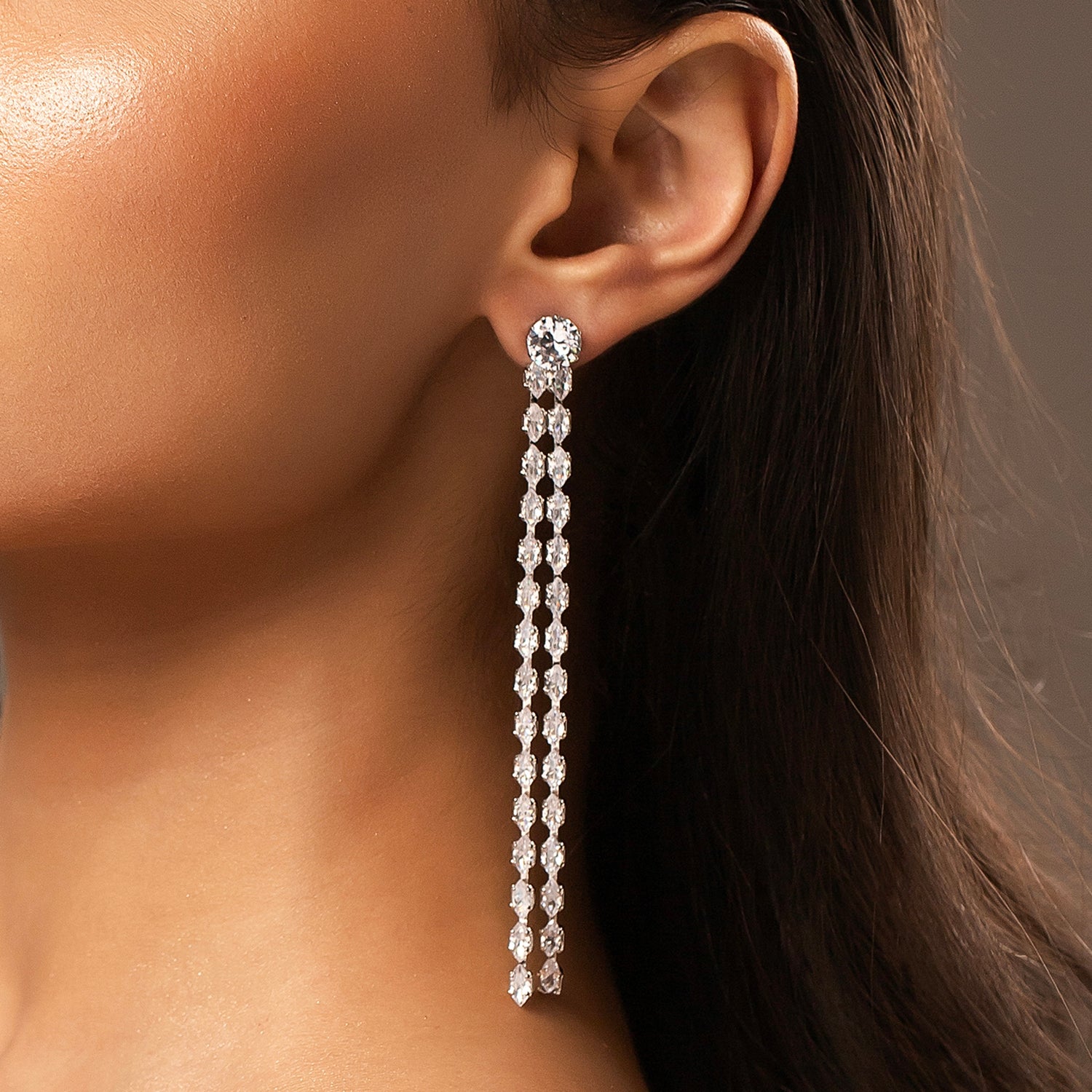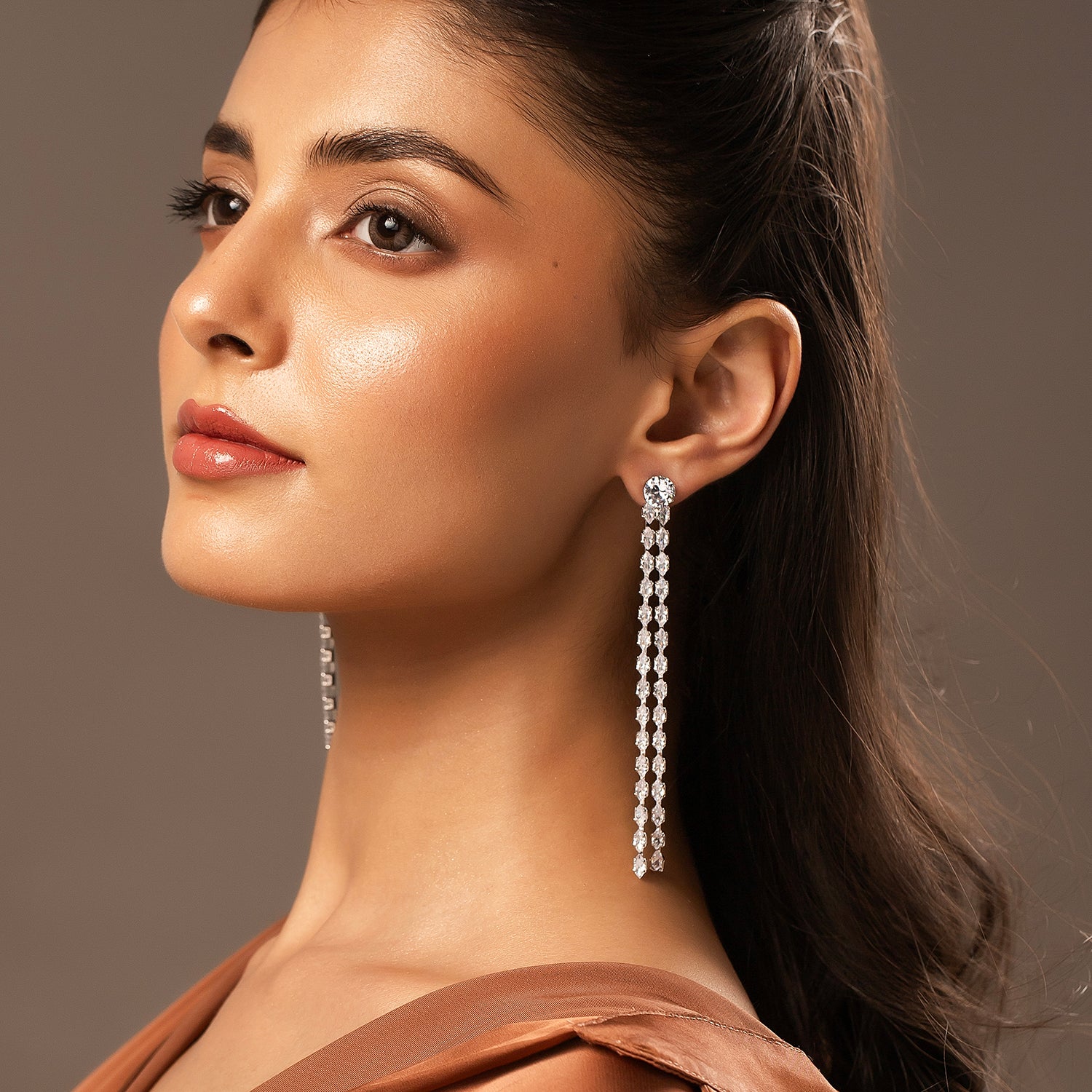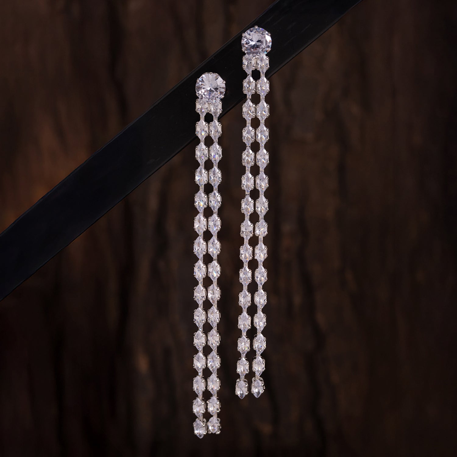 The Korean Bling Glitter Rainfall Long Earrings are a masterpiece of elegance, designed to capture the ethereal beauty of cascading raindrops. Crafted from high-quality alloy and finished with luxurious white rhodium plating, these earrings feature delicate floral elements that seamlessly transition into dazzling crystal strands, evoking a rainfall-inspired shimmer. Whether styled with formal attire for evening occasions or paired with chic Western outfits for everyday wear, these statement danglers embody grace and sophistication. The refined sparkle makes them an ideal pick for party earrings, vacation ensembles, or office jewelry, effortlessly elevating any look. Gift them as a Valentine’s Day surprise, a Diwali delight, or a heartfelt Rakshabandhan gesture—these earrings are perfect for sisters, girlfriends, wives, mothers, and lovers, turning moments into timeless memories. Their Korean-inspired charm adds an ultra-modern yet classic touch, making them a must-have for jewelry enthusiasts who adore designer pieces with a unique flair.