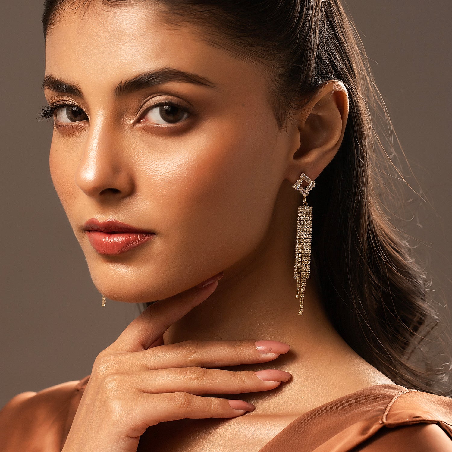 The Korean Bling Golden Cascade Earrings are a masterpiece of elegance and versatility, crafted to enhance any woman’s personal style. Made from premium alloy and finished with radiant yellow gold plating, these earrings exude luxury while ensuring durability for everyday wear. Their exquisite cascading design, adorned with delicate floral motifs, strikes the perfect balance between classic and contemporary. Whether you’re heading to an office meeting, a casual brunch, or a lavish evening party, these statement earrings effortlessly elevate your ensemble. The warm golden hue complements both bold and pastel tones, making them ideal for pairing with chic western outfits, vacation-ready dresses, or even festive attire for Diwali and Rakshabandhan. Part of the Korean Bling collection, these danglers are designed for the modern woman who appreciates unique, trendy accessories. Perfect as a thoughtful gift, they’re a heartwarming choice for Valentine’s Day, Christmas, New Year, or Rakhi—whether for your sister, girlfriend, wife, or mother.