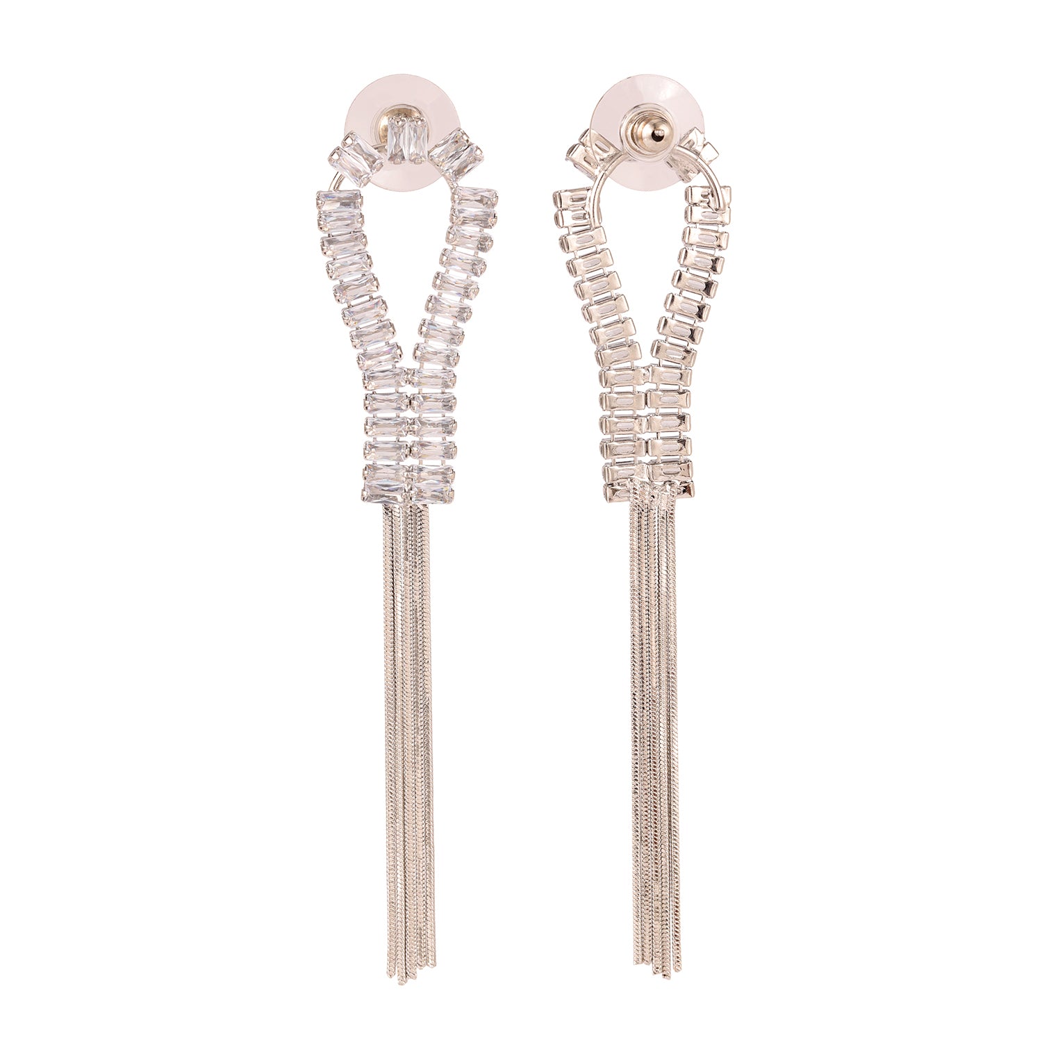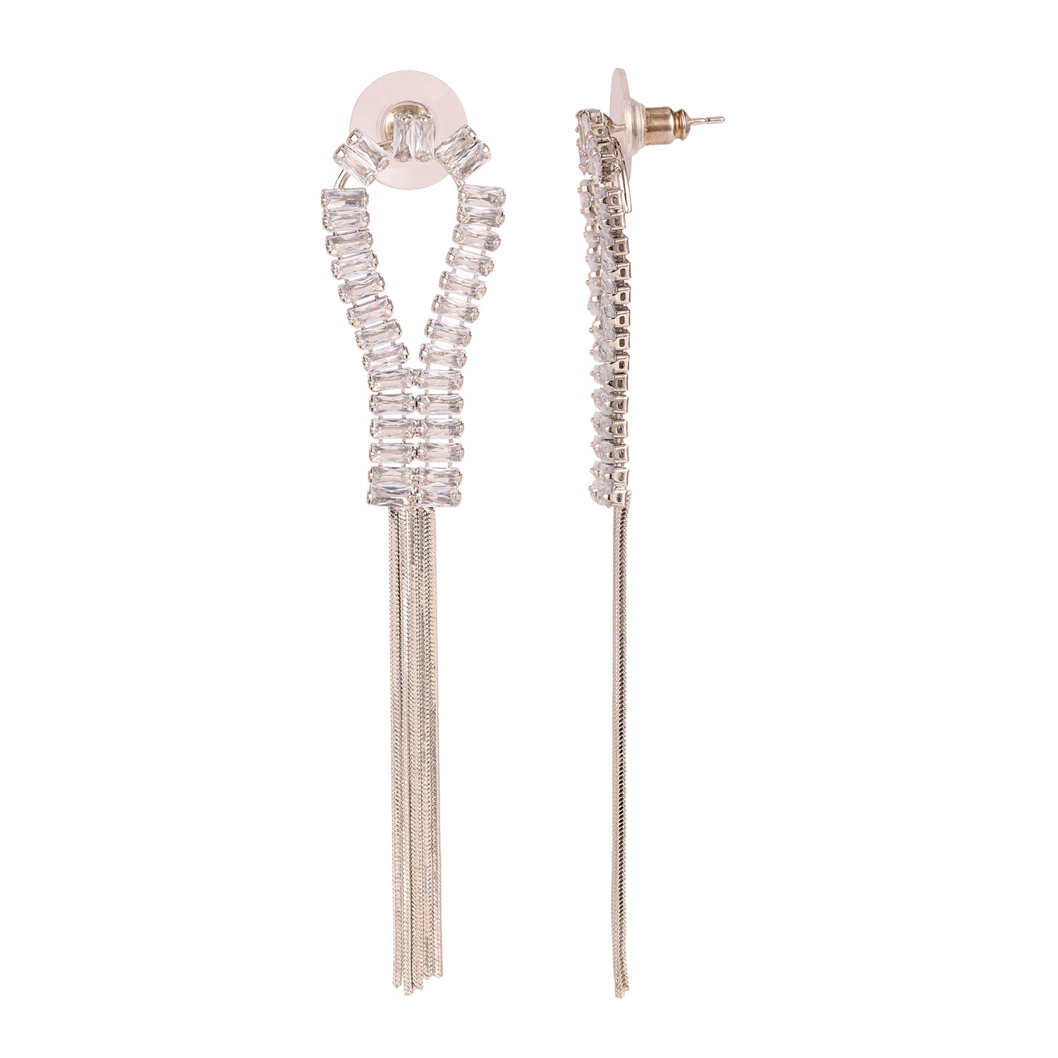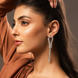 Embodying a harmonious blend of elegance and modern sophistication, the Korean Bling Icy Glamour Tassel Earrings are designed to dazzle with every turn. These danglers radiate a refined allure, crafted from high-quality alloy and plated in white rhodium to ensure lasting brilliance. Their floral-inspired design, adorned with sparkling clear crystals, cascades gracefully into delicate tassels that move effortlessly, adding a dynamic touch to any ensemble. A signature piece from the Korean Bling collection, these statement earrings are perfect for party wear, office jewelry, or even as chic accents for vacation wear. Whether paired with a flowing gown, a sharp blazer, or festive ethnic attire, their versatile aesthetic makes them a seamless addition to both Western and traditional wardrobes. A true gift for women, they make a memorable present for Valentine’s Day, Rakshabandhan, Diwali, Christmas, New Year, or as a heartfelt token for a wife, mother, girlfriend, or sister. Elevate your jewelry collection with this designer treasure, designed to complement every facet of a woman’s life—be it travel, office chic, or celebratory moments.