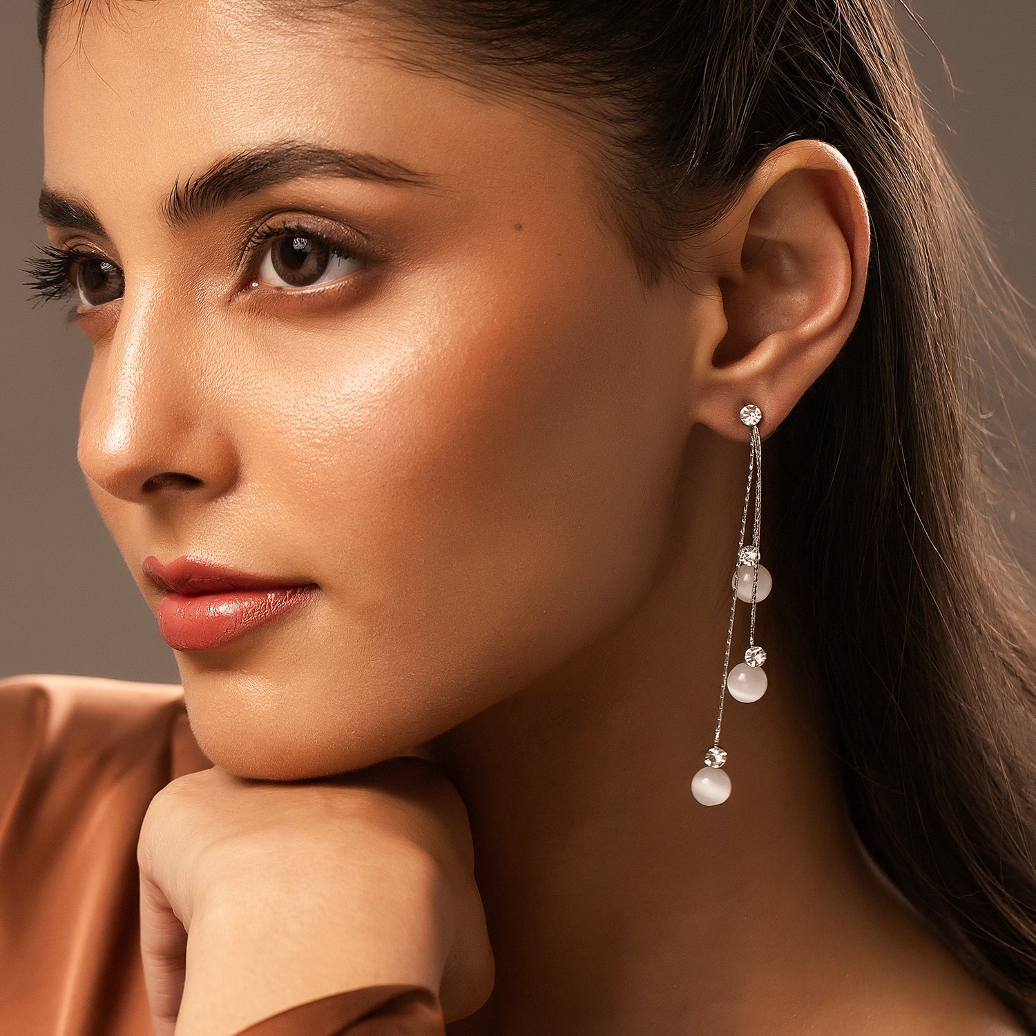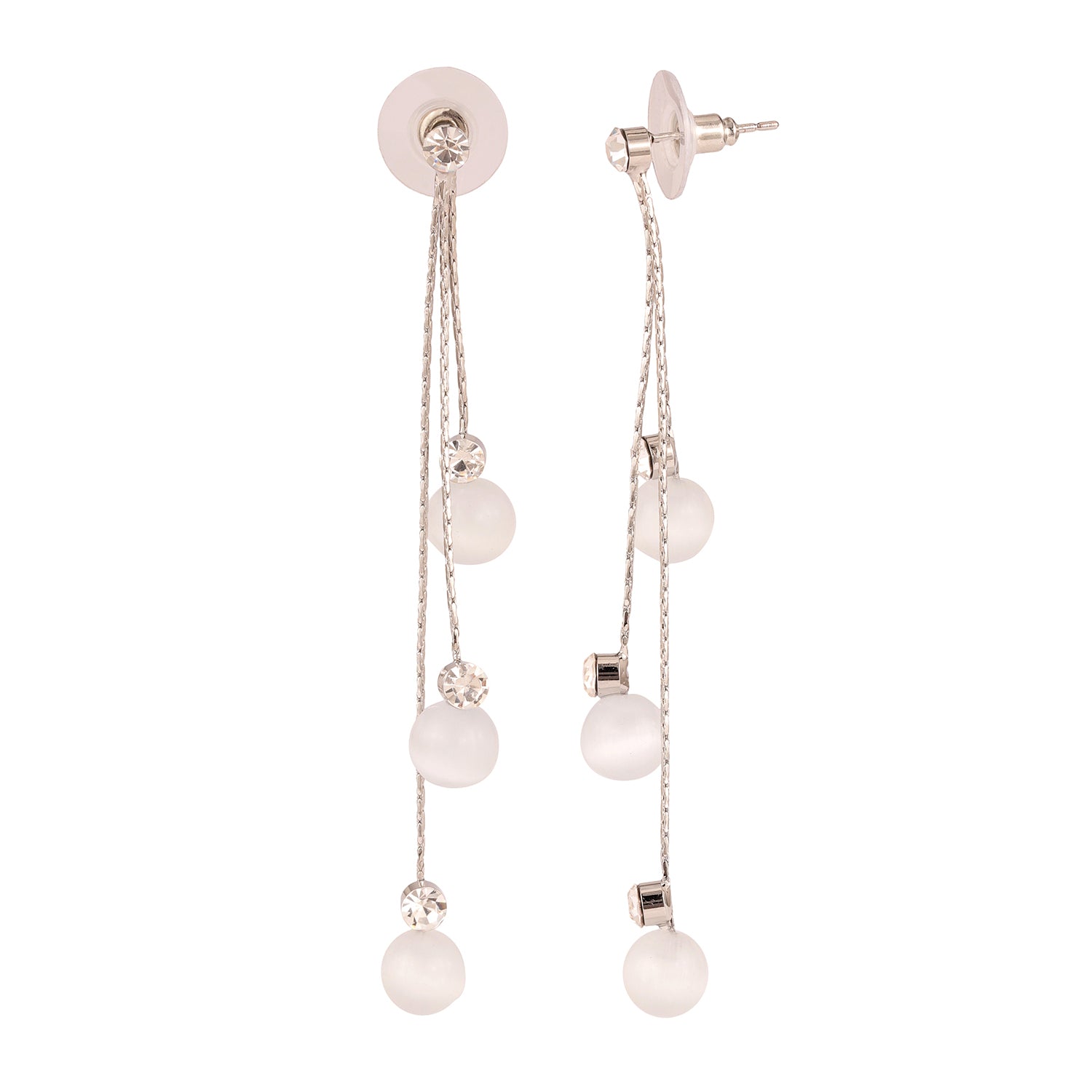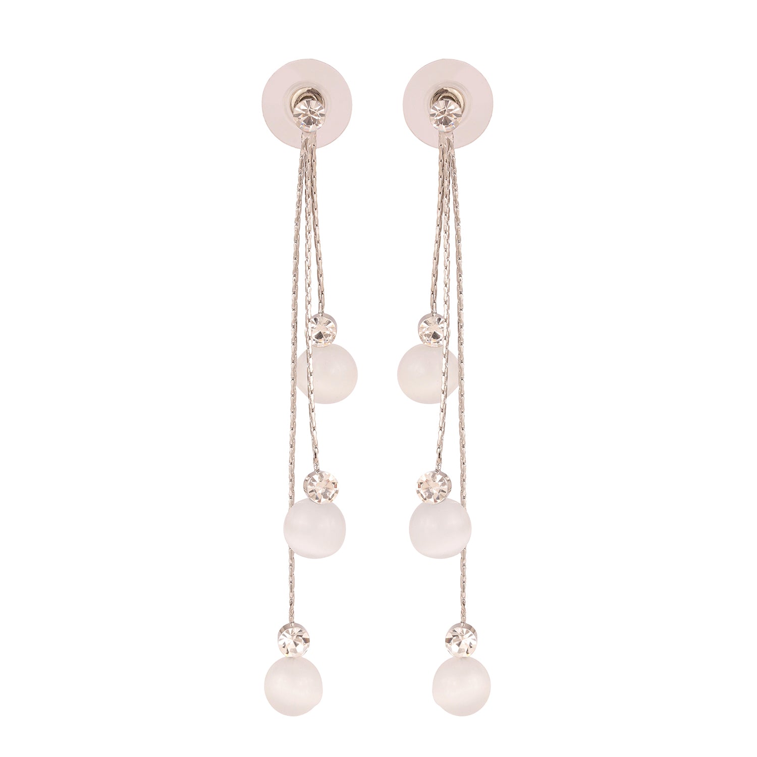 The Korean Bling Moonlit Drizzle Tassel Earrings are an exquisite fusion of contemporary design and timeless charm, making them a standout piece for any occasion. Crafted from premium alloy with a sleek white rhodium plating, these earrings radiate a moonlit elegance. The delicate tassels are intricately designed, evoking a cascading drizzle effect that is both chic and ethereal. Part of the Korean Bling collection, these women’s earrings are tailored for partywear, vacation wear, and even everyday sophistication. The versatile color complements a variety of outfits, whether it's an office ensemble, a trendy Western look, or a glamorous evening gown. Their floral-inspired essence makes them a thoughtful gift for women, perfect for celebrating special moments like Valentine’s Day, Diwali, Rakshabandhan, Christmas, or even as a sentimental rakhi gift for sisters. Elevate your style with these statement earrings, designed for women who value trendy, unique, and designer jewelry.