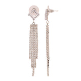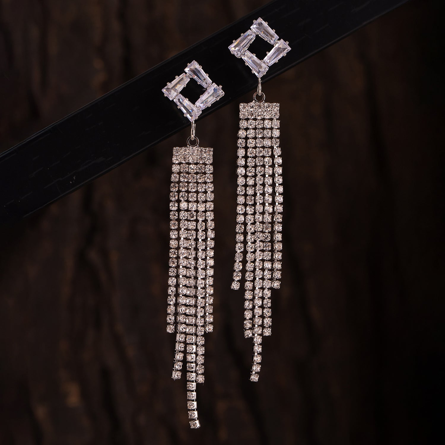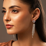 The Korean Bling Twilight Cascade Earrings are a masterpiece of elegance and craftsmanship, designed for the modern woman who loves versatile yet statement-worthy accessories. Made from premium-quality alloy and plated with luminous white rhodium, these earrings feature a captivating floral design paired with cascading strands that shimmer effortlessly with every movement. Their delicate yet intricate composition makes them ideal for party wear, everyday elegance, vacation chic, and even office jewelry. The iridescent hues of the crystals give these earrings a universal charm, beautifully complementing Western outfits like cocktail dresses and chic tops or traditional ensembles for festivities like Diwali and Rakshabandhan. Perfect as gifts for Valentine’s Day, Christmas, and New Year, or thoughtful presents for your girlfriend, sister, wife, mother, or lover, these trendy Korean earrings are a timeless addition to any wardrobe.