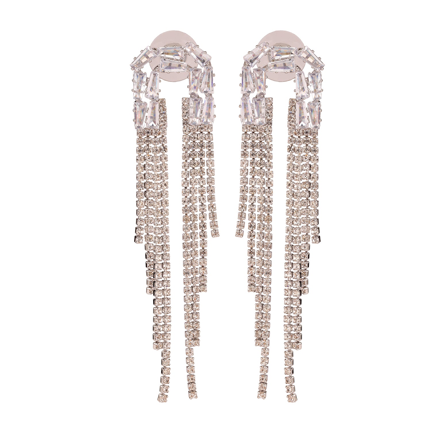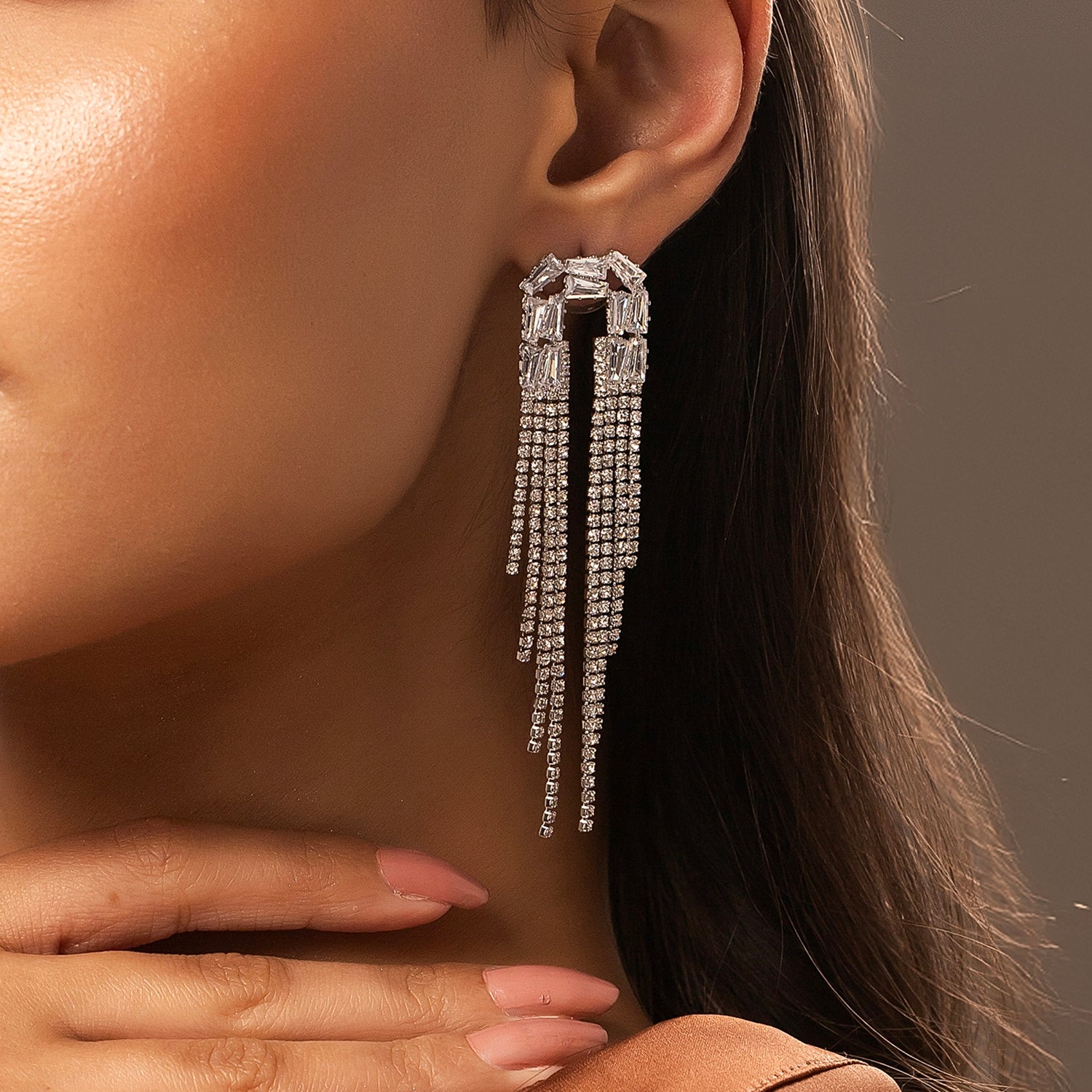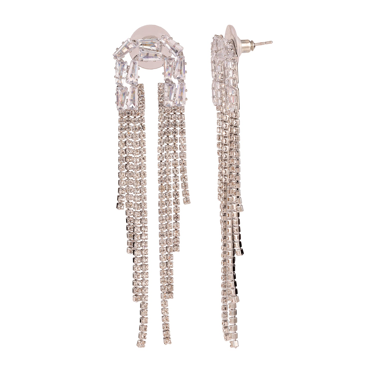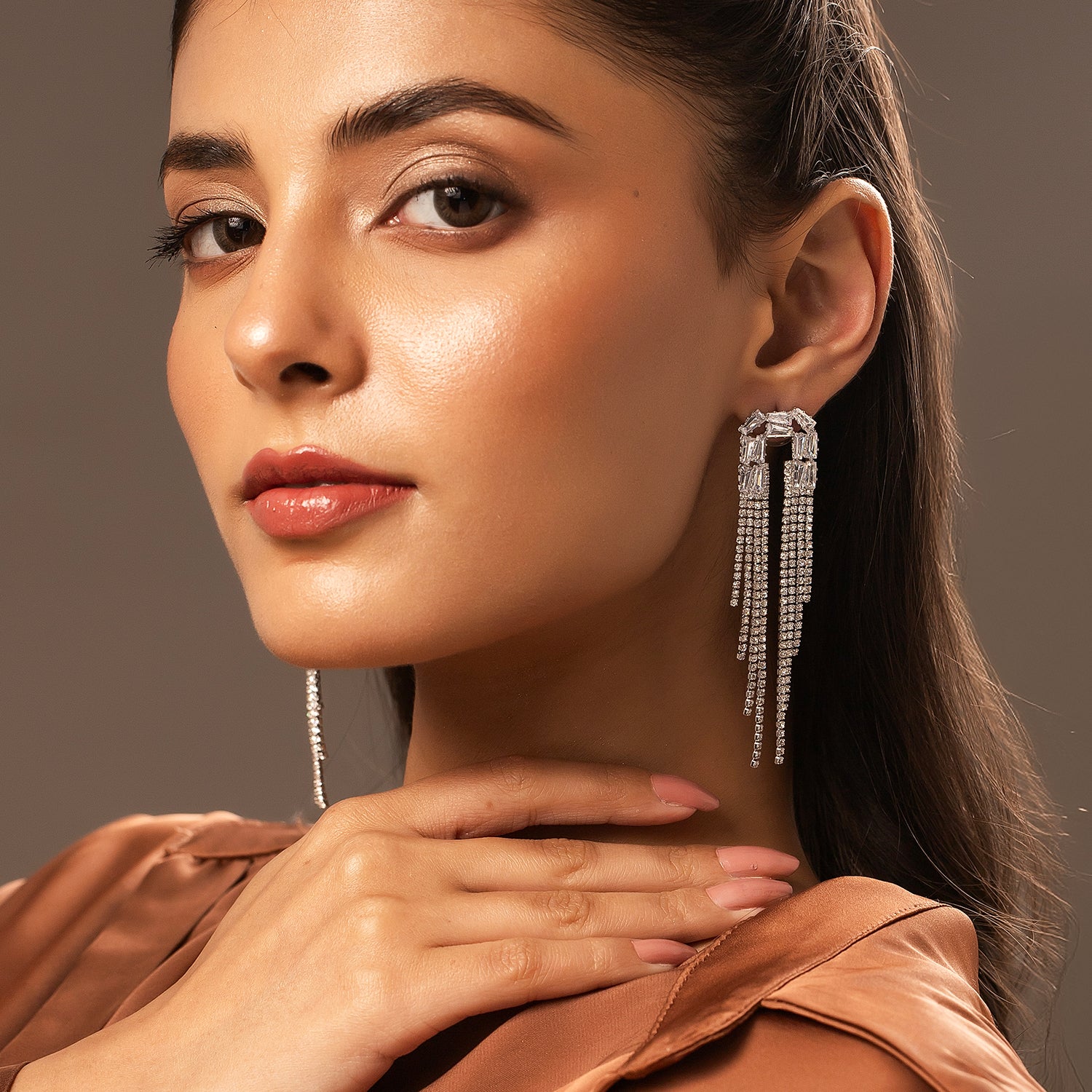 Radiating pure elegance, the Korean Bling Twilight Glimmer Cascade Earrings are a mesmerizing blend of glamour and sophistication, designed for women who love making a statement. These dazzling danglers feature a cascading silhouette of sparkling crystals that shimmer with every movement, creating an ethereal glow perfect for evening affairs, festive celebrations, and chic everyday wear. Crafted from high-quality alloy and coated in luminous white rhodium plating, they exude a refined yet versatile charm that complements both traditional and contemporary fashion sensibilities. Their unique Korean-inspired design effortlessly blends floral grace with modern minimalism, making them an absolute must-have for women who appreciate trendy, designer accessories. Whether paired with elegant gowns for a gala night or styled with casual wear to add a touch of sophistication, these earrings seamlessly transition across occasions—from office jewelry to vacation staples. An exquisite gift for women, these earrings make a heartfelt present for Valentine’s Day, Diwali, Rakshabandhan, Christmas, New Year, or birthdays, perfect for sisters, girlfriends, wives, mothers, or any special woman in your life. With timeless appeal and stunning craftsmanship, these statement earrings redefine chic style, ensuring you radiate confidence and charm wherever you go