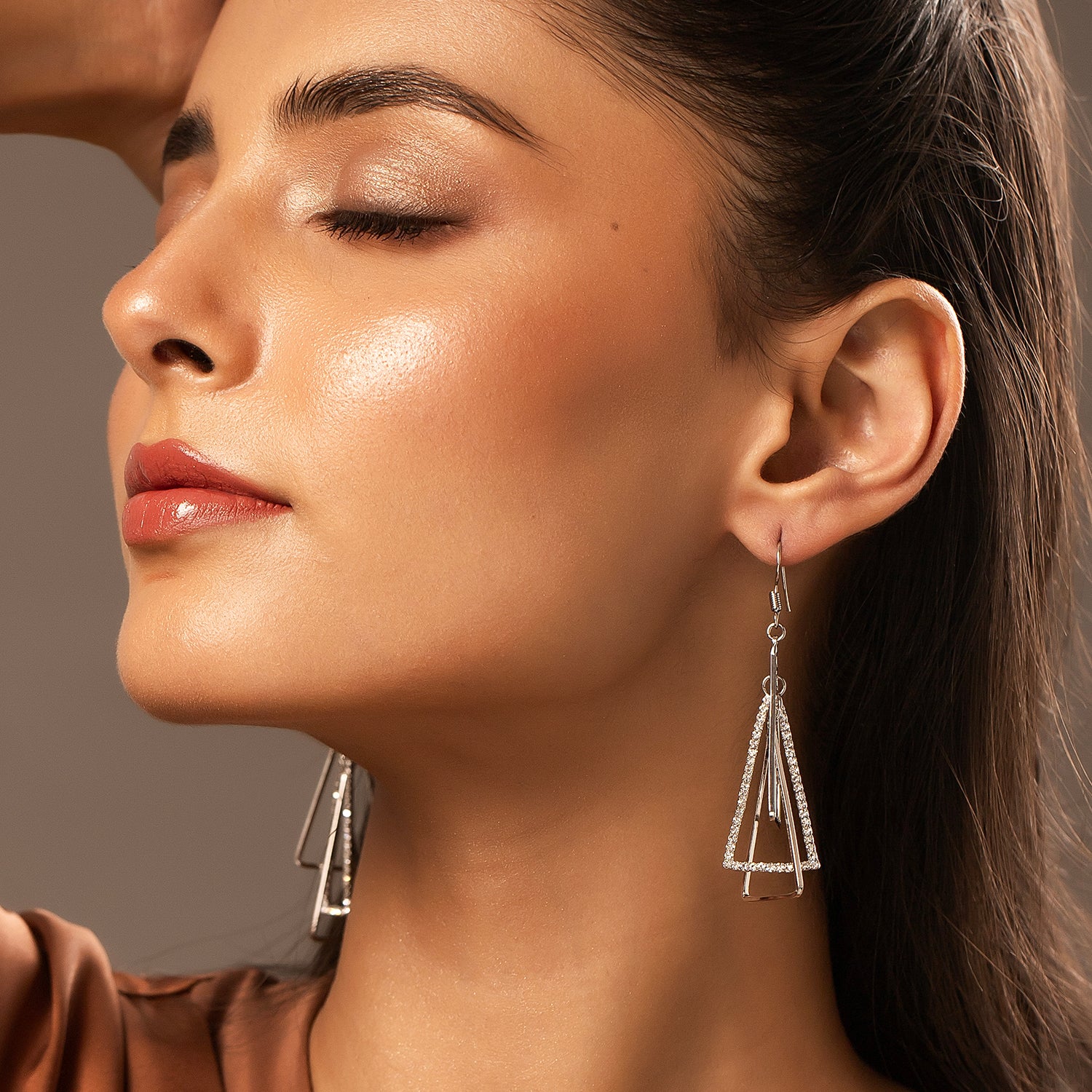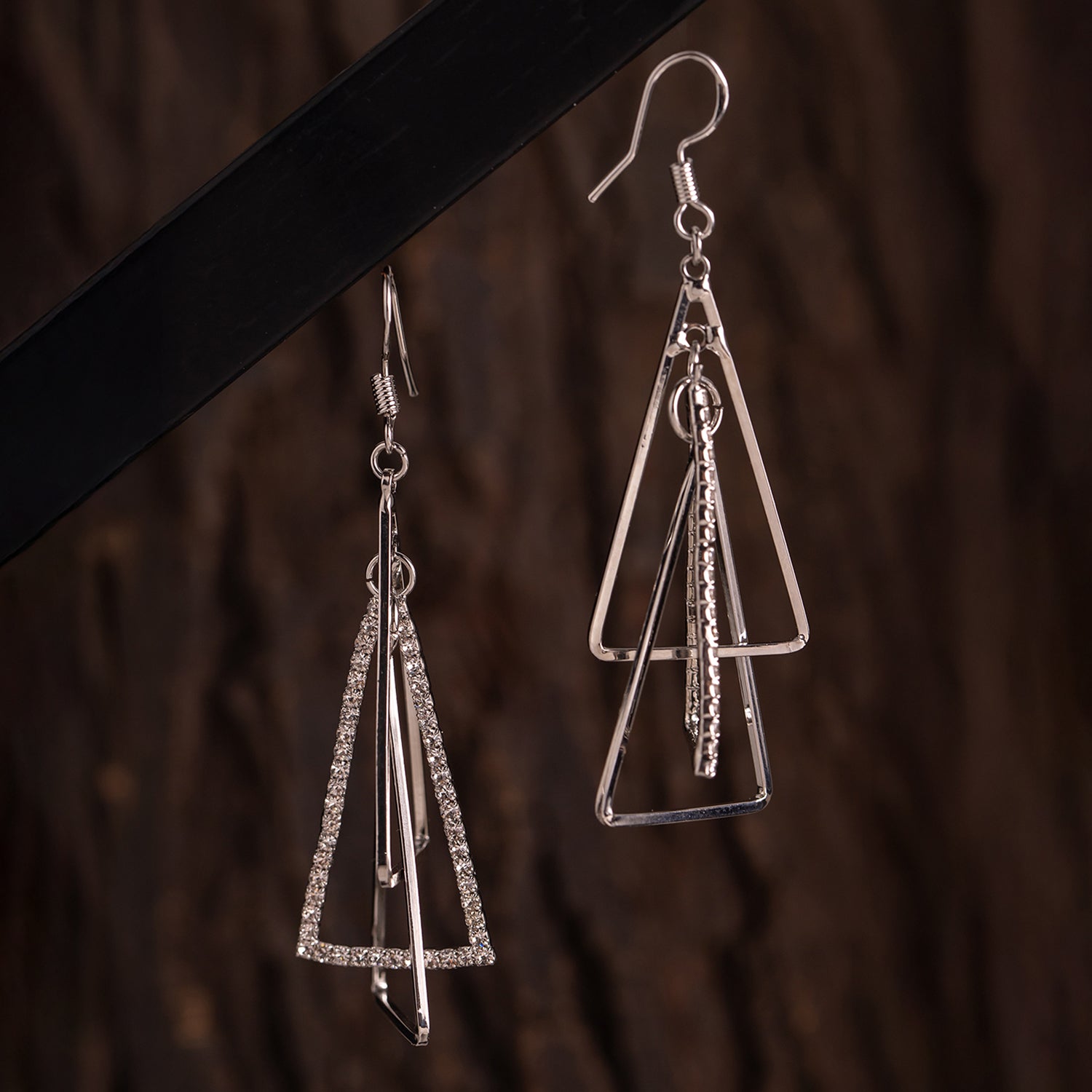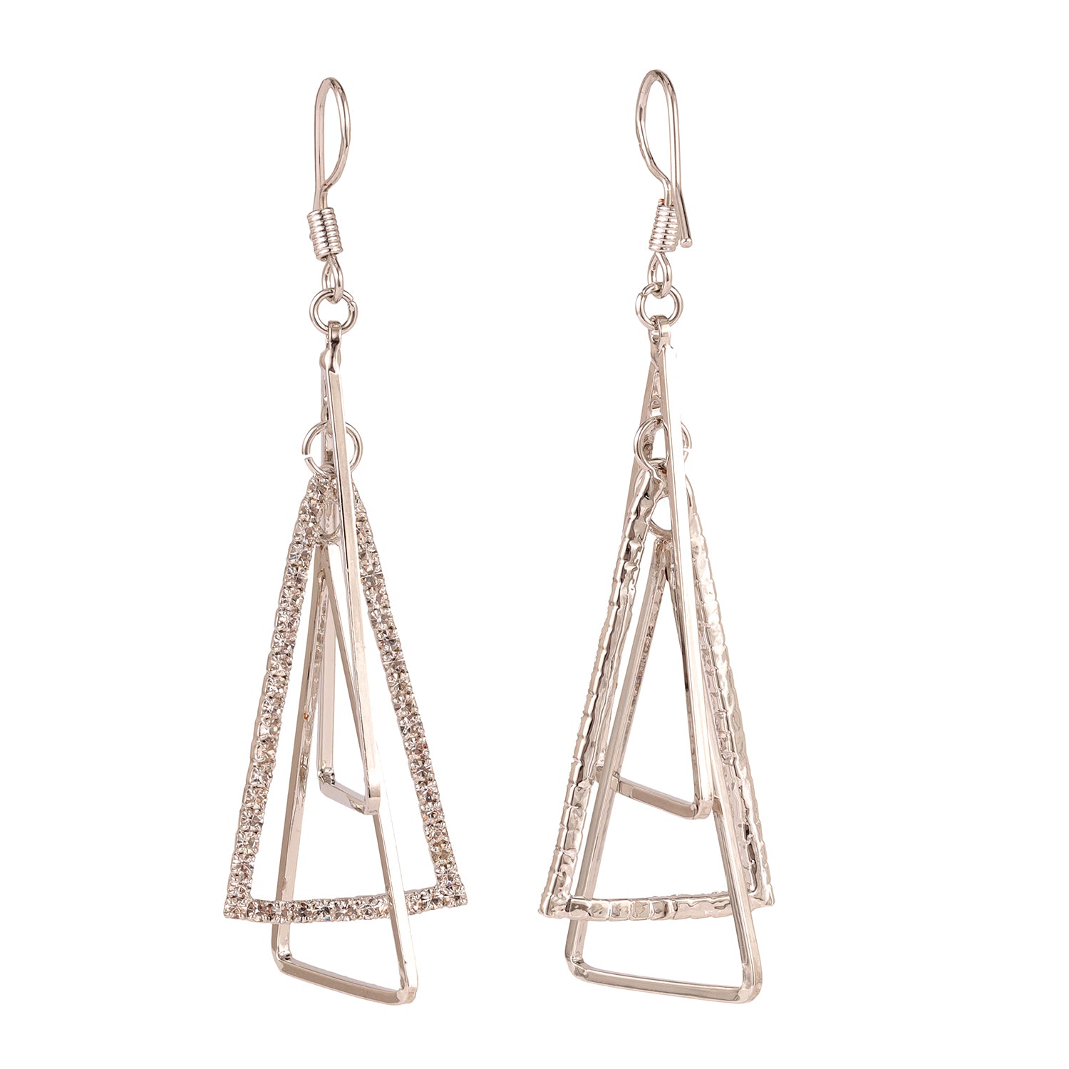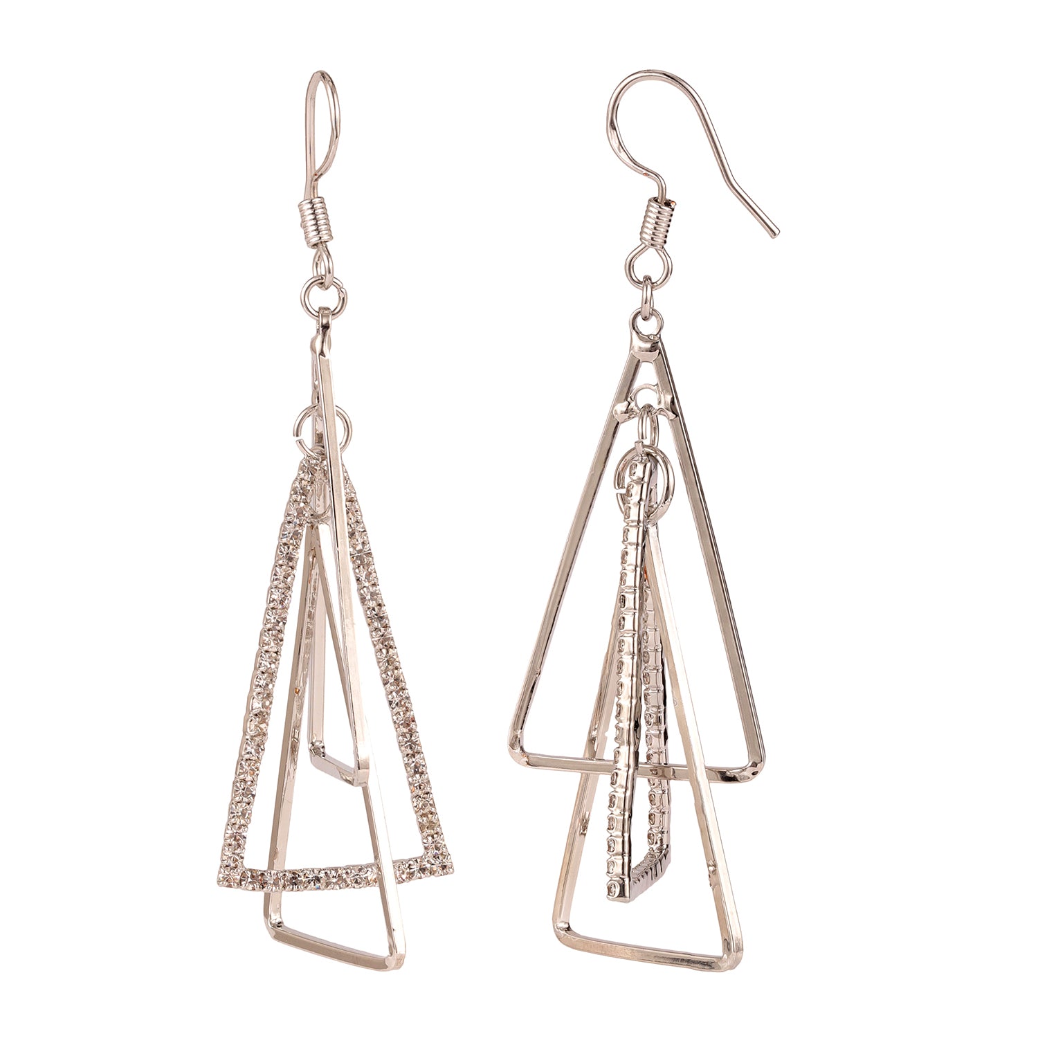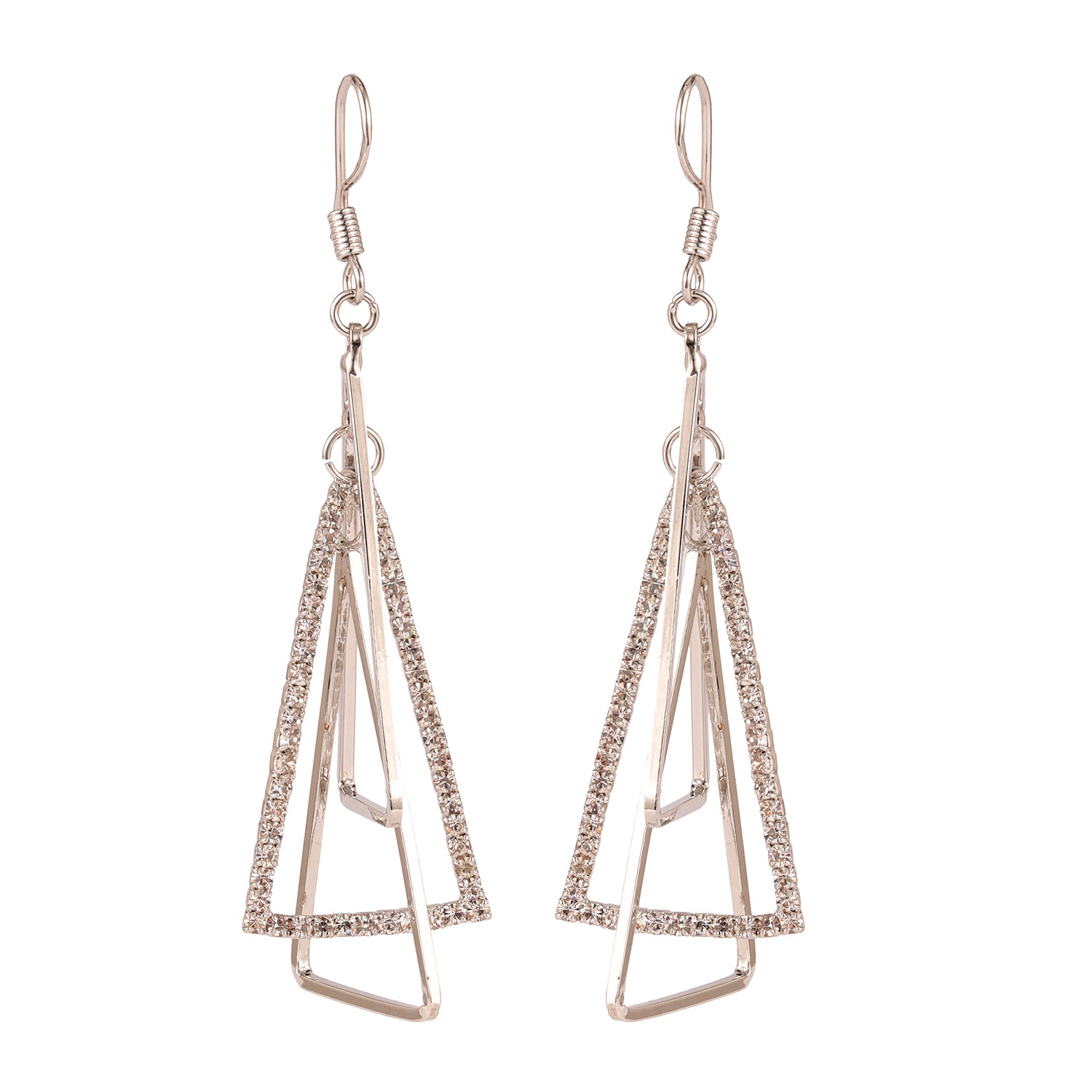 Add an undeniable charm to your jewelry box with the Korean Bling Urban Edge Geometric Earrings. Exquisitely crafted from durable alloy and elegantly plated with white rhodium, these earrings are a true testament to modern artistry. Their striking design features multiple interconnected triangles that create a bold yet chic statement, making them perfect for any occasion. As part of the coveted Korean Bling collection, these earrings seamlessly blend minimalist sophistication with edgy aesthetics, making them an ideal choice for the trend-savvy woman. The sleek silver tone radiates versatility, pairing beautifully with casual office wear, vibrant Holi ensembles, or even chic vacation outfits. Designed to dazzle at parties or elevate everyday wear, these earrings are a stellar pick for gifting—be it for Valentine’s Day, Rakshabandhan, Diwali, or a thoughtful surprise for your sister, mother, or girlfriend. Truly, these statement earrings embody everything from elegance to utility, redefining how you accessorize your look.