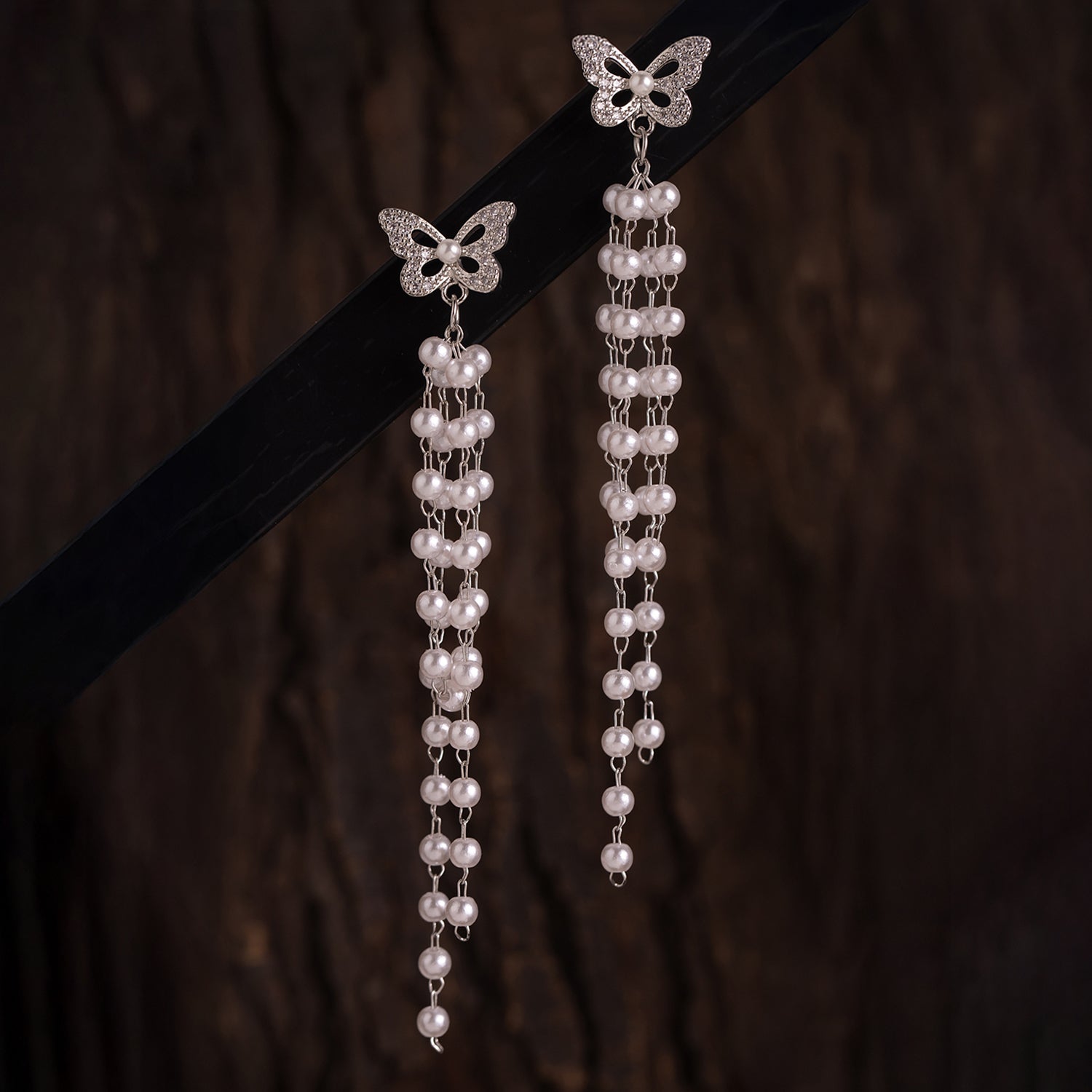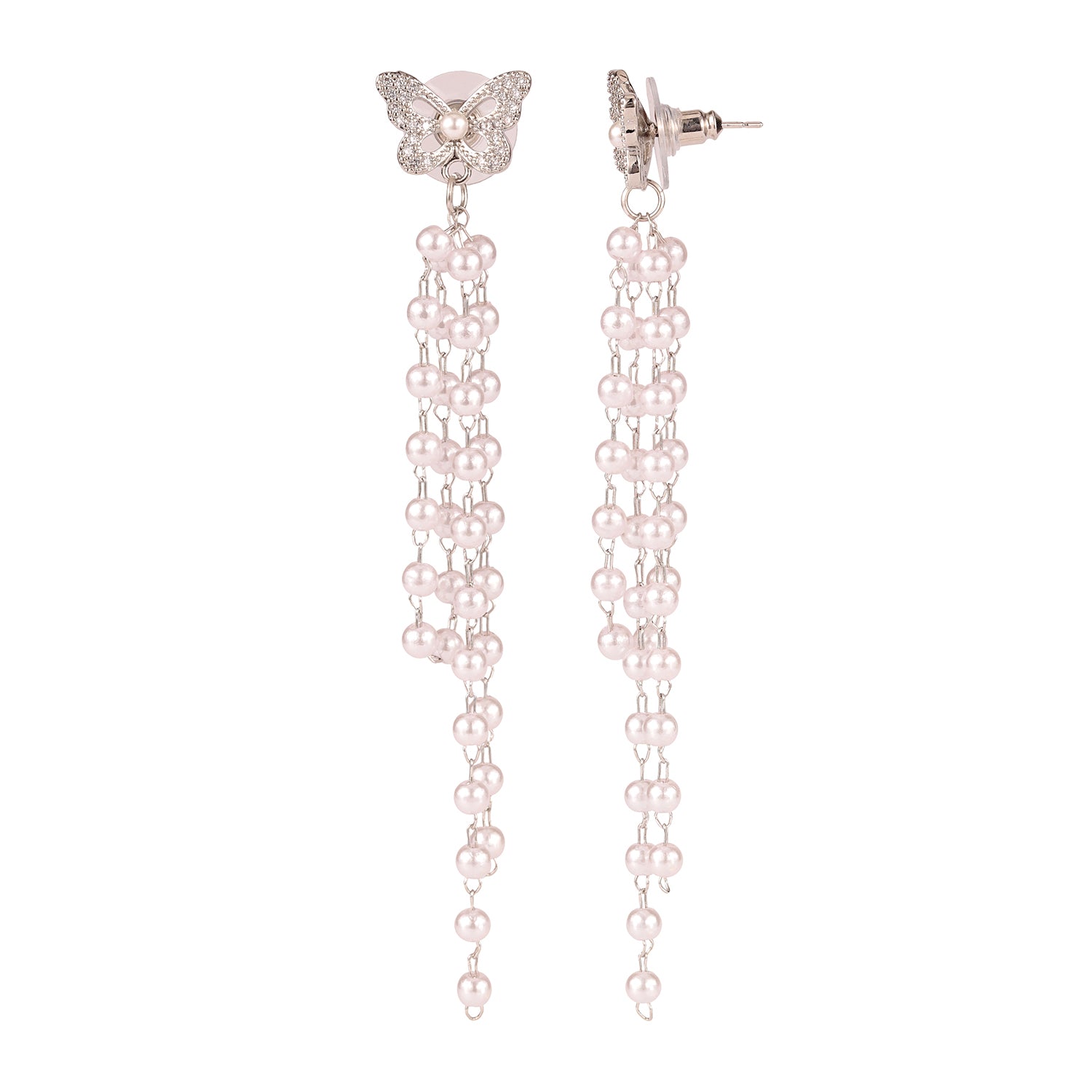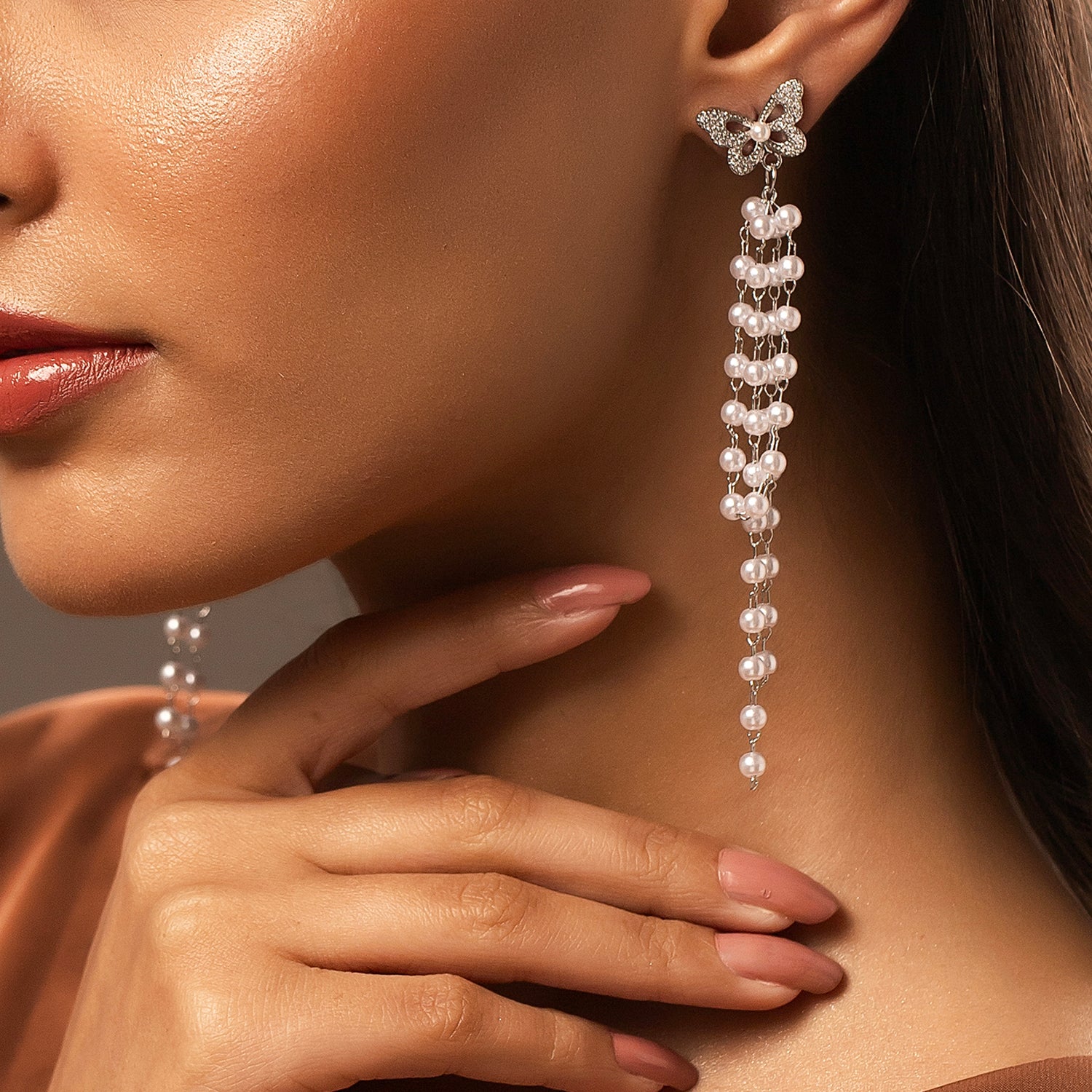 Unveiling the Korean Bling Wings of Wonder Earrings—a breathtaking fusion of elegance and artistry, designed to enchant. These statement danglers are crafted from premium alloy with a lavish white rhodium plating, ensuring a radiant shine that resists tarnishing while exuding a luxe appeal. The earrings feature delicate butterfly motifs, each adorned with dazzling crystals, capturing the essence of nature’s beauty and feminine grace. Suspended from these intricate details are cascading soft pink pearls, lending a graceful movement and timeless sophistication. Whether for office jewelry, a chic party look, or vacation wear, these earrings seamlessly adapt to any setting. Their versatile color palette pairs beautifully with everything from floral prints to sleek monochromes, making them ideal for styling with western wear, festive ensembles, and even romantic date-night outfits. The Korean Bling collection brings a touch of modern trendiness to classic aesthetics, making these earrings perfect for gifting—be it Valentine’s Day, Christmas, New Year, Diwali, Rakshabandhan, or as a thoughtful gesture to a sister, girlfriend, wife, mother, or best friend. A true designer piece, these earrings embody elegance, floral inspirations, and an irresistible chic aura that makes them the ultimate gift for women who love sophistication with a touch of whimsy.