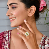 Kundan Elegance Green Beads Oval Cut Faux Kundan Ring