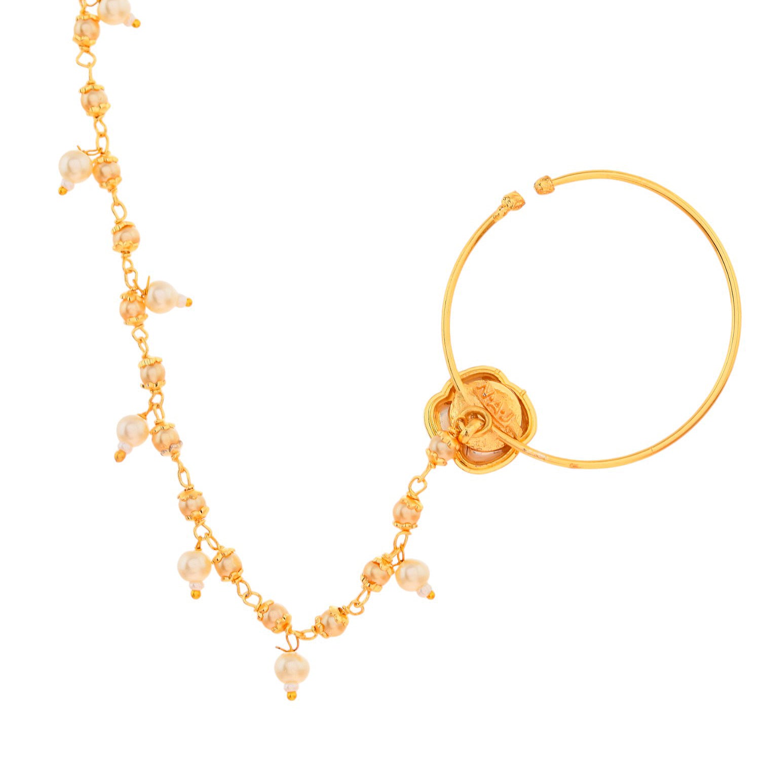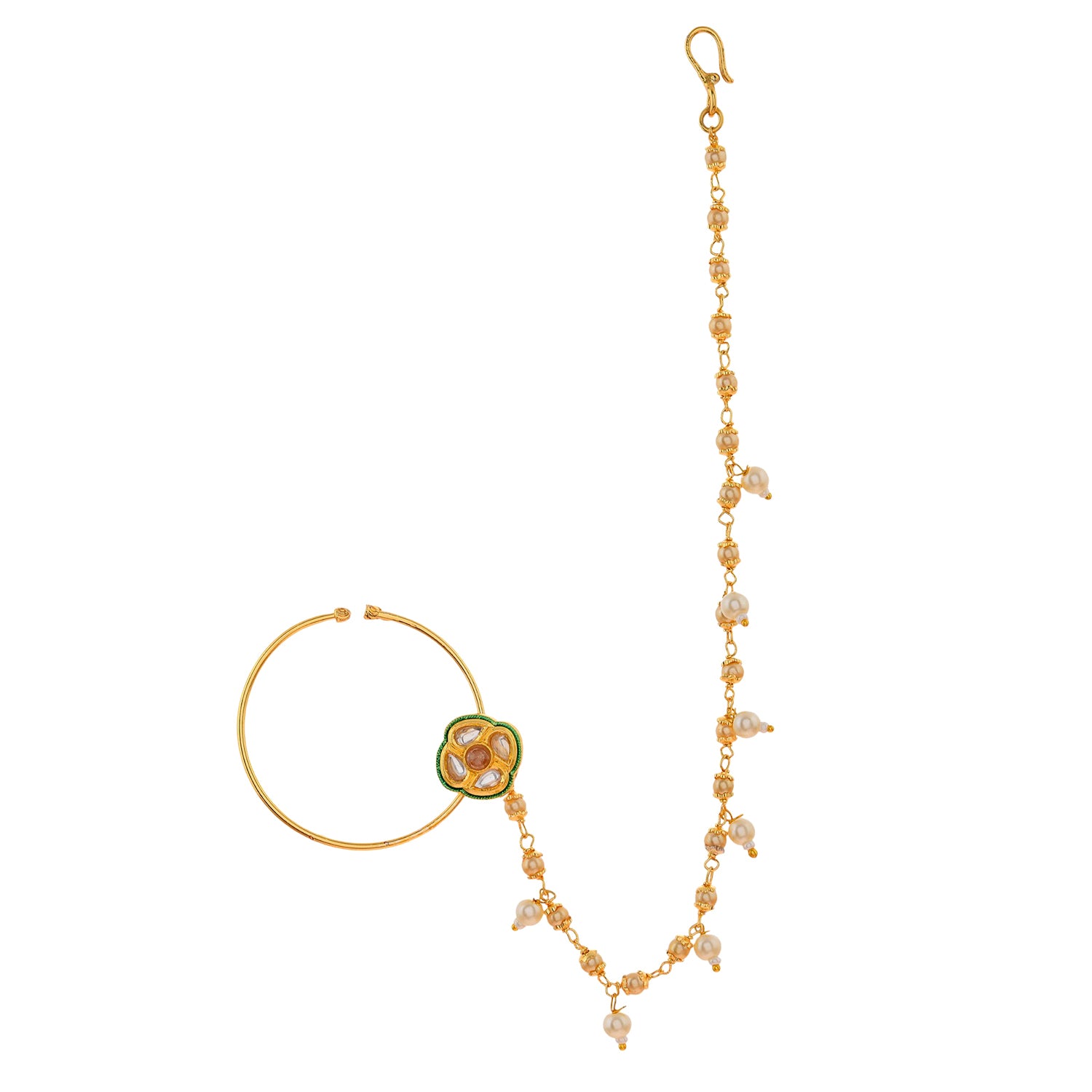 Kundan Elegance Royal Blossom Gold Nose Ring With Chain