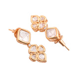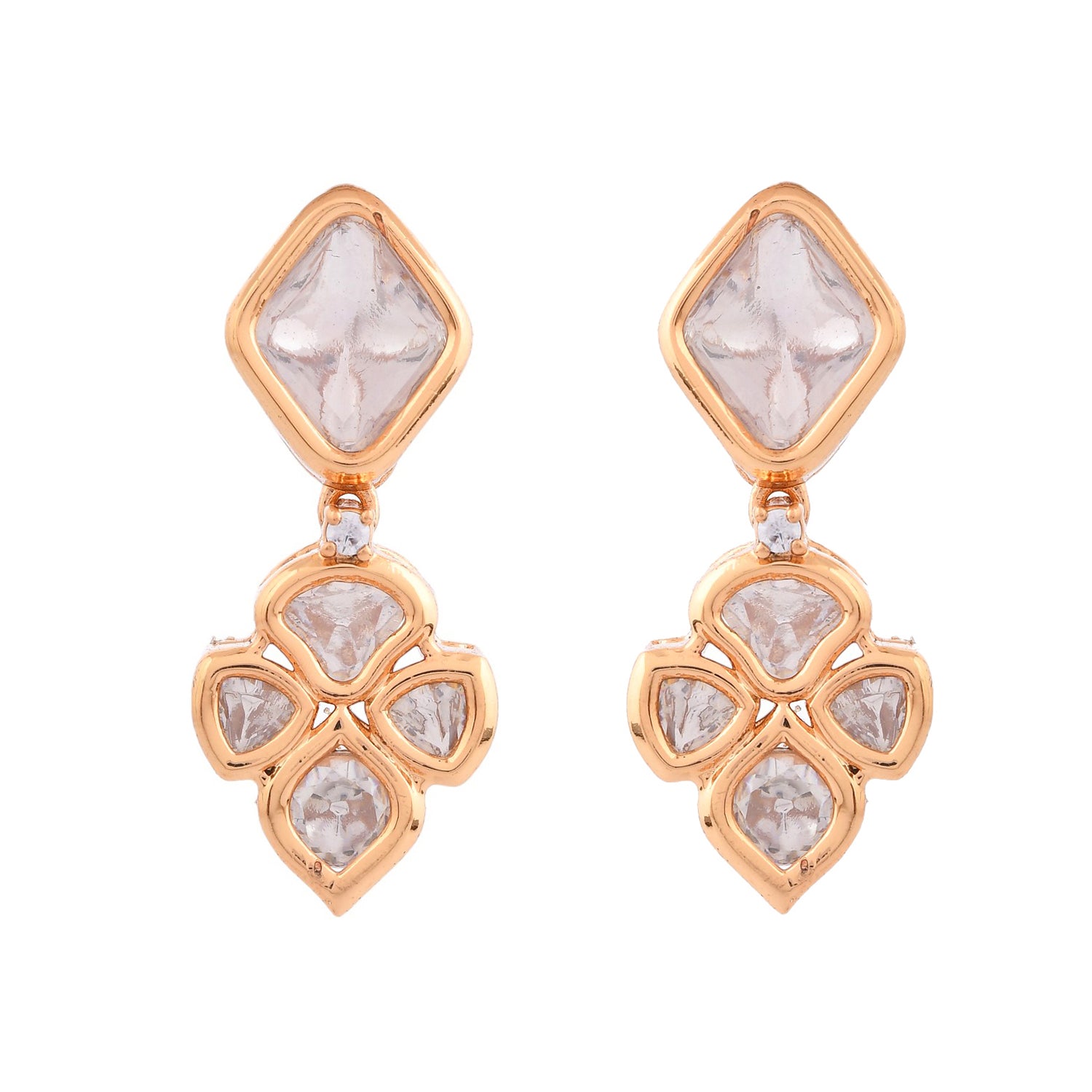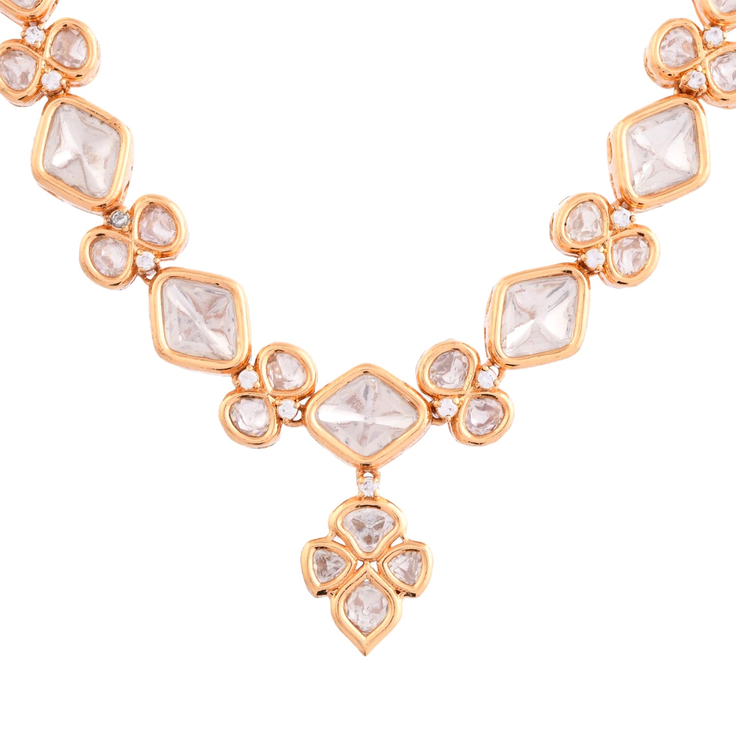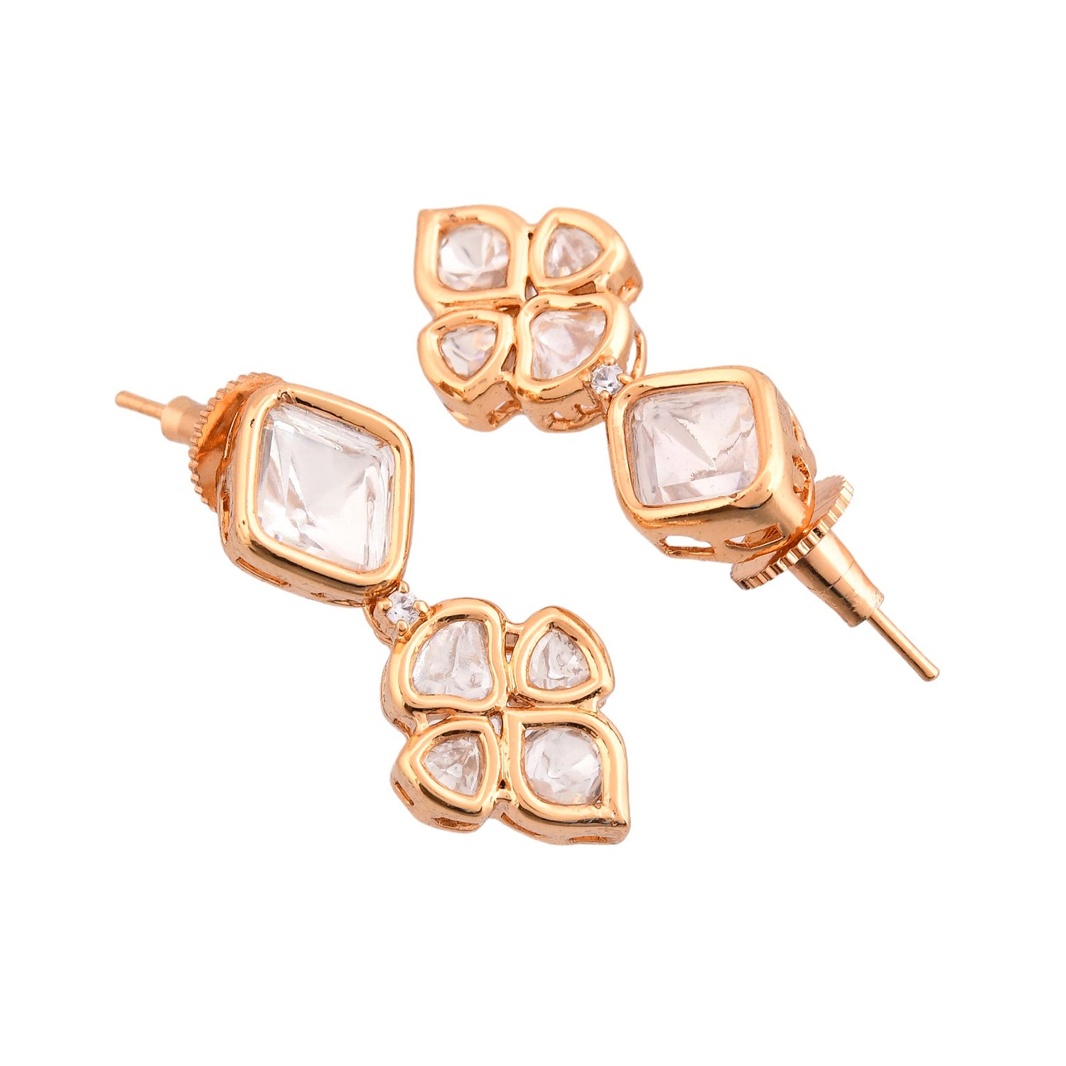 Immerse yourself in the opulence of traditional Indian craftsmanship with this exquisite necklace set by Voylla. Crafted from high-quality brass and adorned with an impeccable gold plating, this set is a harmonious blend of heritage and modernity. The intricate arrangement of Kundan stones, complemented by the scintillating sparkle of American Diamonds, creates an enchanting silhouette that gracefully adorns the neckline. The design seamlessly weaves together geometric symmetry and delicate floral motifs, making it a versatile choice for both Wedding Wear and Party Wear. Whether you’re celebrating Diwali, Rakshabandhan, or any festive occasion, this necklace set is a symbol of elegance and love. Gift it to your beloved sister or mother, and let its Cubic Zirconia elements add allure to every moment. It’s not just jewelry; it’s a keepsake that resonates with festivity and timeless beauty.