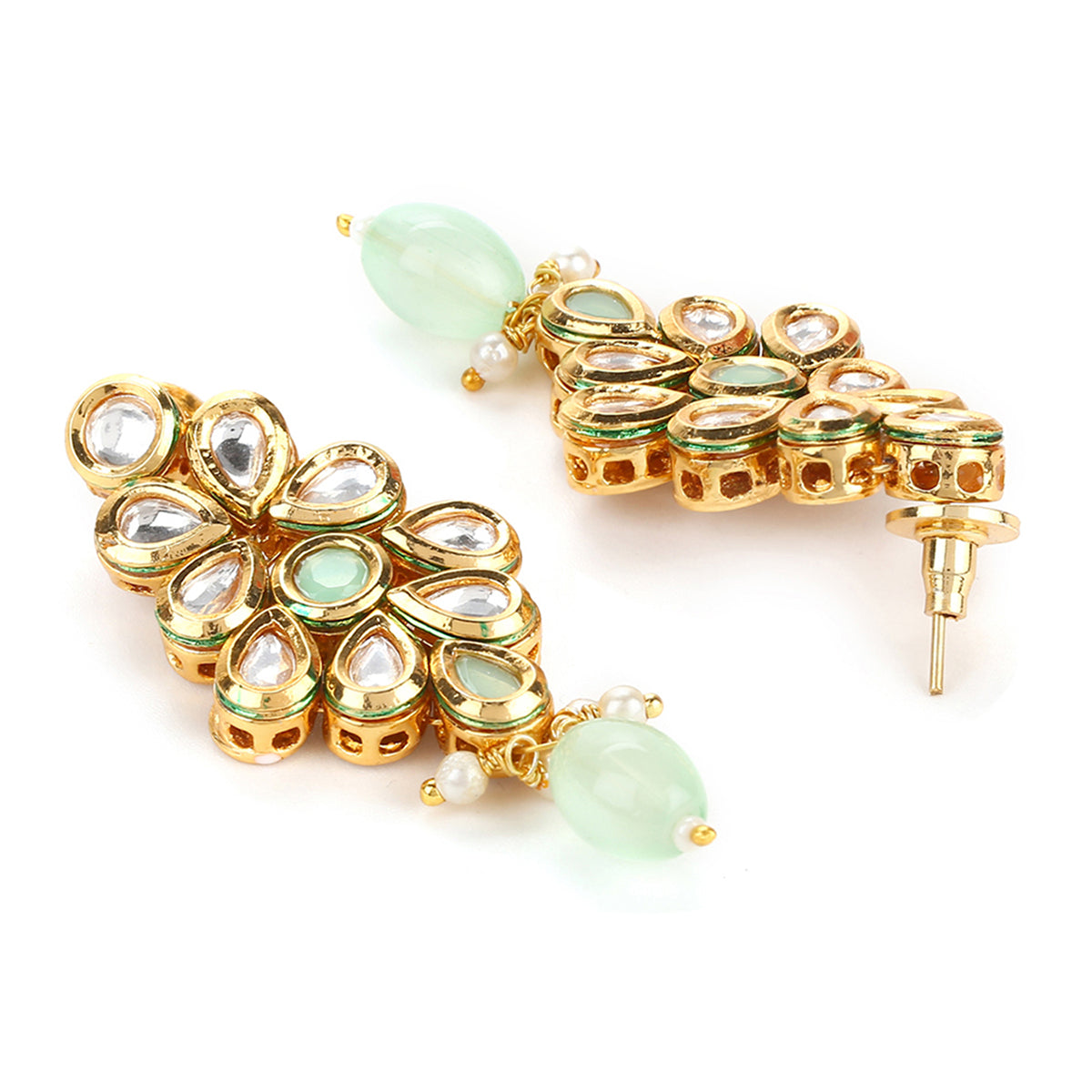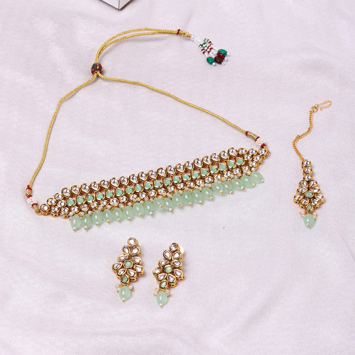 You can find loads of jewellery at local store but the quality we provide is unmatchable. This light green beaded set awaits your wearing with the pastel colours of slightly dark shade.