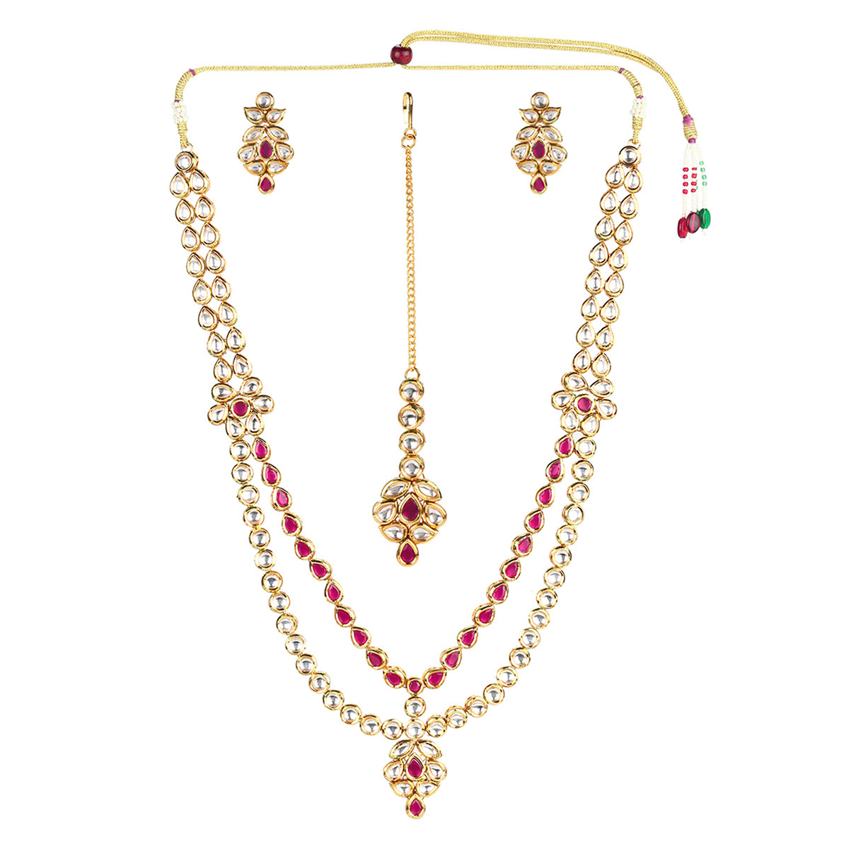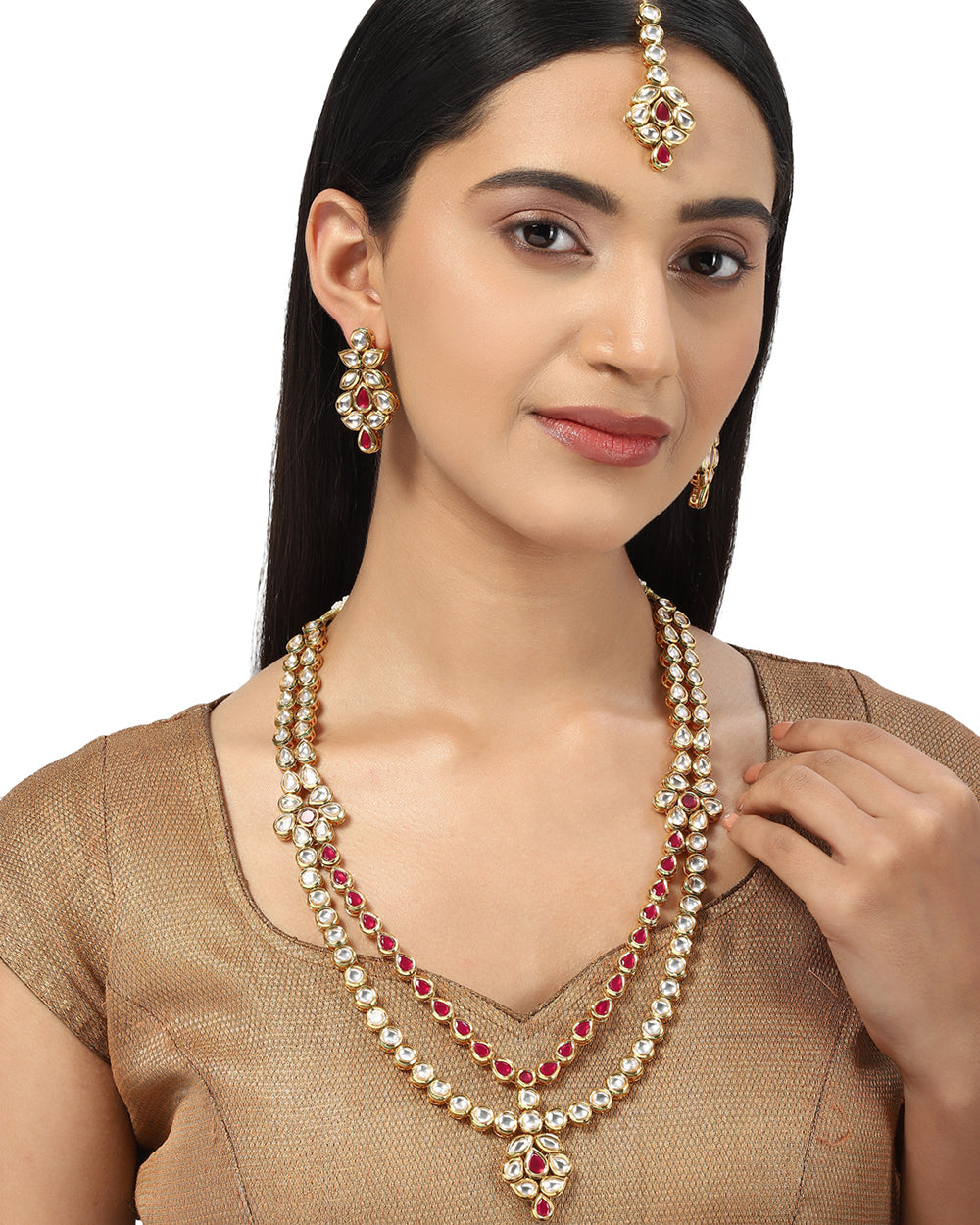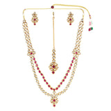 3 Layered Kundan With Pearl Beaded Maang Tika Set For Women