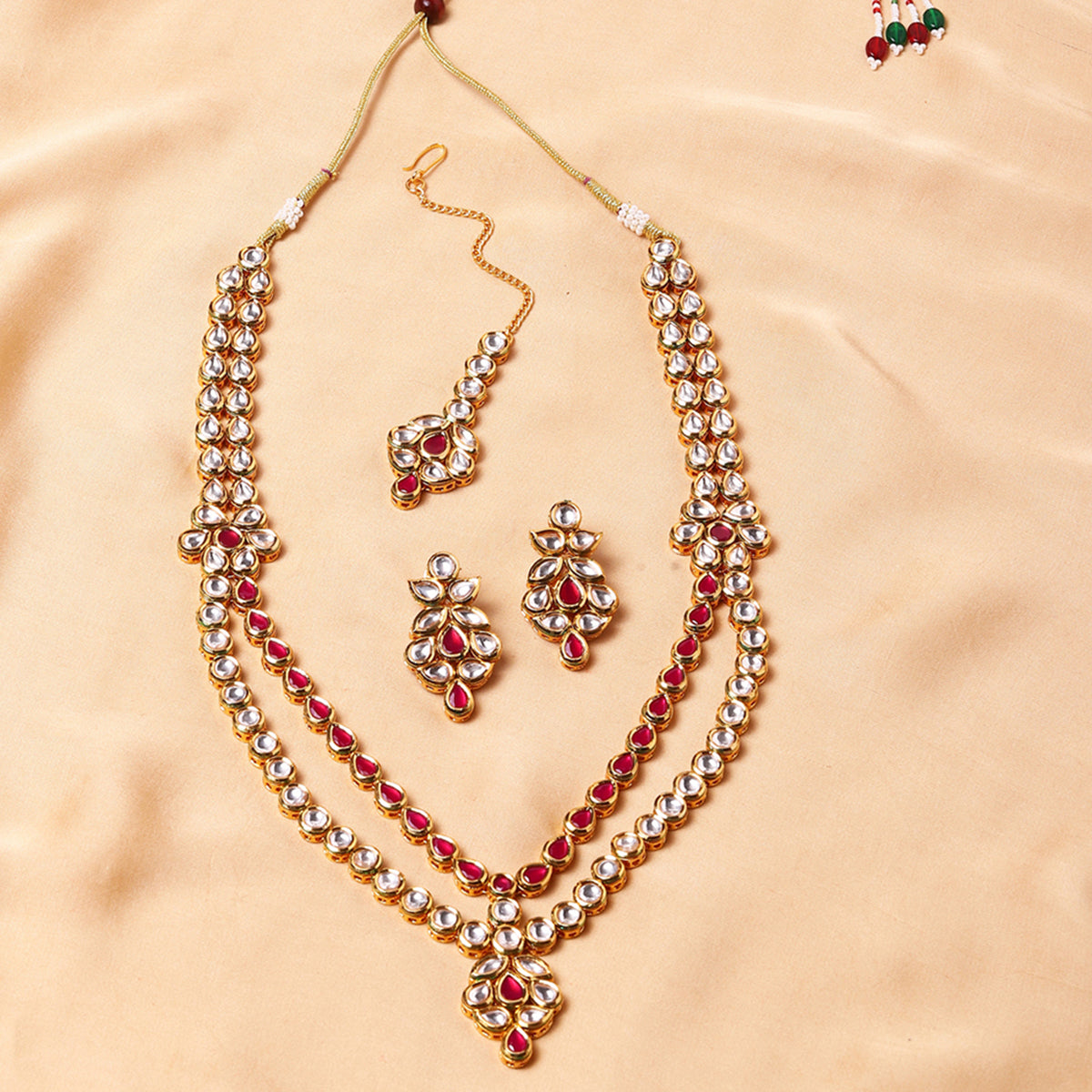 Kundan Elegance Gold Plated Necklace Set for Women - Voylla