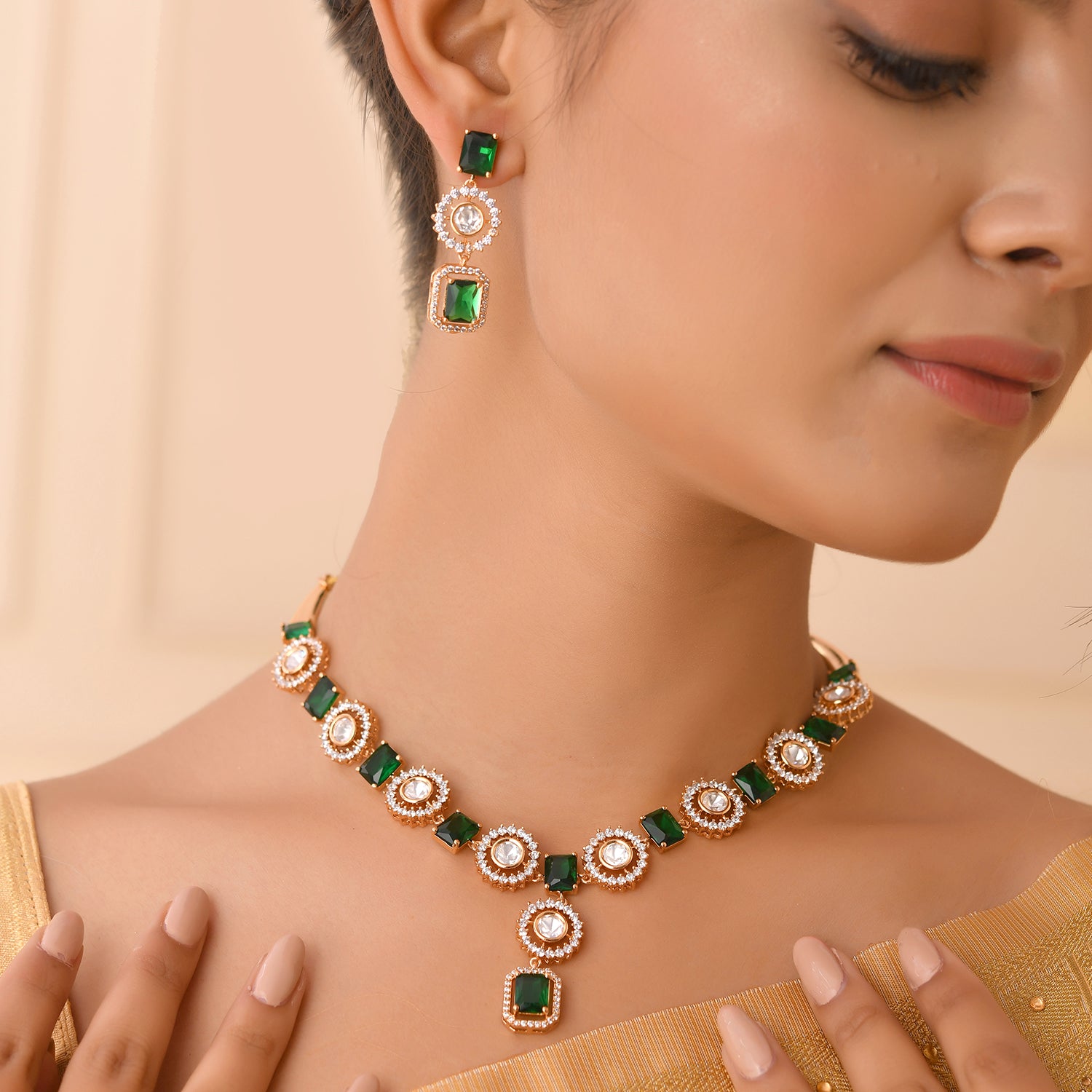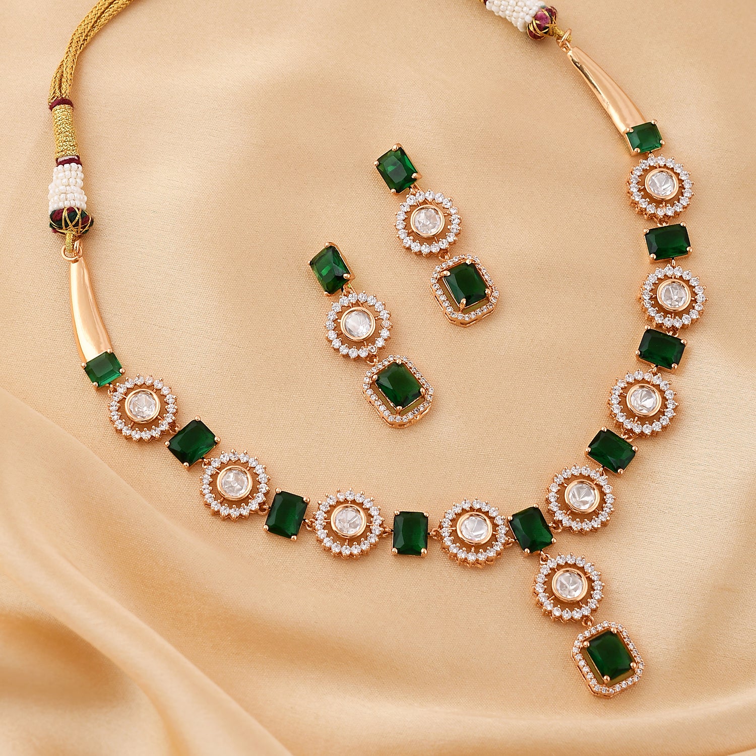 Kundan Opulance Radiant Emerald Choker Necklace Set