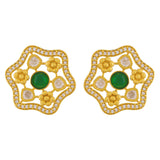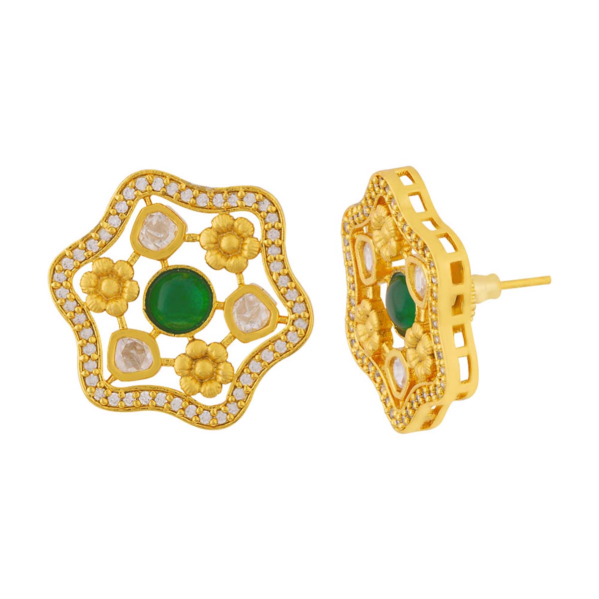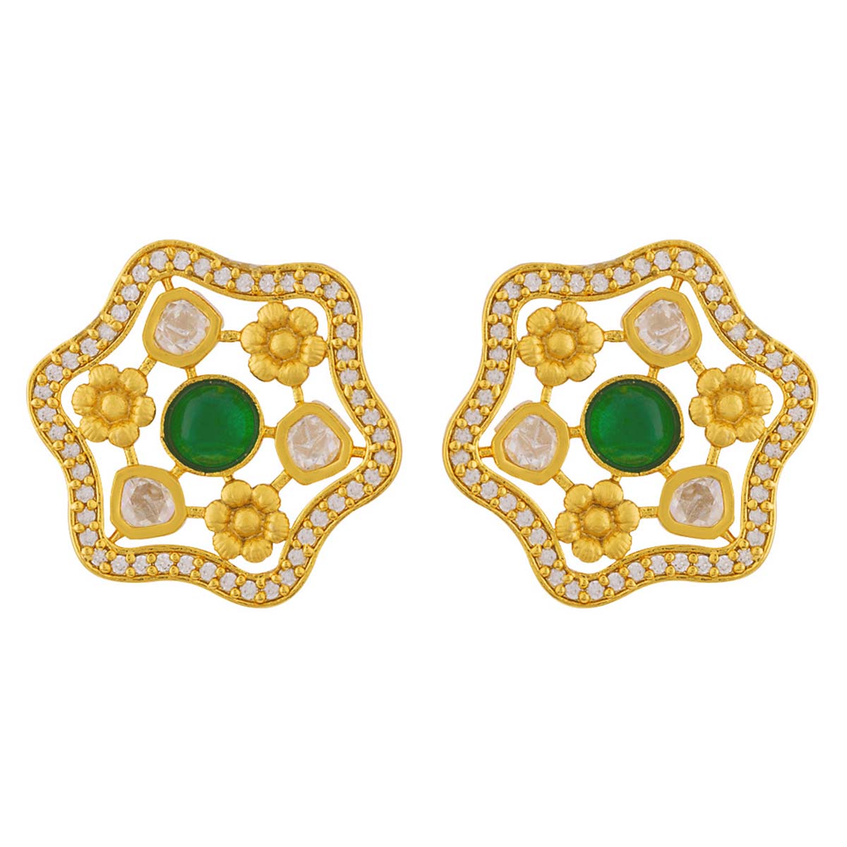 Tiny floral motifs adorned earrings made from brass. Embellished with gems and yellow gold plated. Wear with a casual kurta.