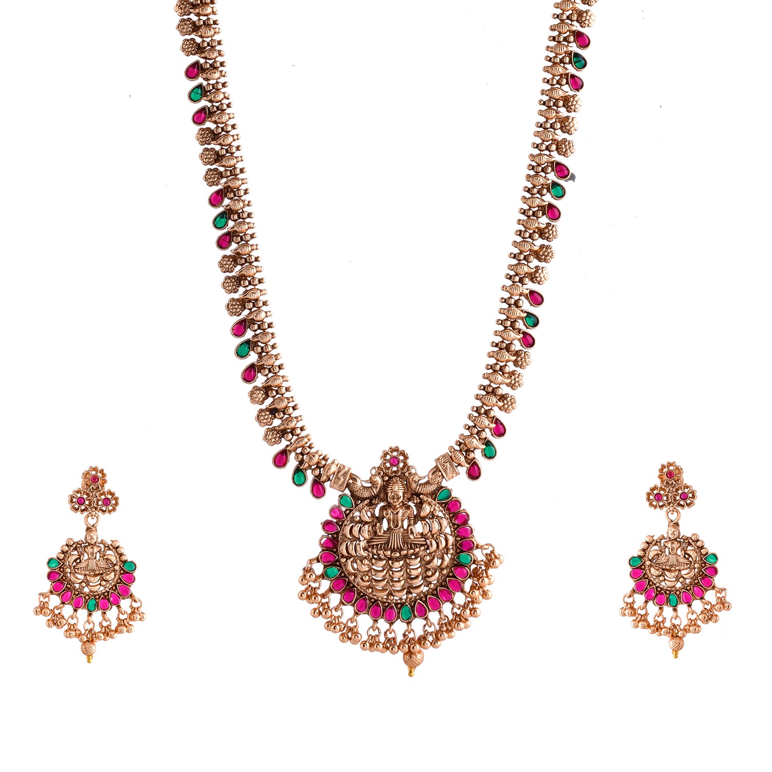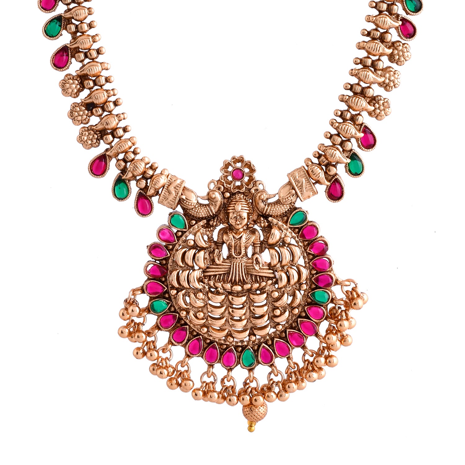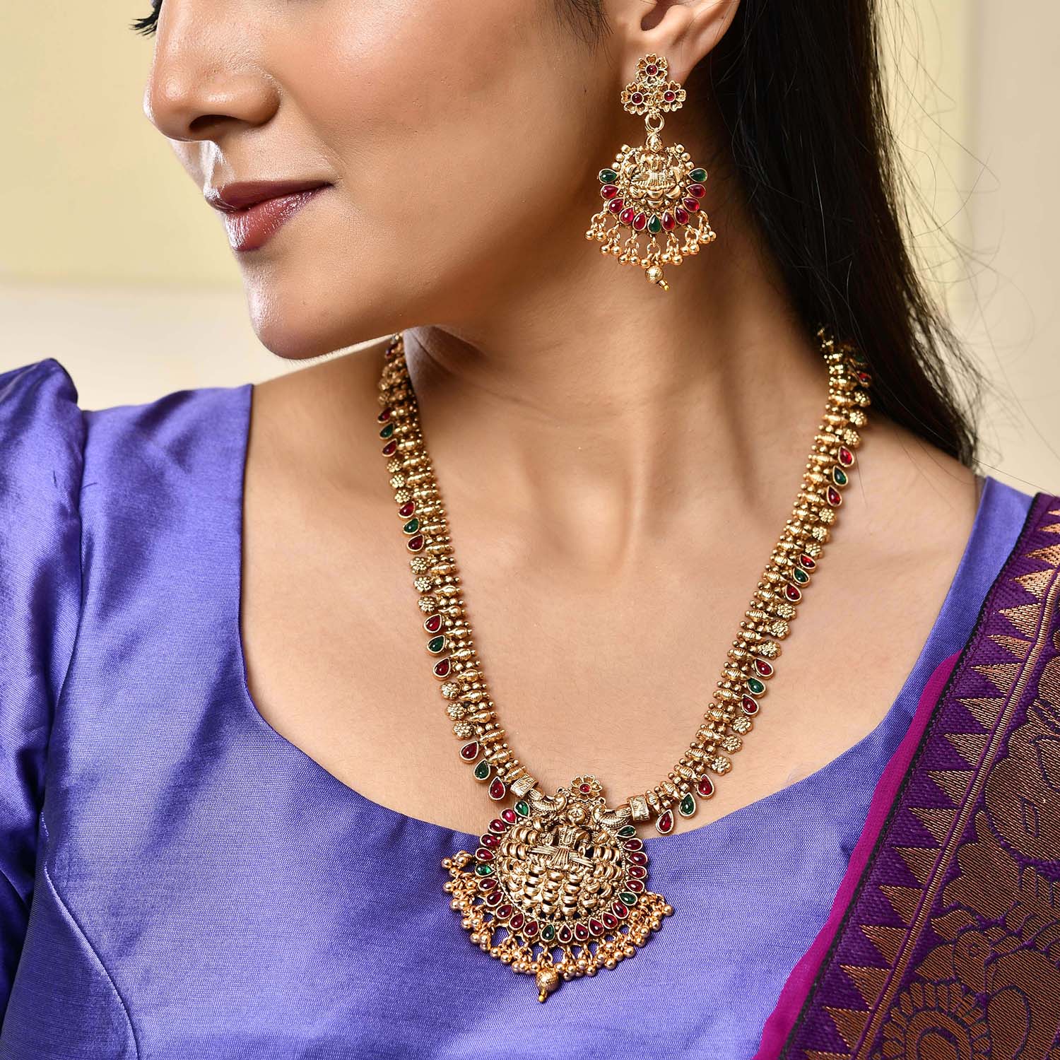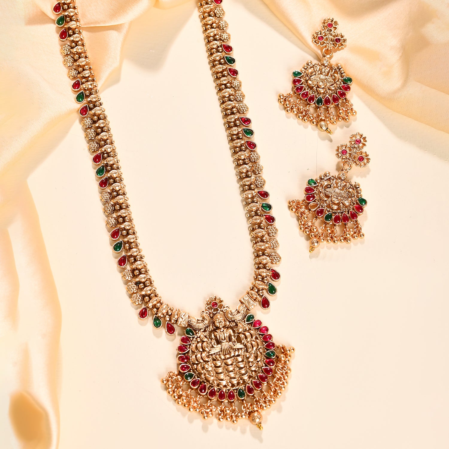 Gold Opulence Lakshmi Vilasam Temple Necklace Set