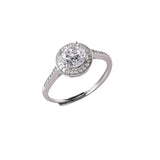 Large Round Cut Clear Zirconia Adorned Silver Plated Brass Ring