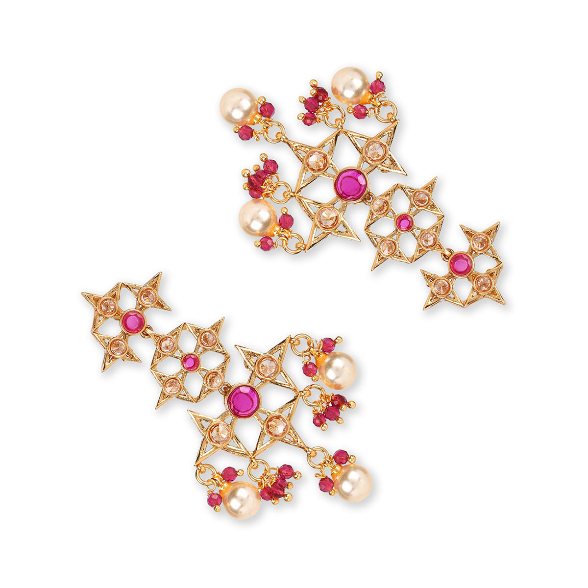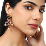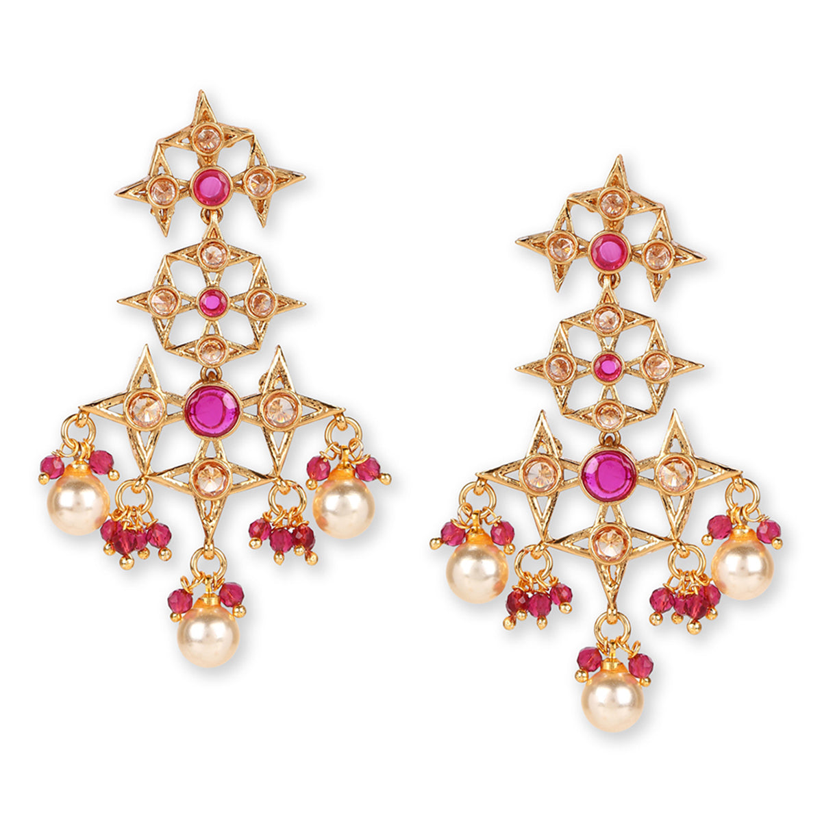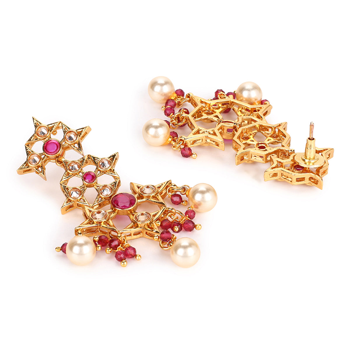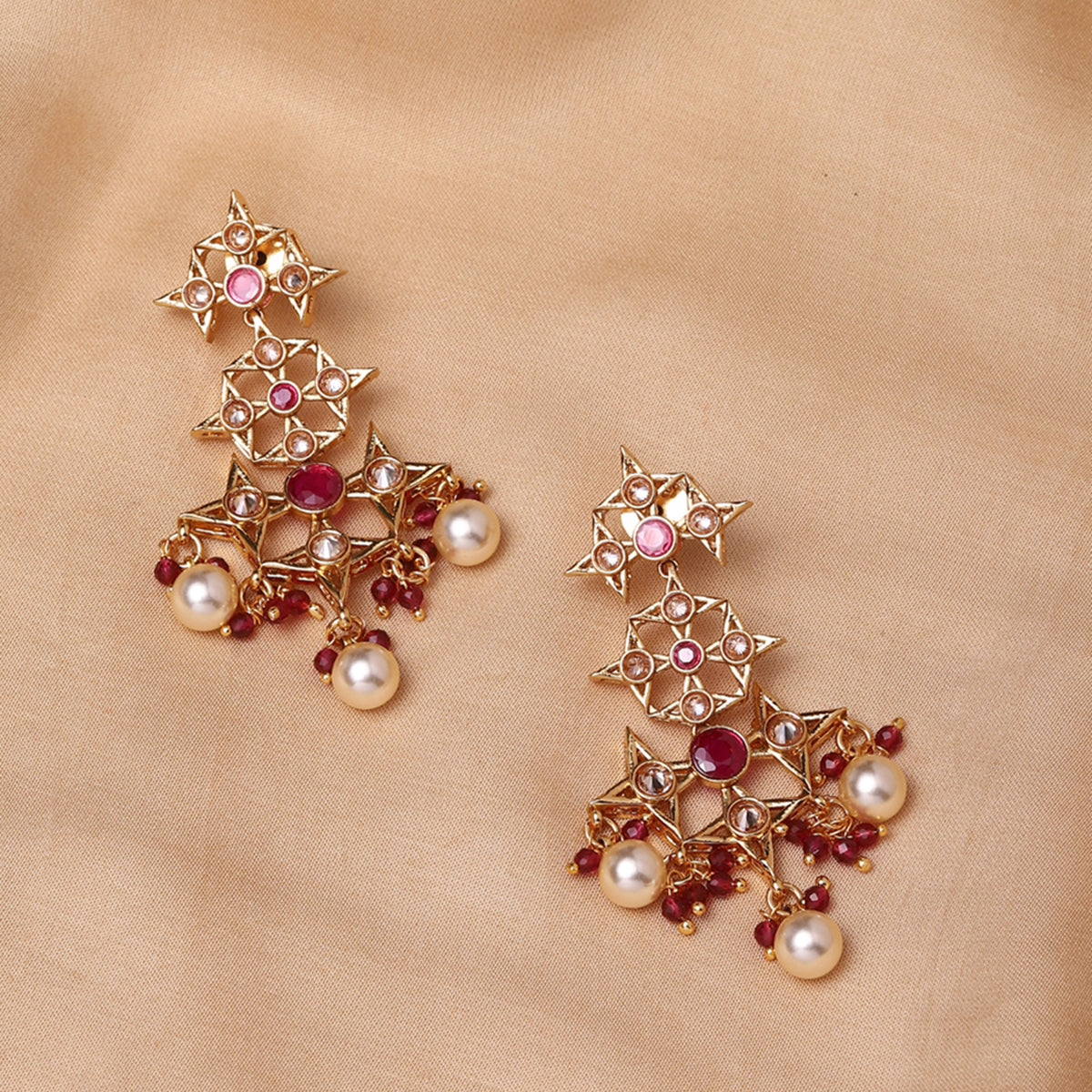 Make a bold statement with fashionable zircon earrings. The red embedded beads give it a classic twist that perfectly complements every look. Perfect for every occasion. Go get these earrings for that party look and bring out the queen in you