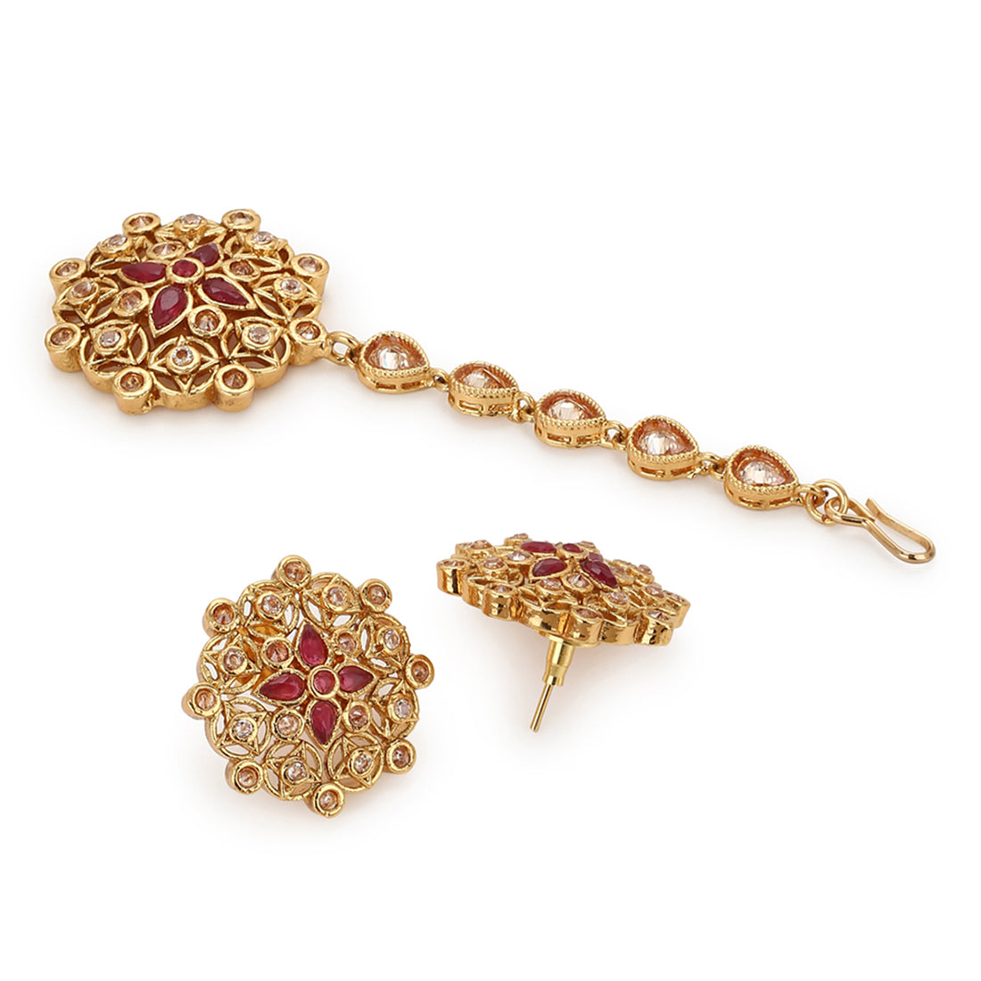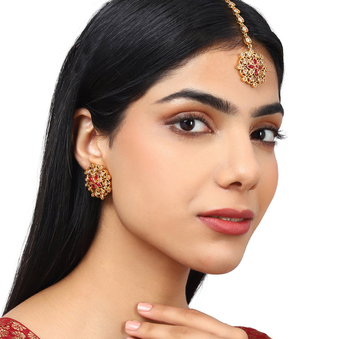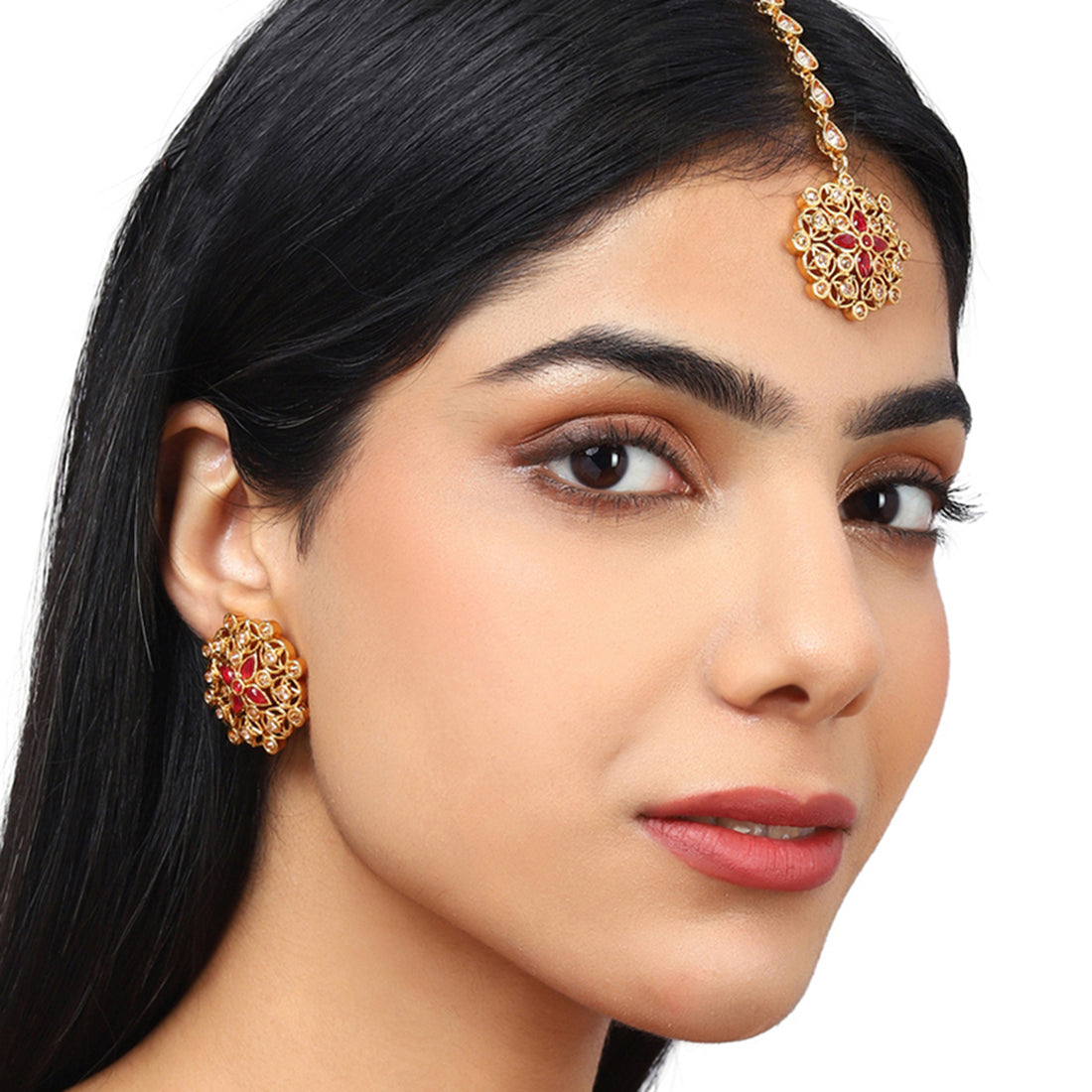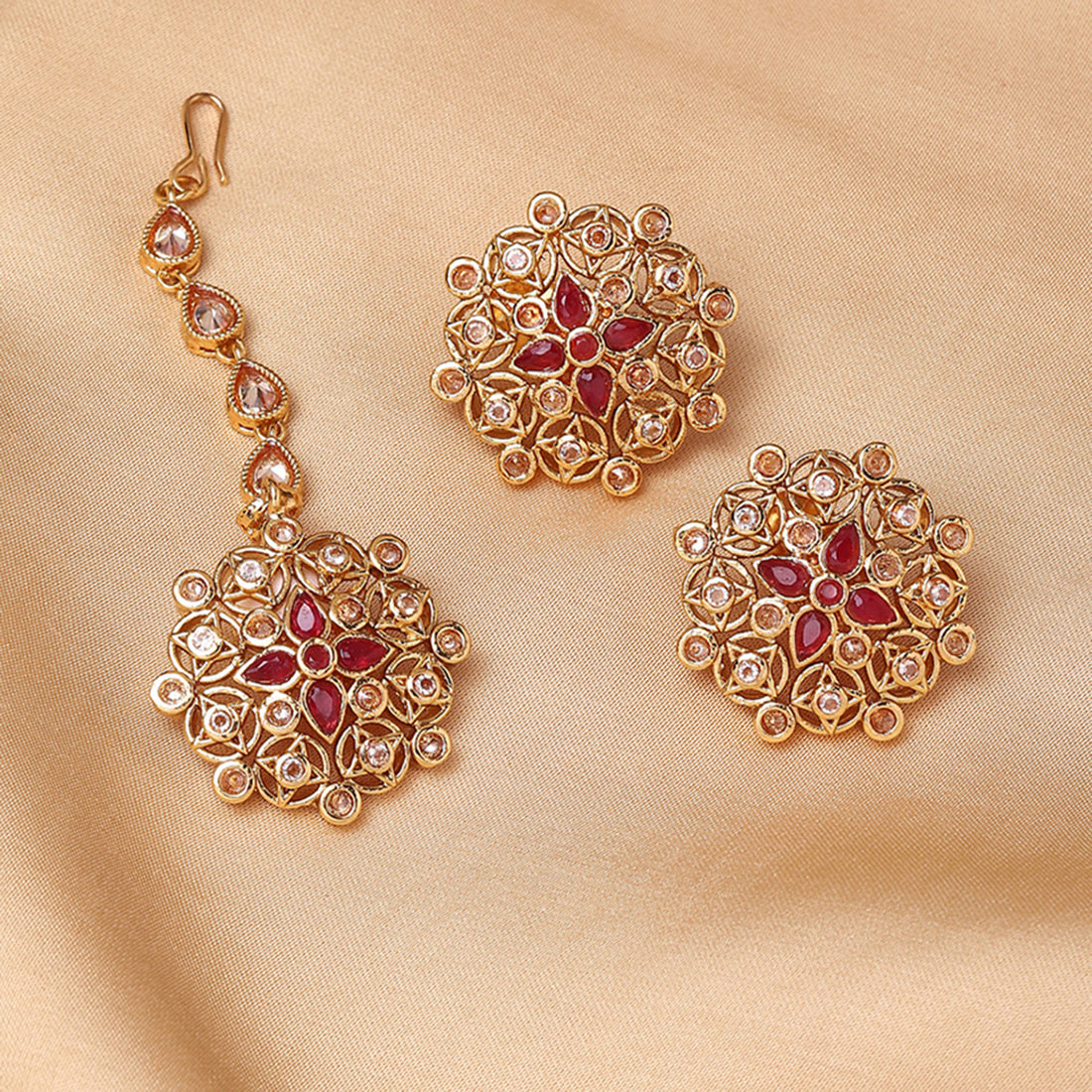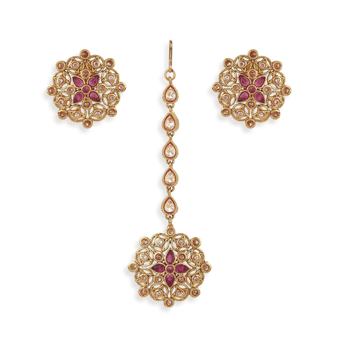A moment of precious craft specially designed for you. This Round shaped mang tika set will look dazzling with most necklines and every attire. The perfectly round shape enhances its beauty