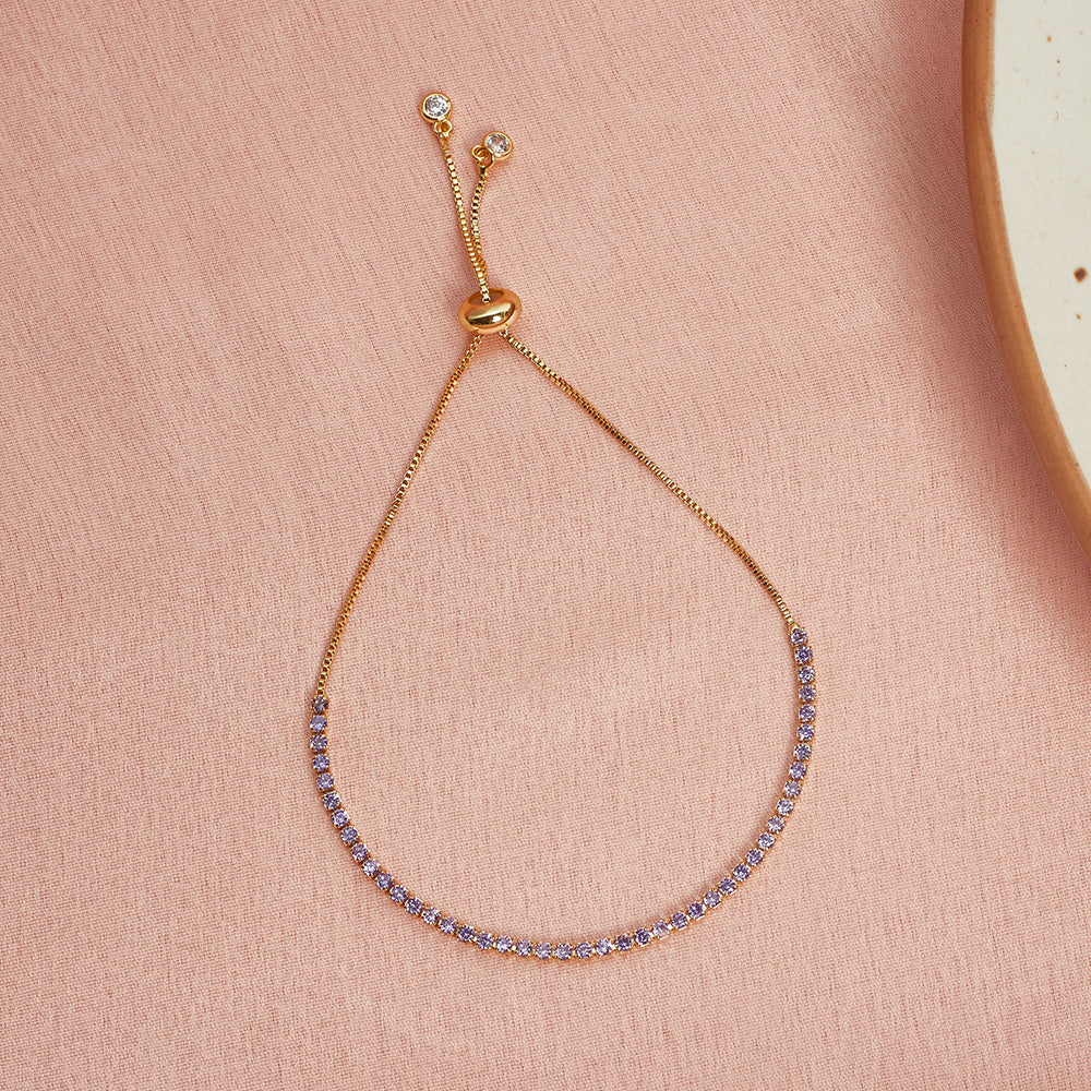 Lavender Zircons Embellished Yellow Gold Plated Bracelet