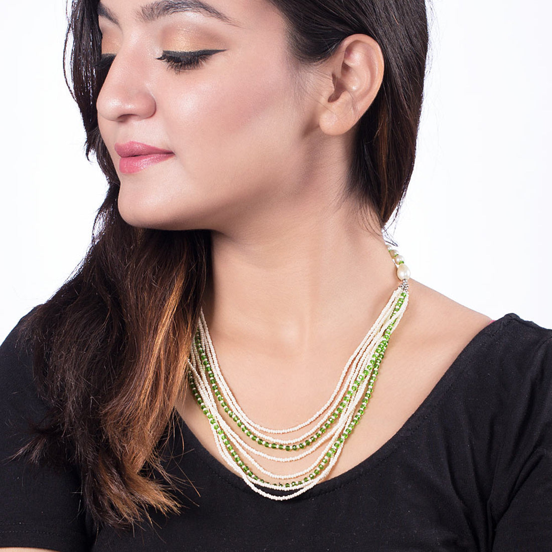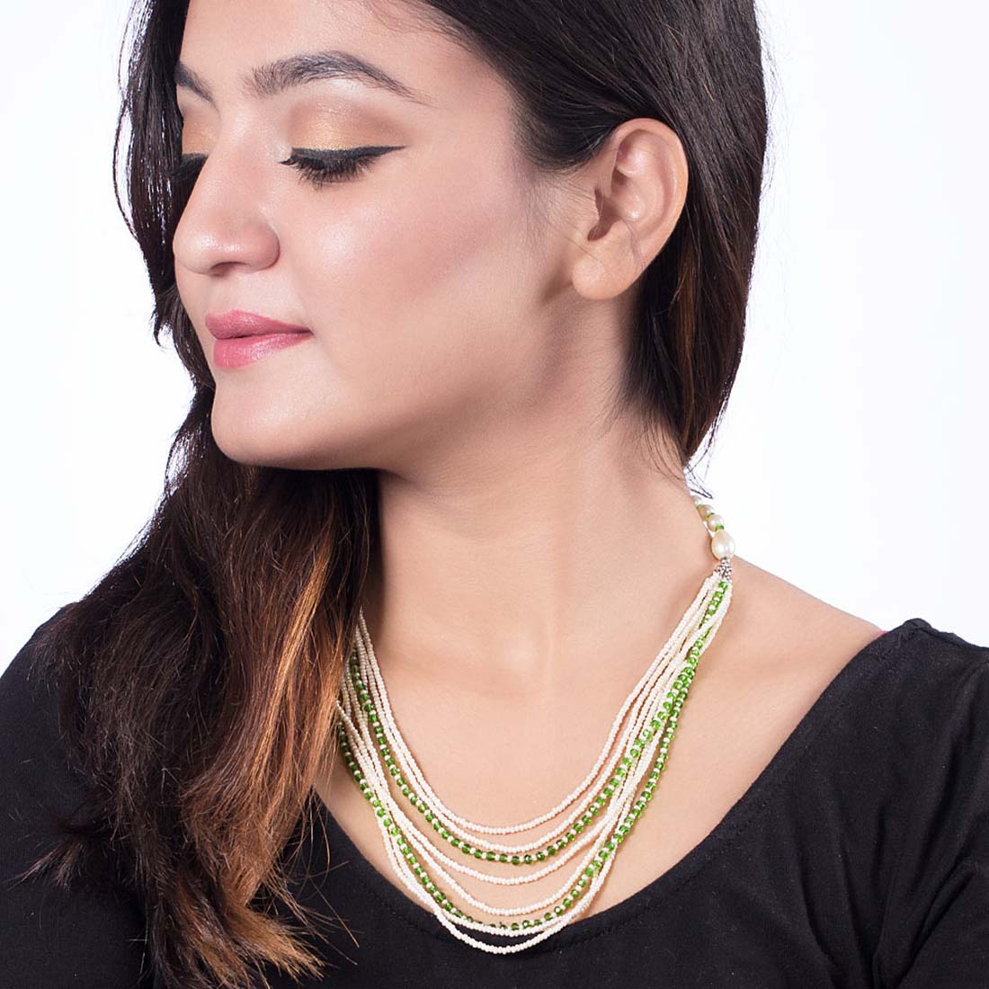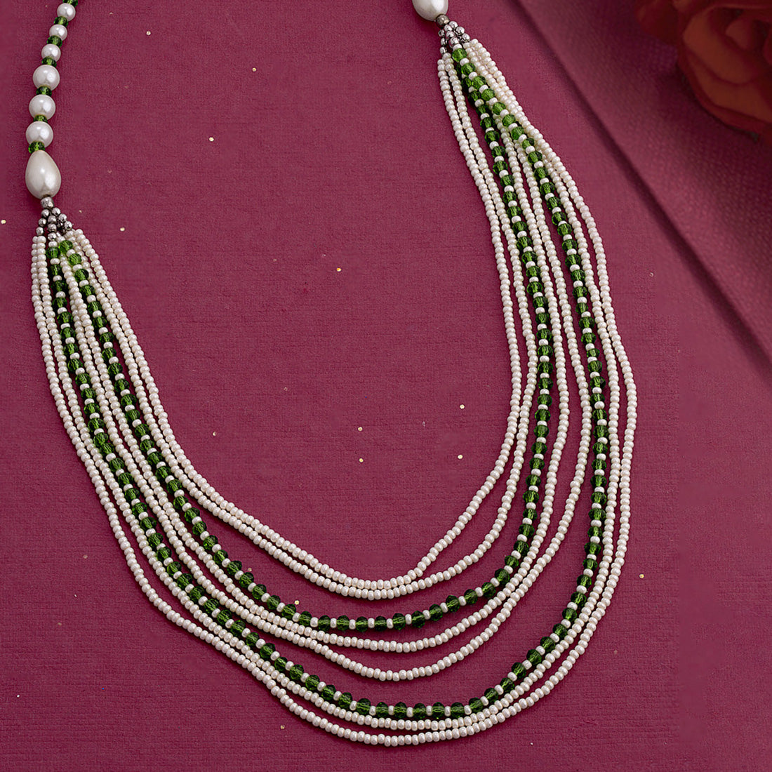 "Show your sophistication with this beautiful layer necklace from Pearl Galleria collection. This stunner will go well with cotton sarees and suits. Great for college fests."
