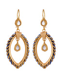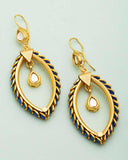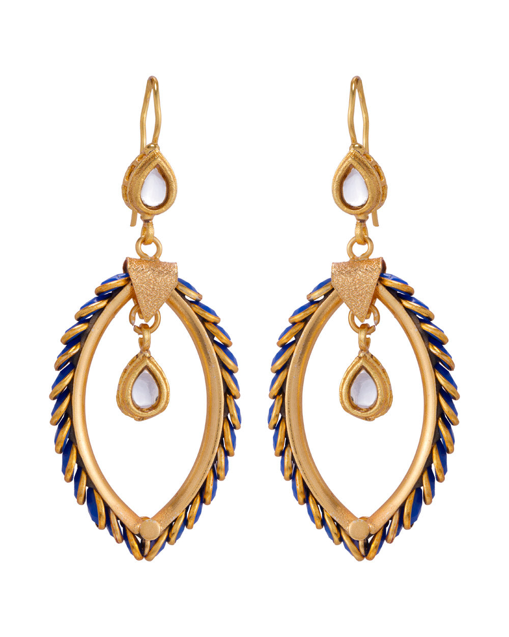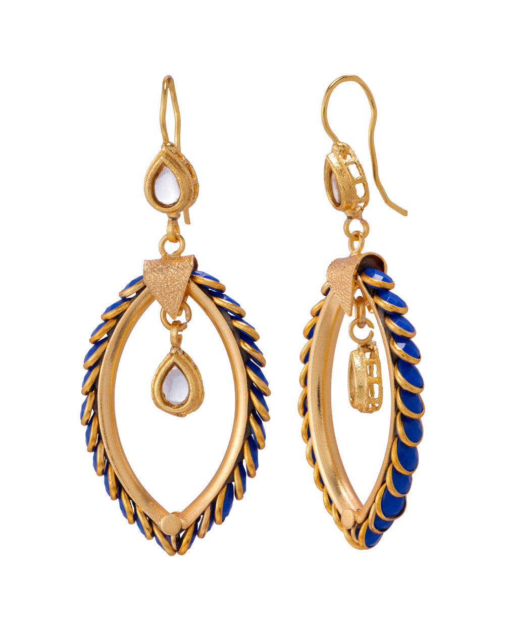 Complete your look with this stylish pair of earrings from the house of Voylla. Featuring leaf design with blue color stone embellishment. Further, this Pacchi design earrings are dangled with drop motif in the middle.