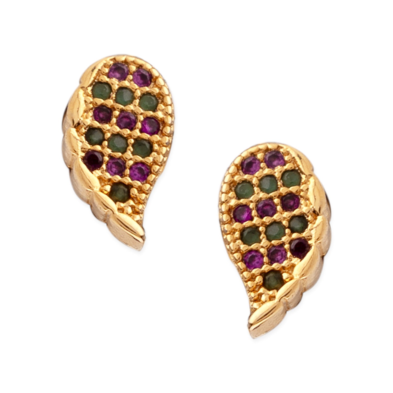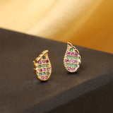 Leaf Motif Pink And Green CZ Stud Earrings