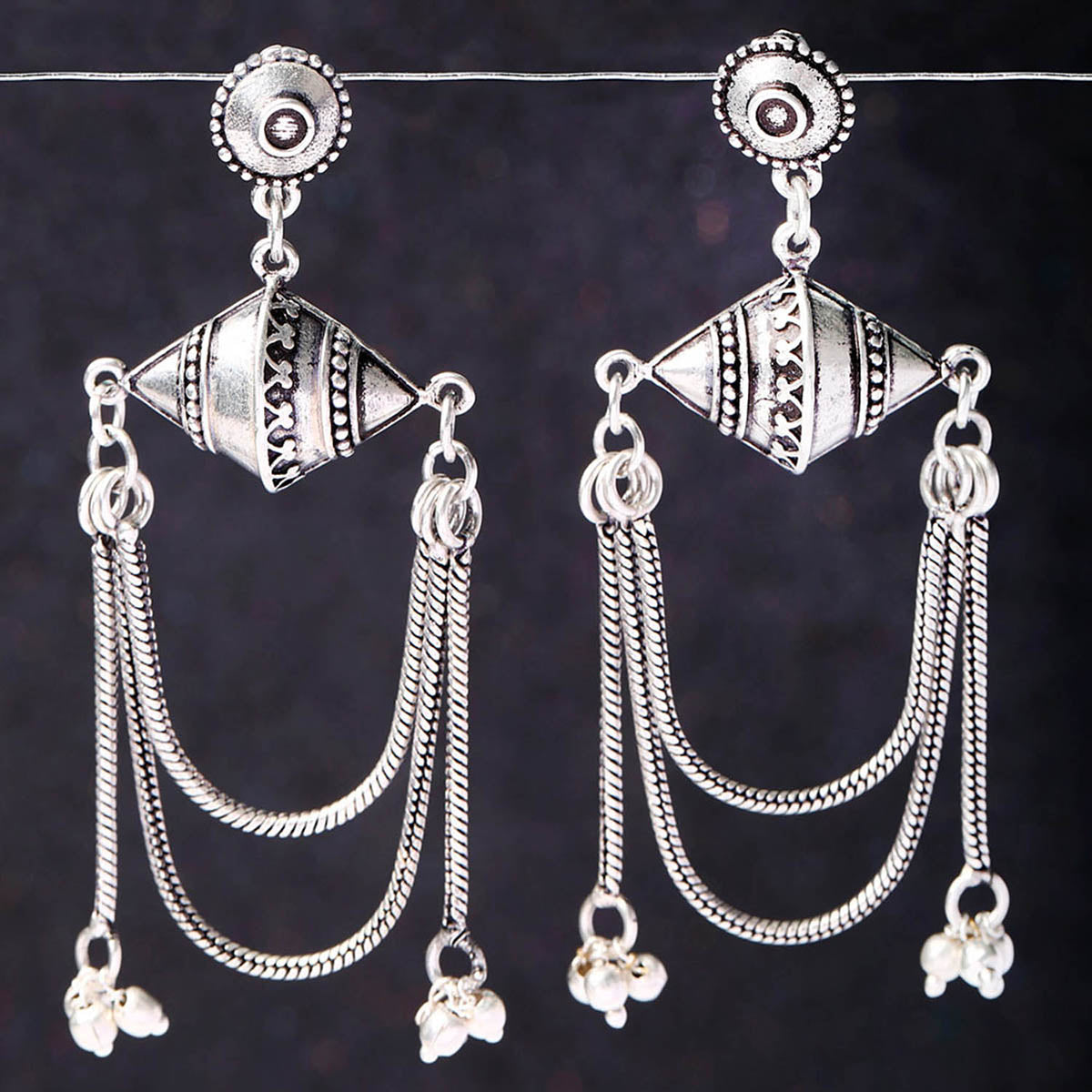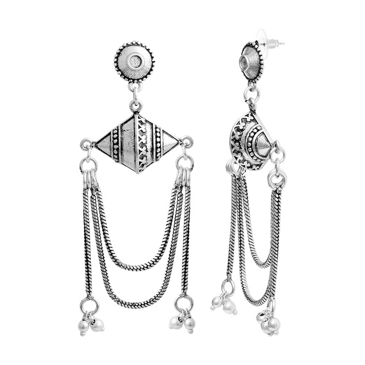 A dramatic design from the Leela Collection, this multi-drop layered earring is crafted to delight. Keep your hair tied in a neat bun to flaunt this stunning piece and get showered with compliments. A good choice for parties. This piece of jewelry comes with the Voylla assurance of quality and durability.