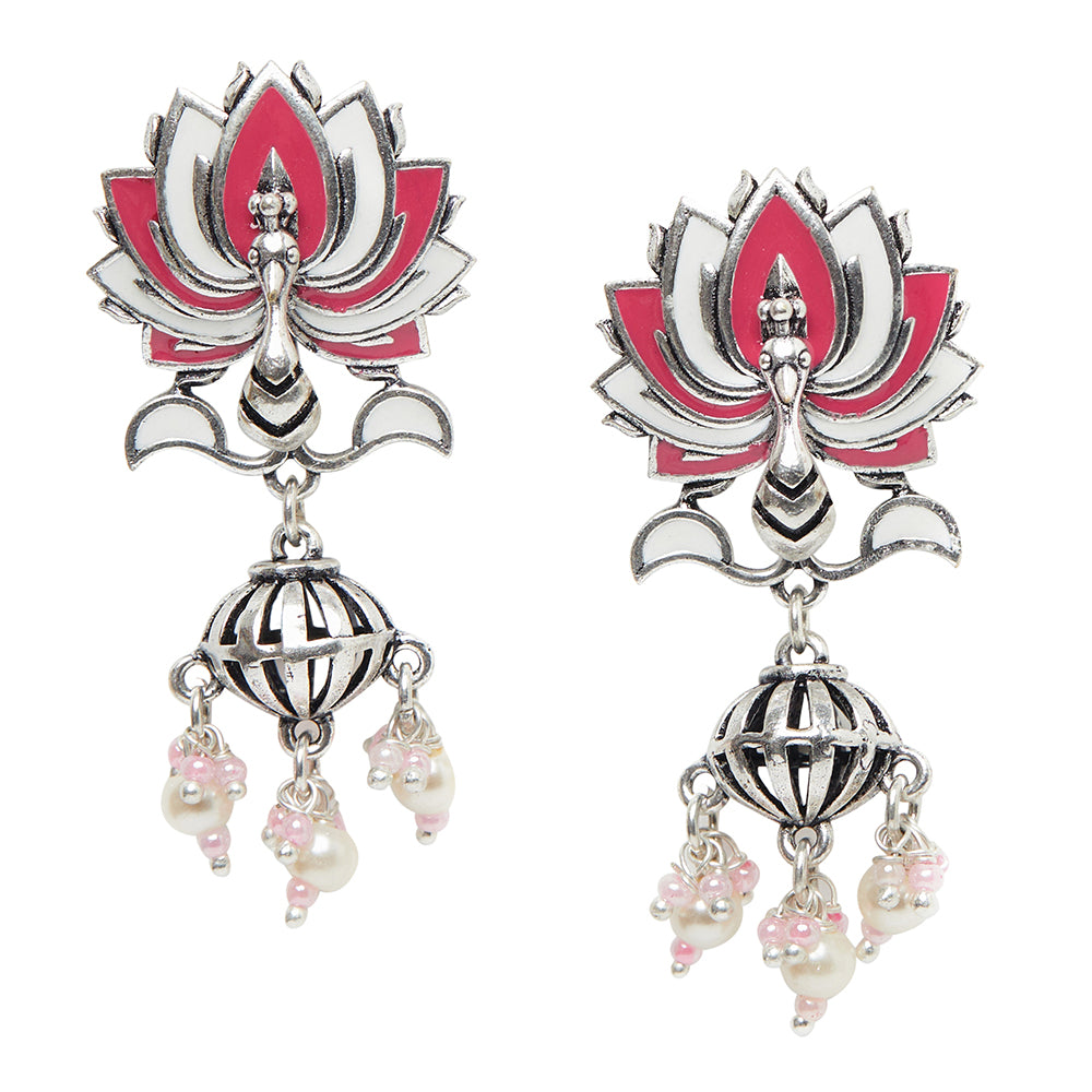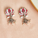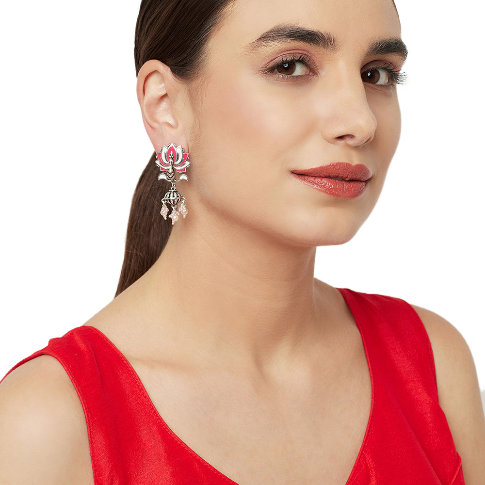 Lotus Pink Enamelled Silver Plated Earrings