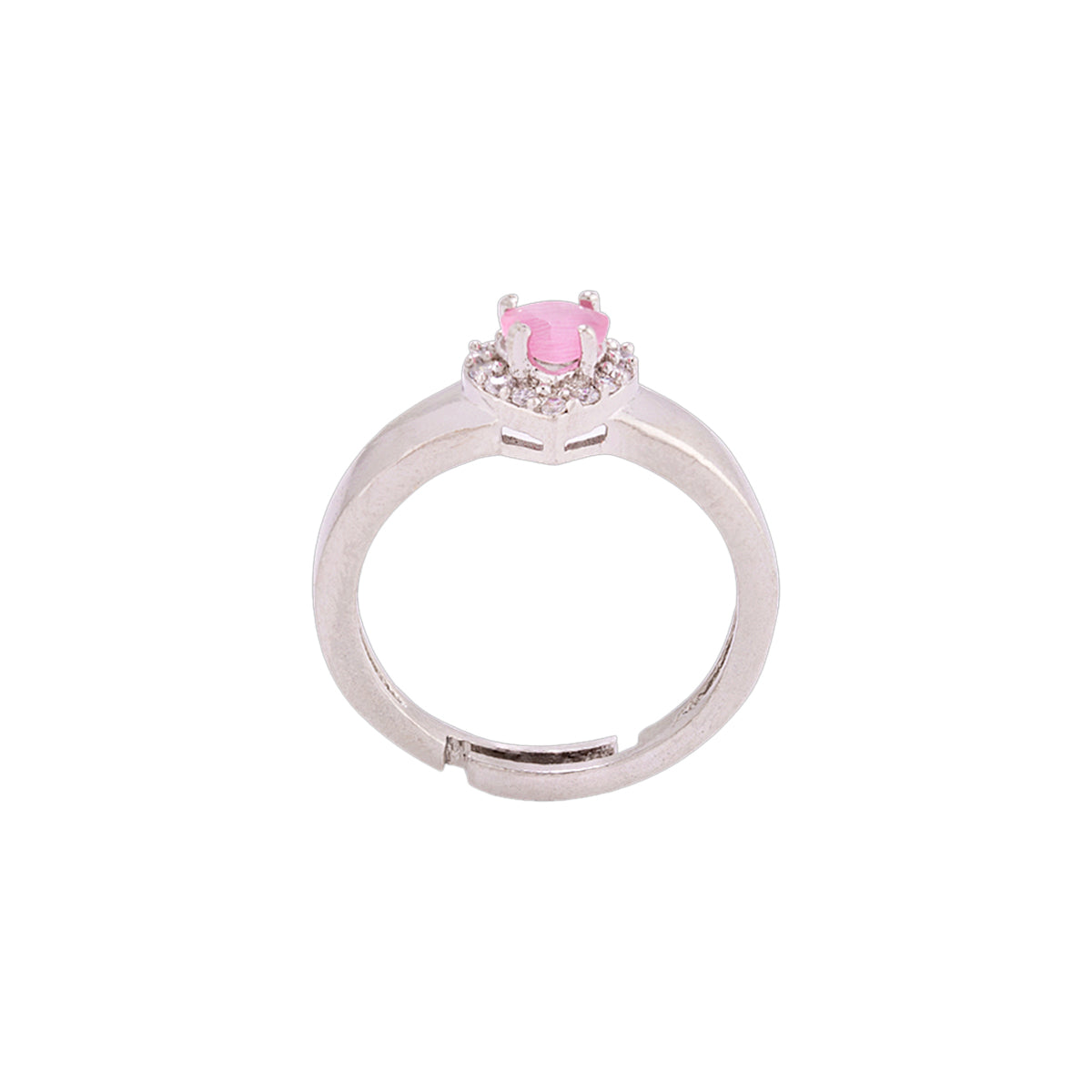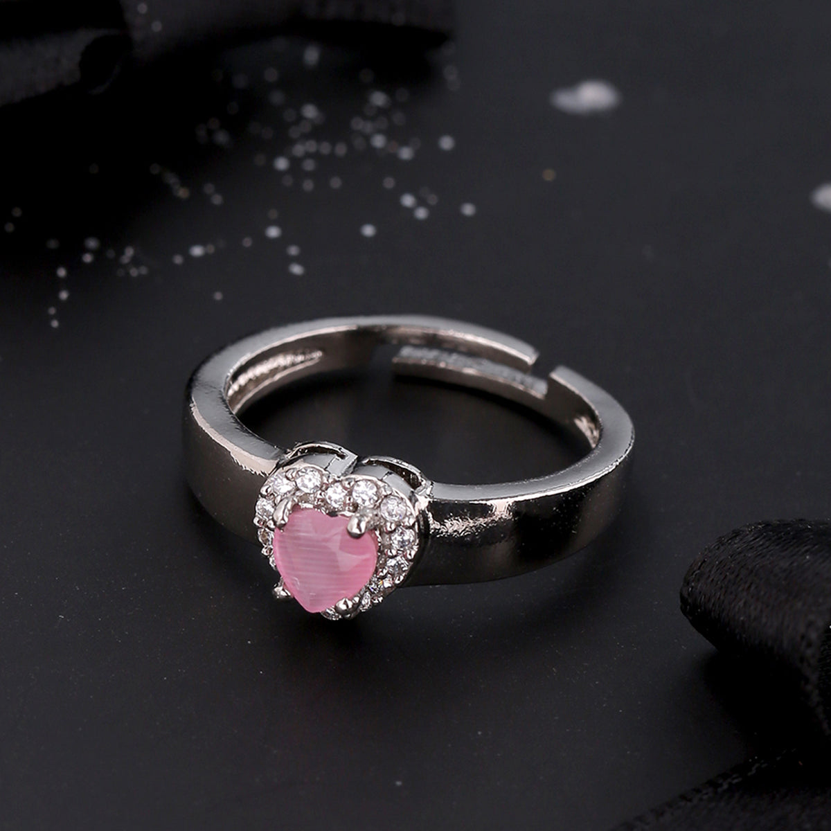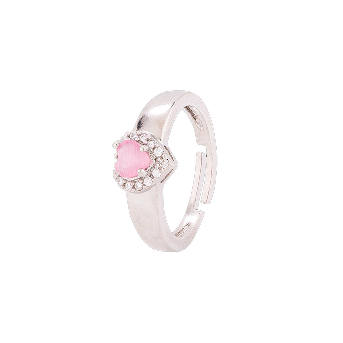 Adjustable heart motif statement ring, inspired by the True Lover's Knot classic symbol. Made from brass and silver plated. Embellished with zircon gemstones. Good for everyday and formal wear.