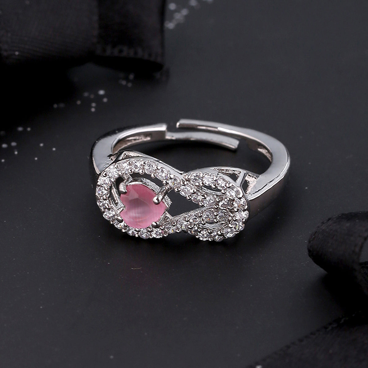 Featuring a classic filigree design, this brass ring has been inspired by the True Lover's knot, a symbol of friendship and affection. Silver plated and embellished with zircon gemstones, the ring can be paired with formal looks and even worn on an everyday basis.