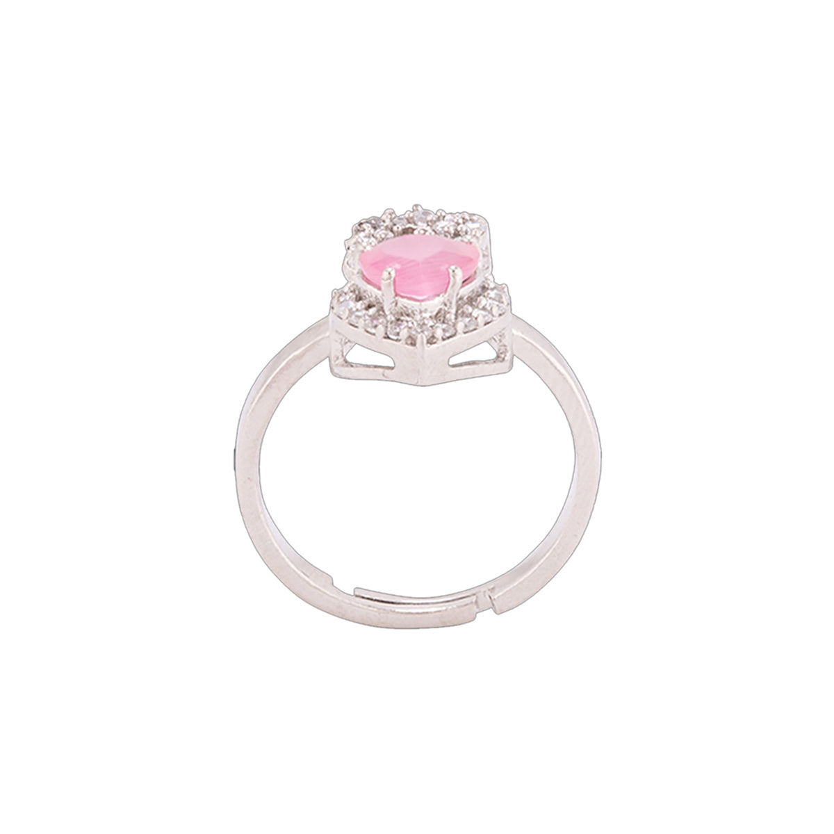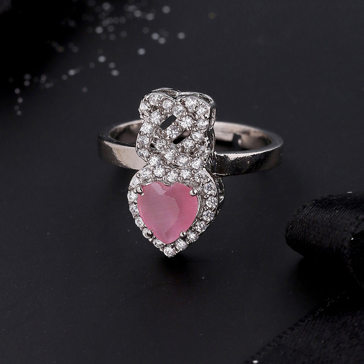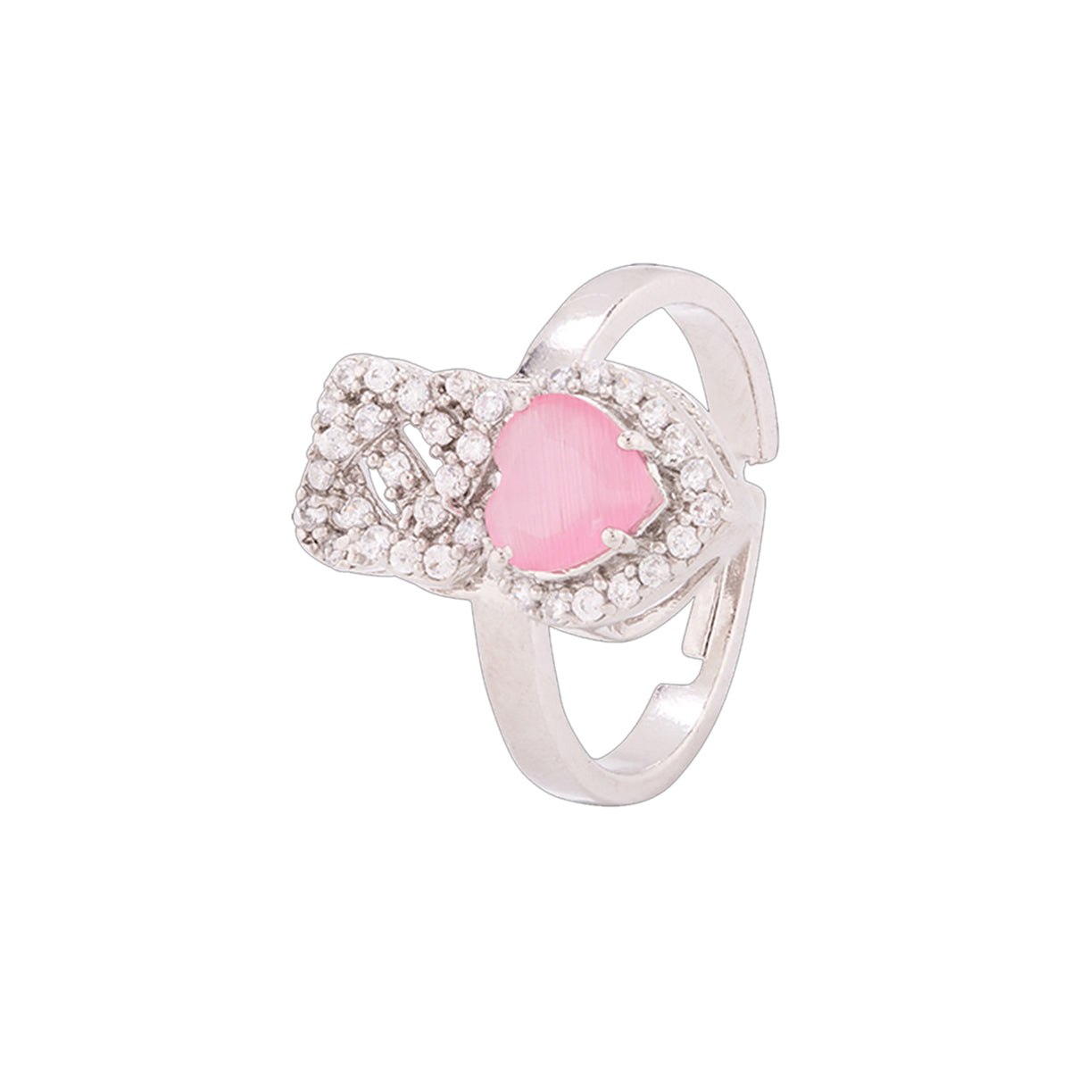 Statement ring with heart and knot motifs, inspired by the classic symbol of friendship and love - the True Lover's Knot. Brass has been used in the making of this silver plated ring, which ahs been embellished with zircon gemstones. Good for formal and everyday wear.