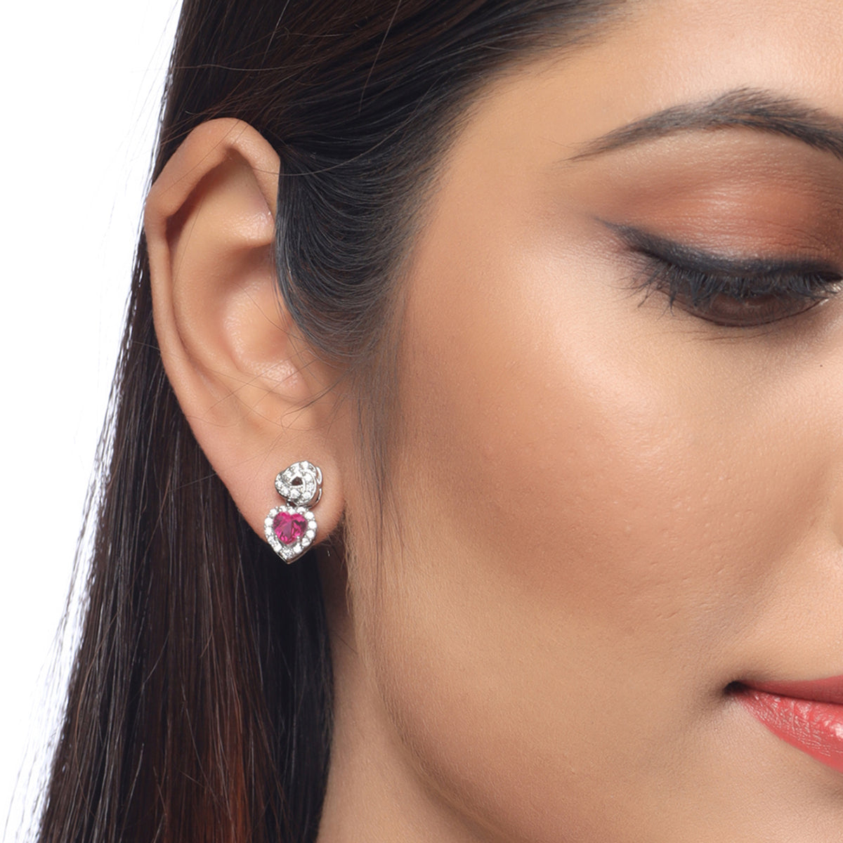 Heart drop earrings, inspired by the True Lover's Knot formation, a symbol of love, friendship and unbreakable bonds. Silver plated and fashioned out of brass, the earrings have been embellished with zircon gemstones. Good for casual looks.