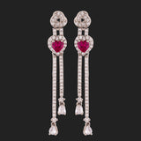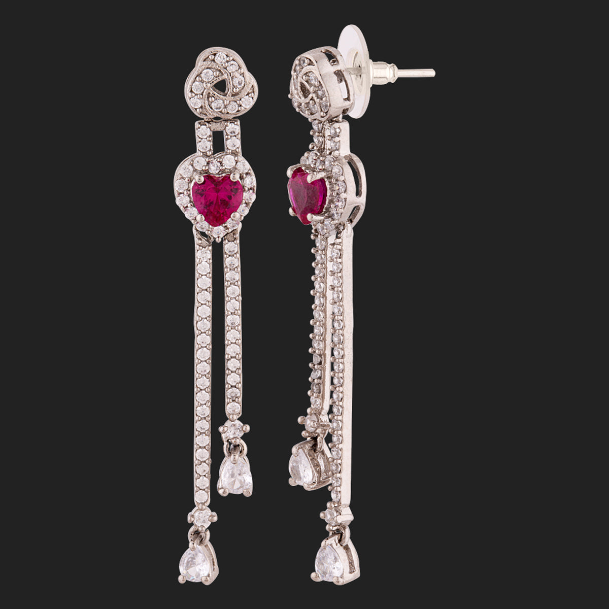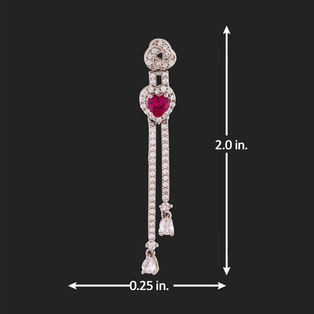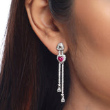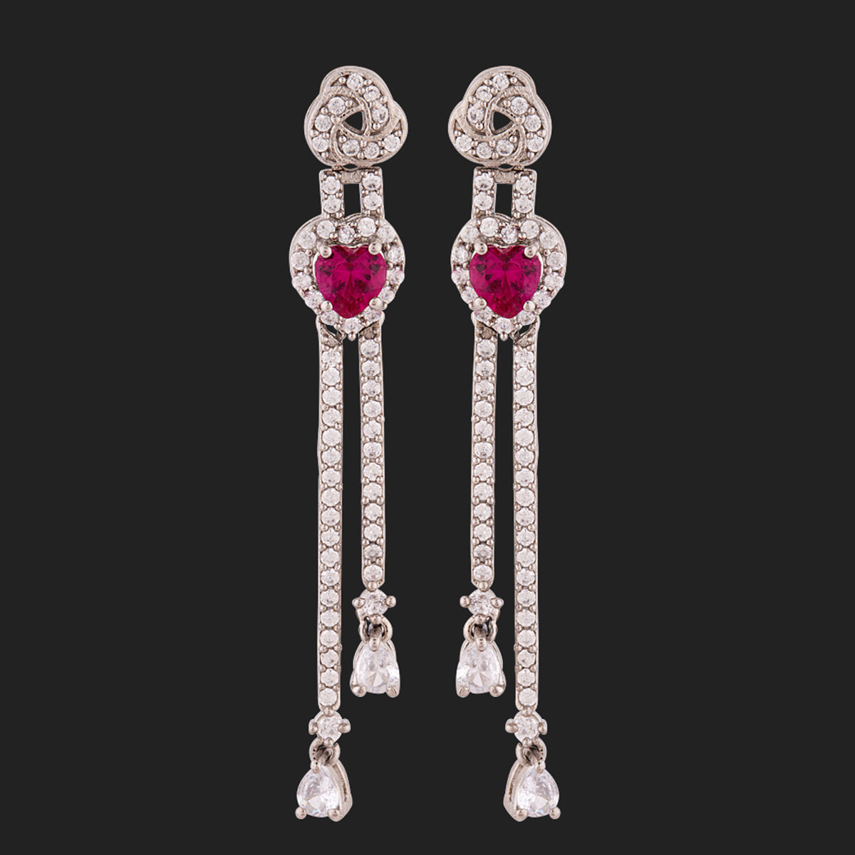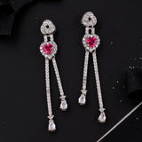 Long tassels drop, zircon gemstones embellished earrings, inspired by the True Lover's Knot, a symbol of friendship and affection. Brass has been used in the making of this silver plated pair. Wear with a cocktail gown.