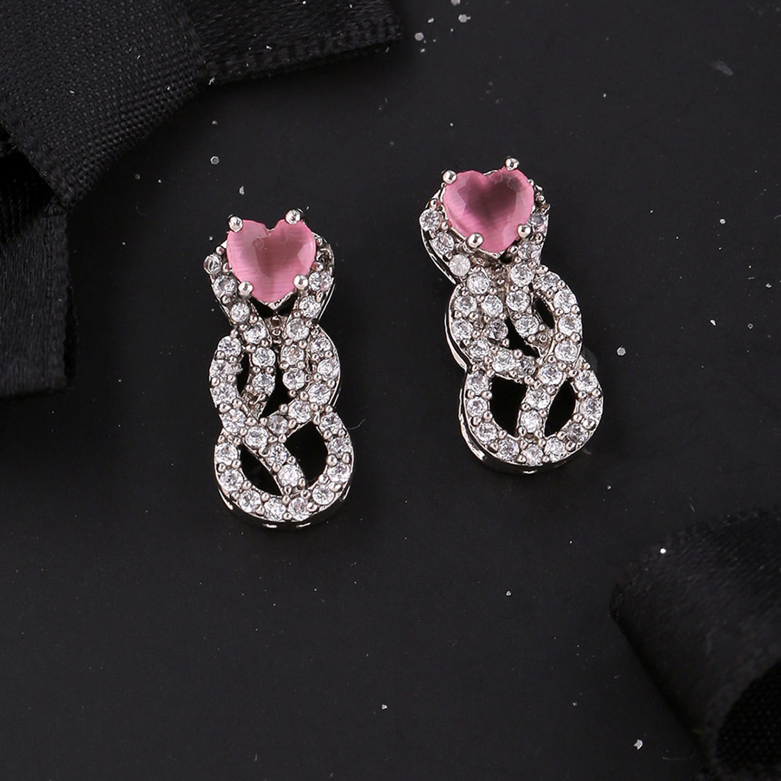 The True Lover's Knot, a classic symbol of friendship and love, has inspired these tiny layered drop earrings. Fashioned out of brass and silver plated, the earrings have been embellished with CZ gemstones. Good for everyday wear.