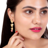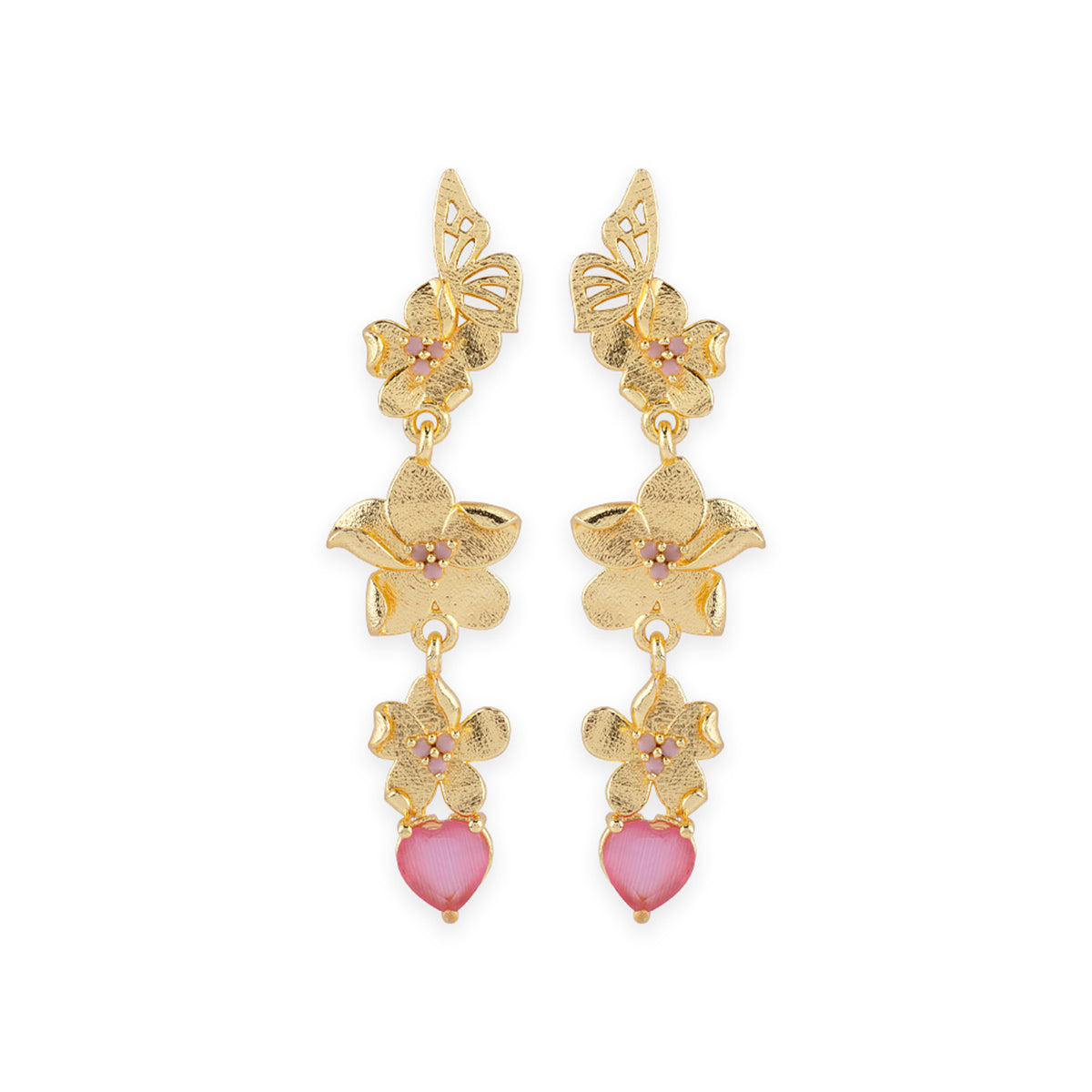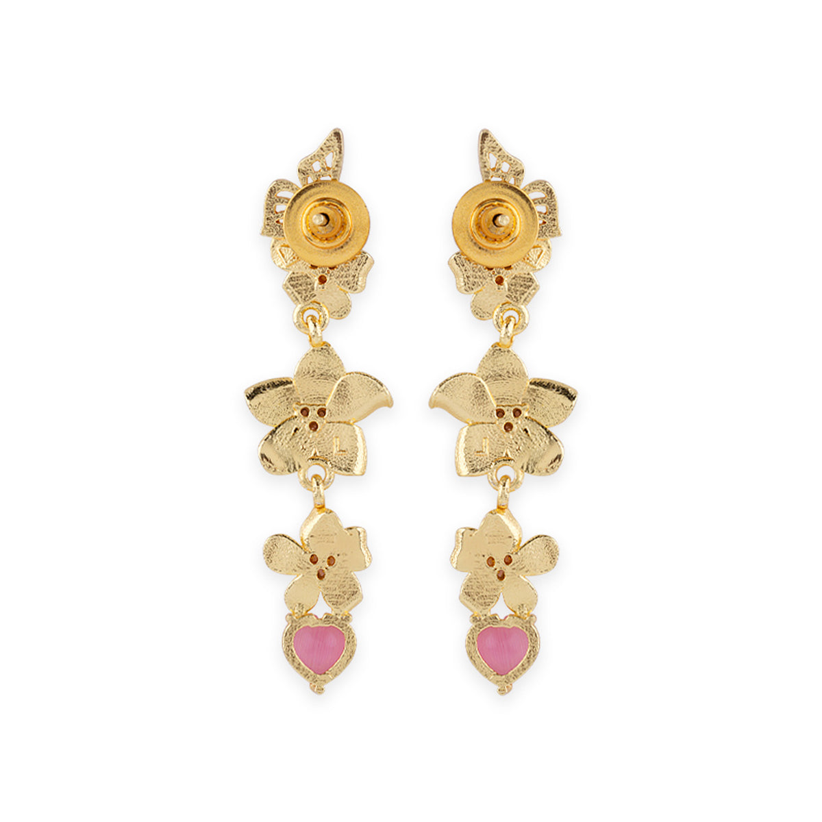 Classy and contemporary butterfly design earrings to steal an abundance of compliments. The finely crafted details and the pink gem add to the beauty of the earrings. This eye-catching butterfly design goes well with either a traditional or modern outfit with a sleek ponytail.