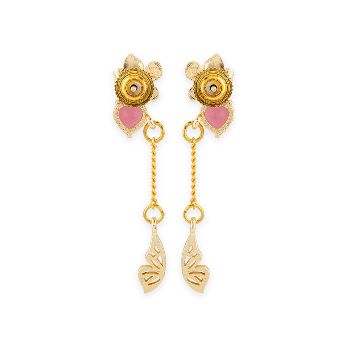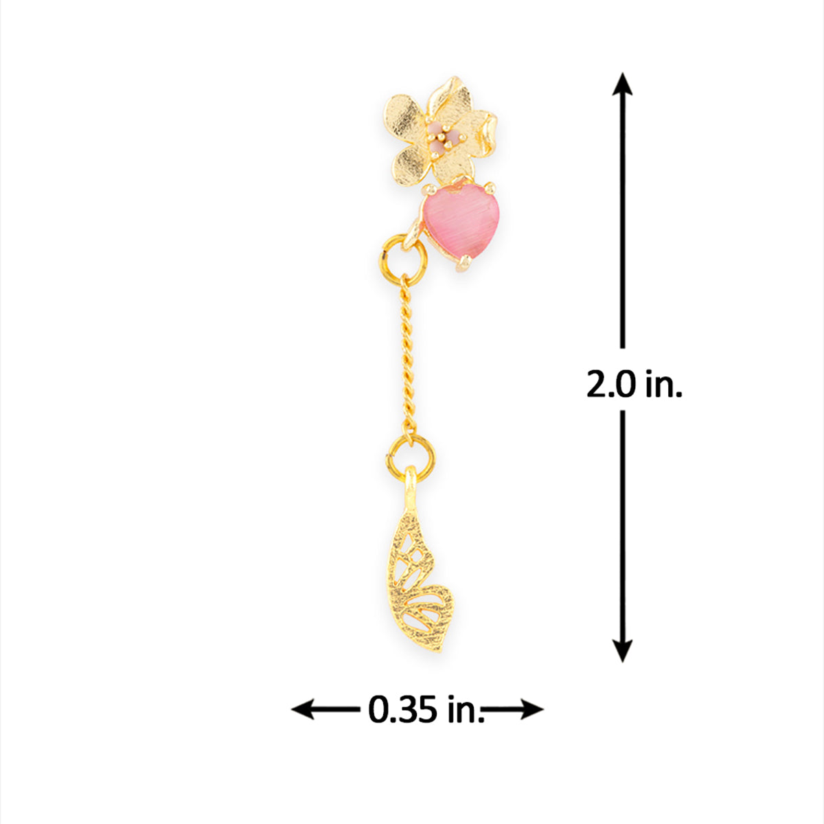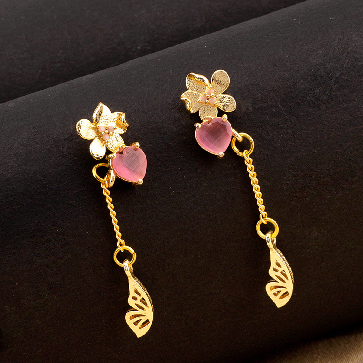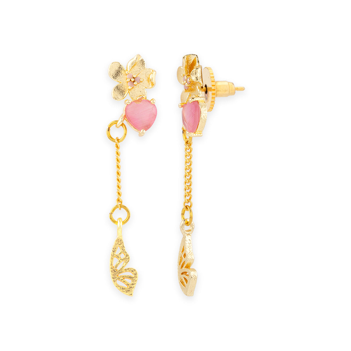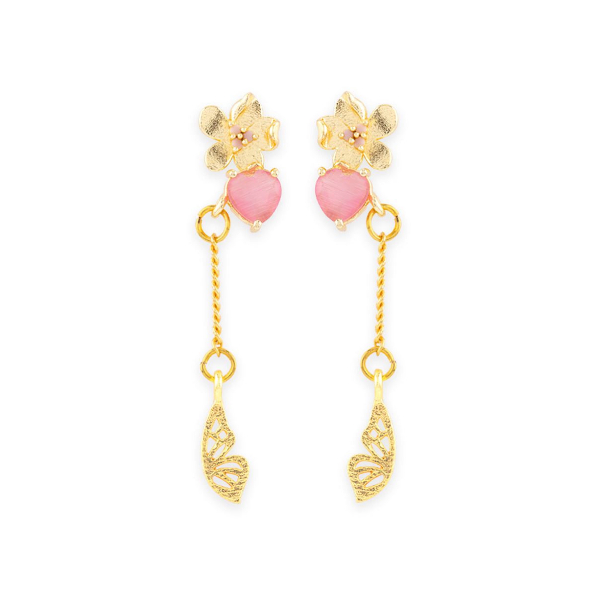 For the one who likes to make a statement with their jewelry, here are the butterfly drop earrings to match your scene-stealing ensembles. With the heart-shaped pink gemstone, you experience the charm of the stone and the die gold.
