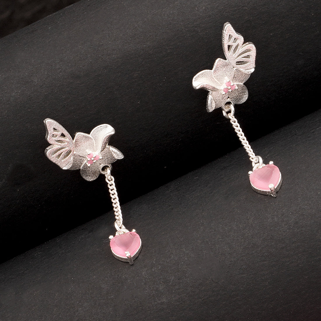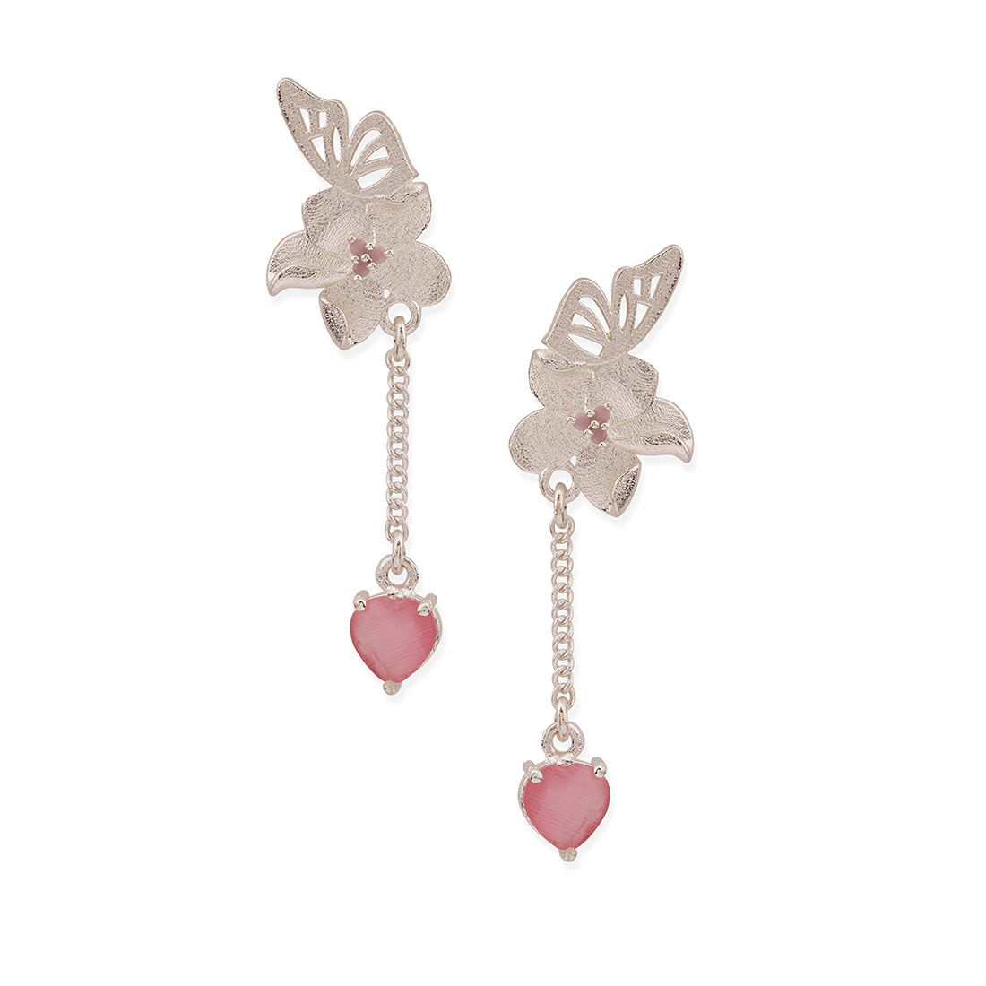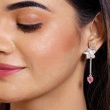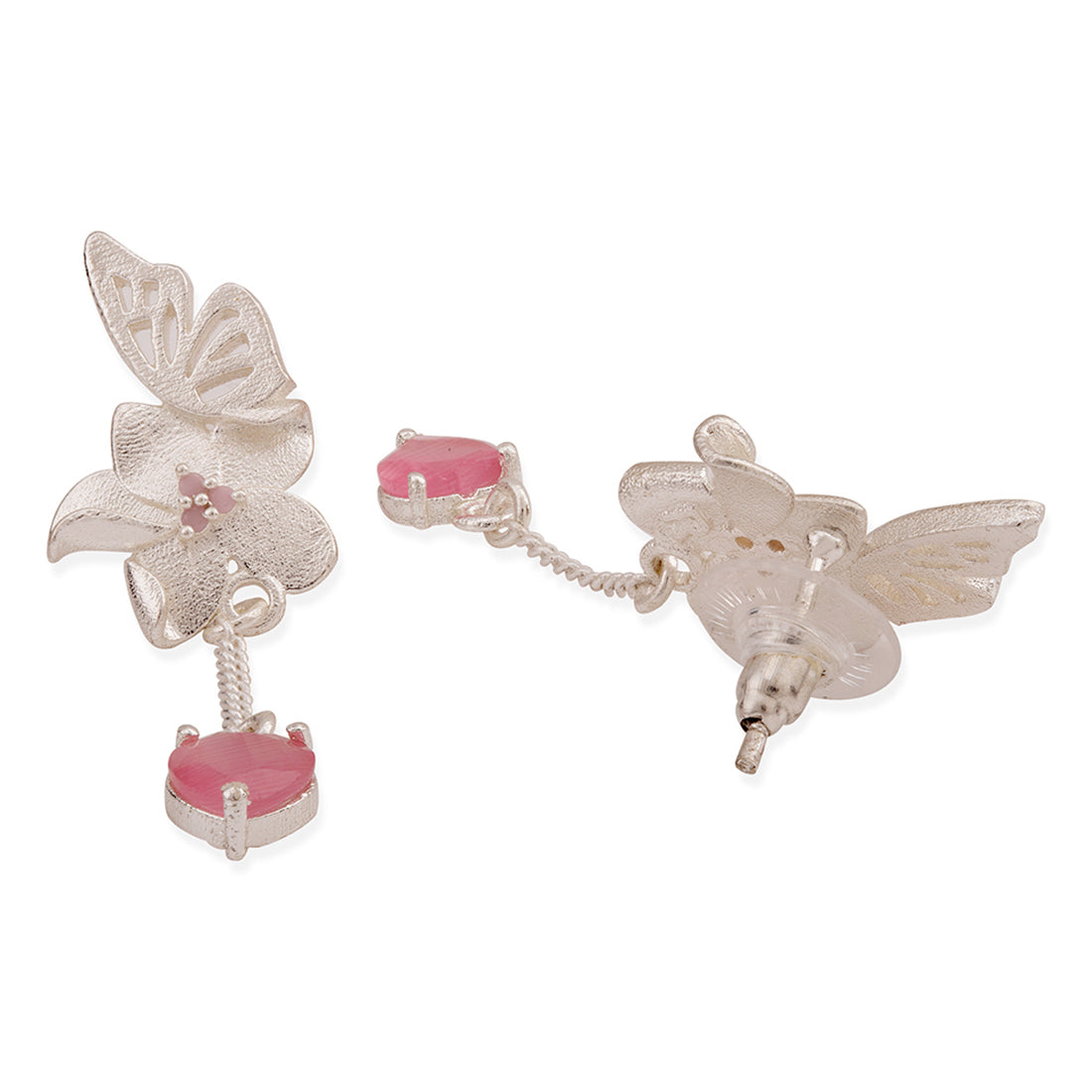 This pair of earrings are stunning ear candies, made out of brass, studded with pink gemstones, and encased prettily in a silver plating frame. This little hanging pair adds elegance and class to your look.