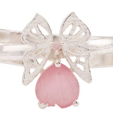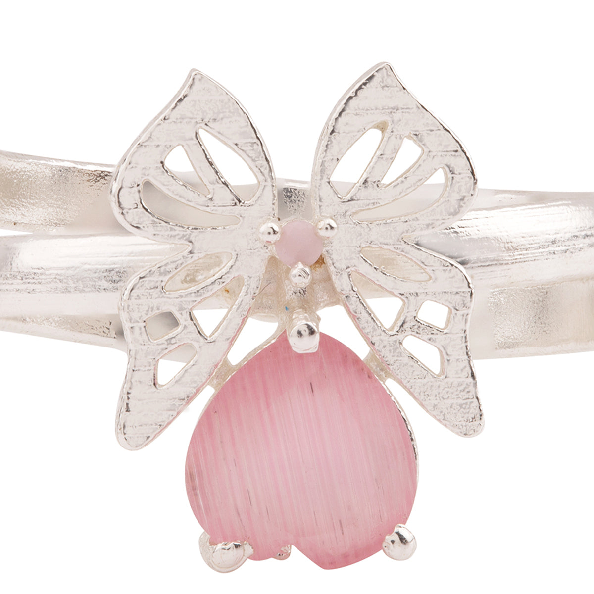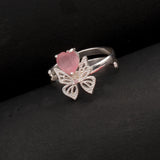 Here is another exquisite design inspired by the beauty and grace o a butterfly. This ring is for delicate women who like to fly and make the world a better place to live in. It has a cute butterfly with a heart shaped pink gemstone.
