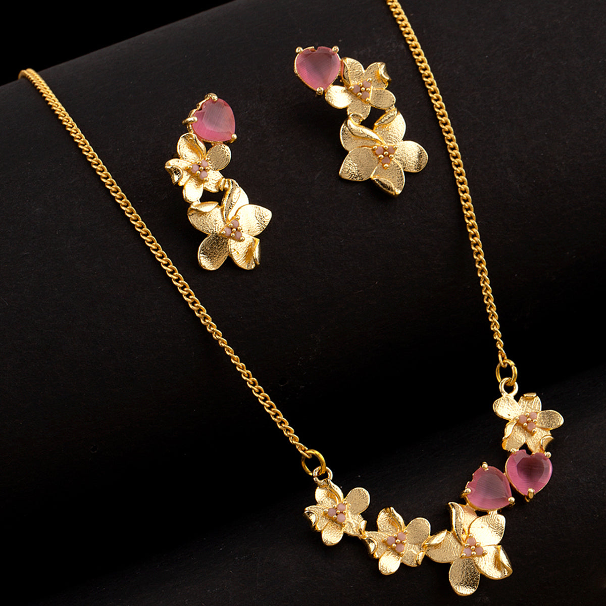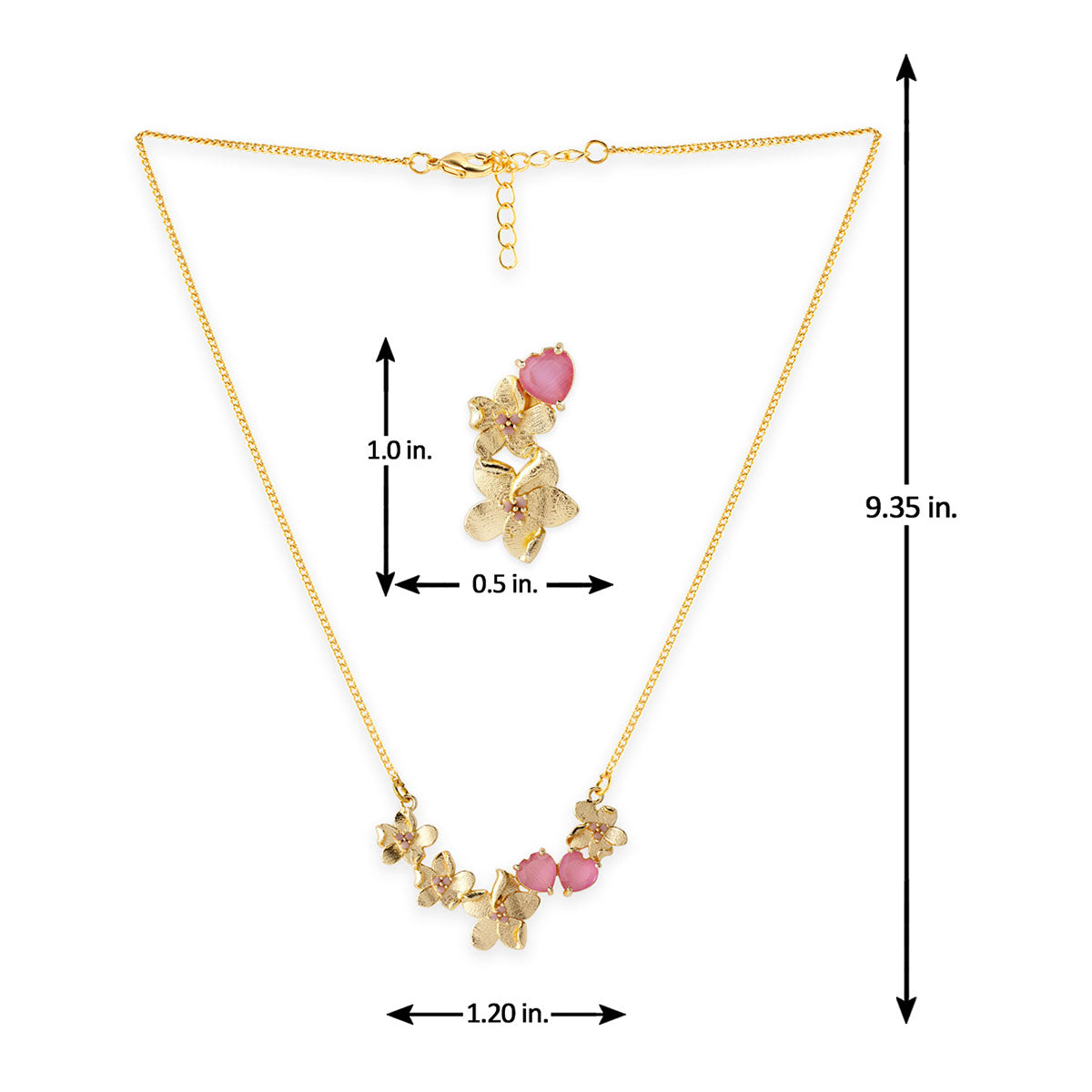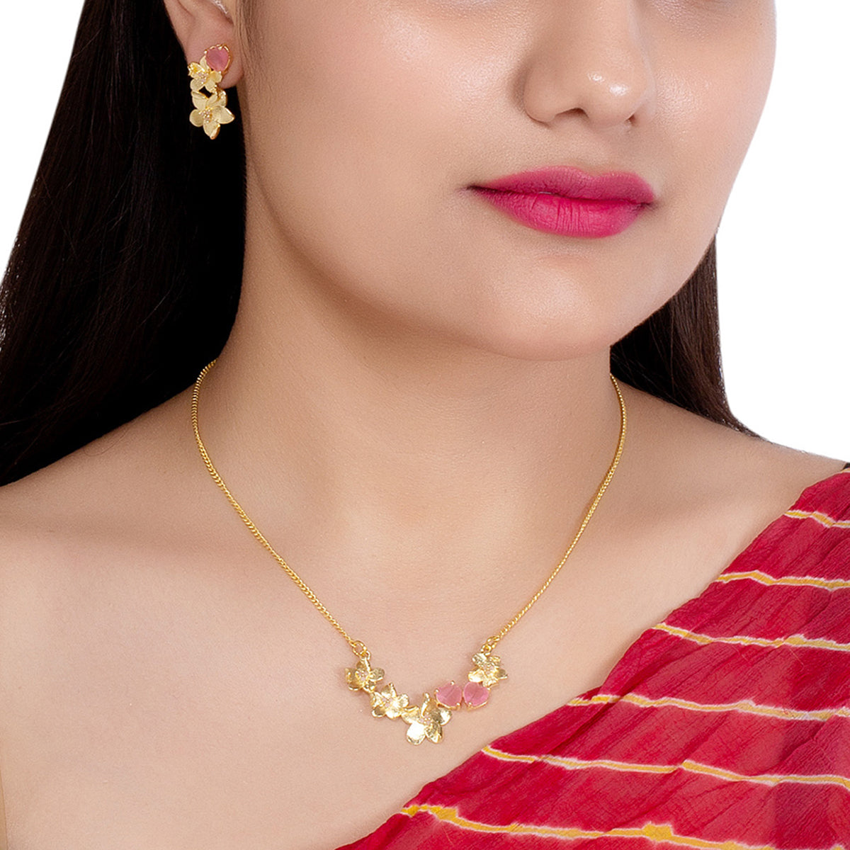 This pendant set will make your look stylish at your office party. Crafted with brass with floral and butterfly design. Wear this set with an Indo-western dress.