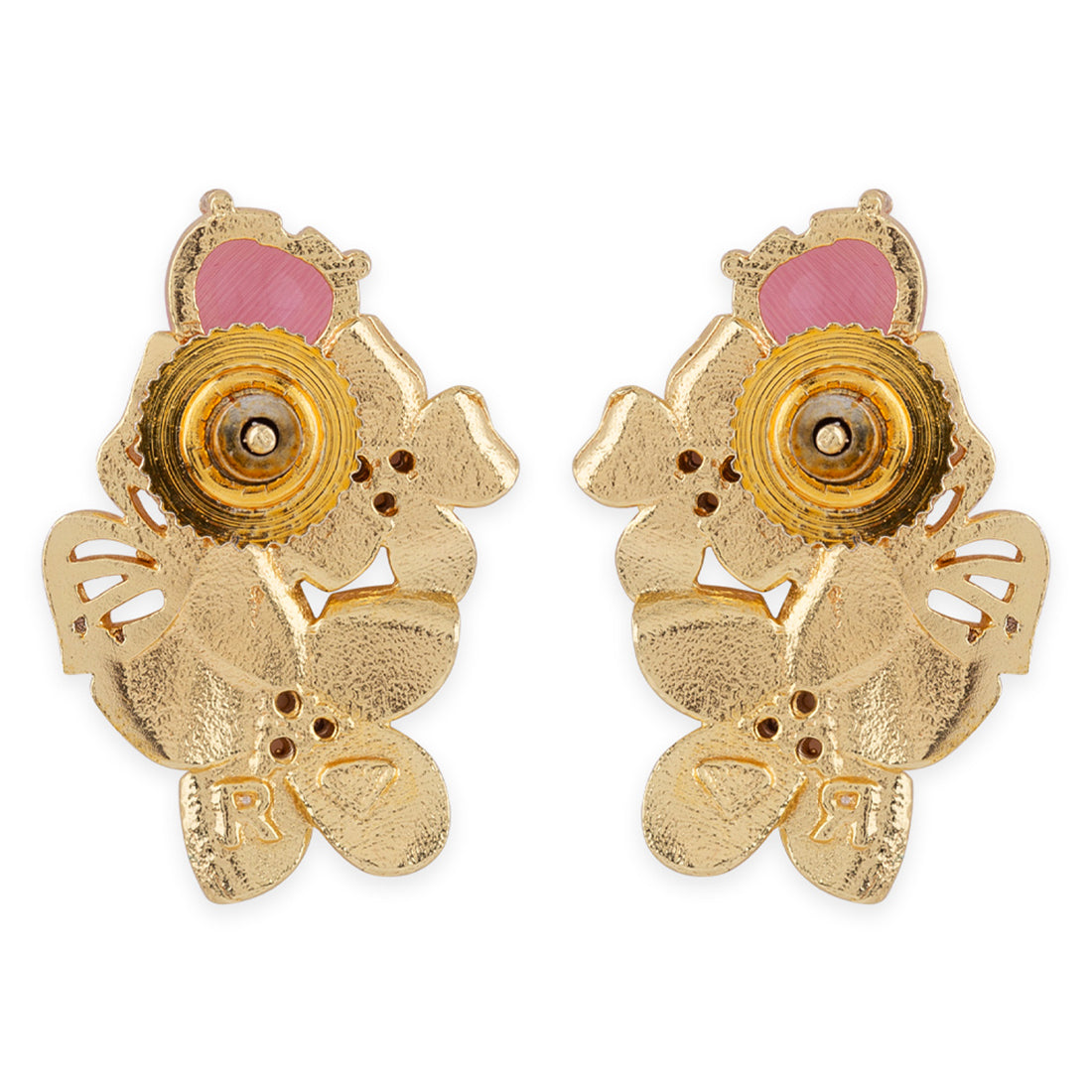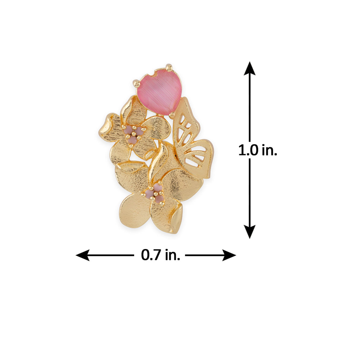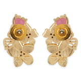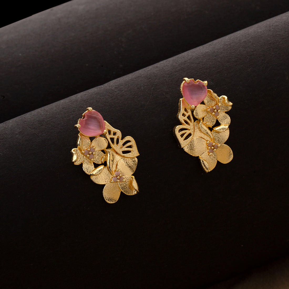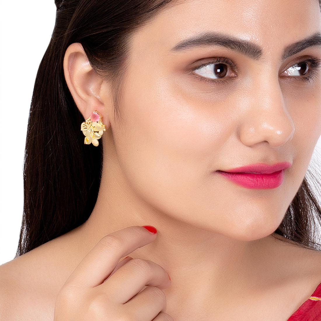 These earrings are made of brass with a shiny finish texture with pink gems, providing that extra sparkle. The buffed die gold gives a shimmering touch to the earrings. It teams up well with your evening gowns.