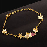 Pick up this adorable chain bracelet for an exquisite addition to your jewelry collection. Buffed to a die gold shine, This brass piece features a flower design and is studded with a single tiny gem. Team it up with your modern outfit and rock the show.