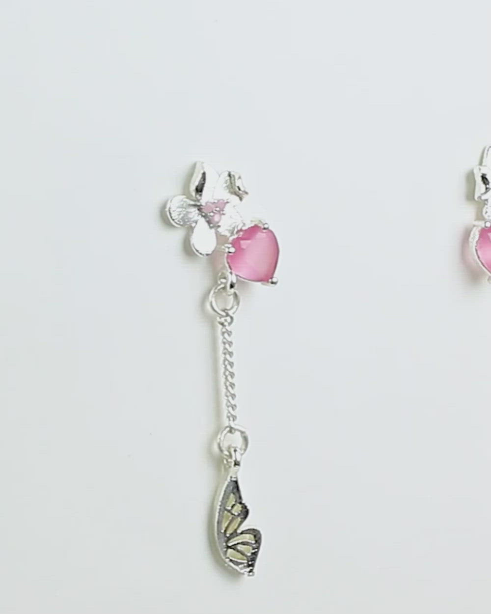 Love Paradise Floral Drop Butterfly Wing Earrings