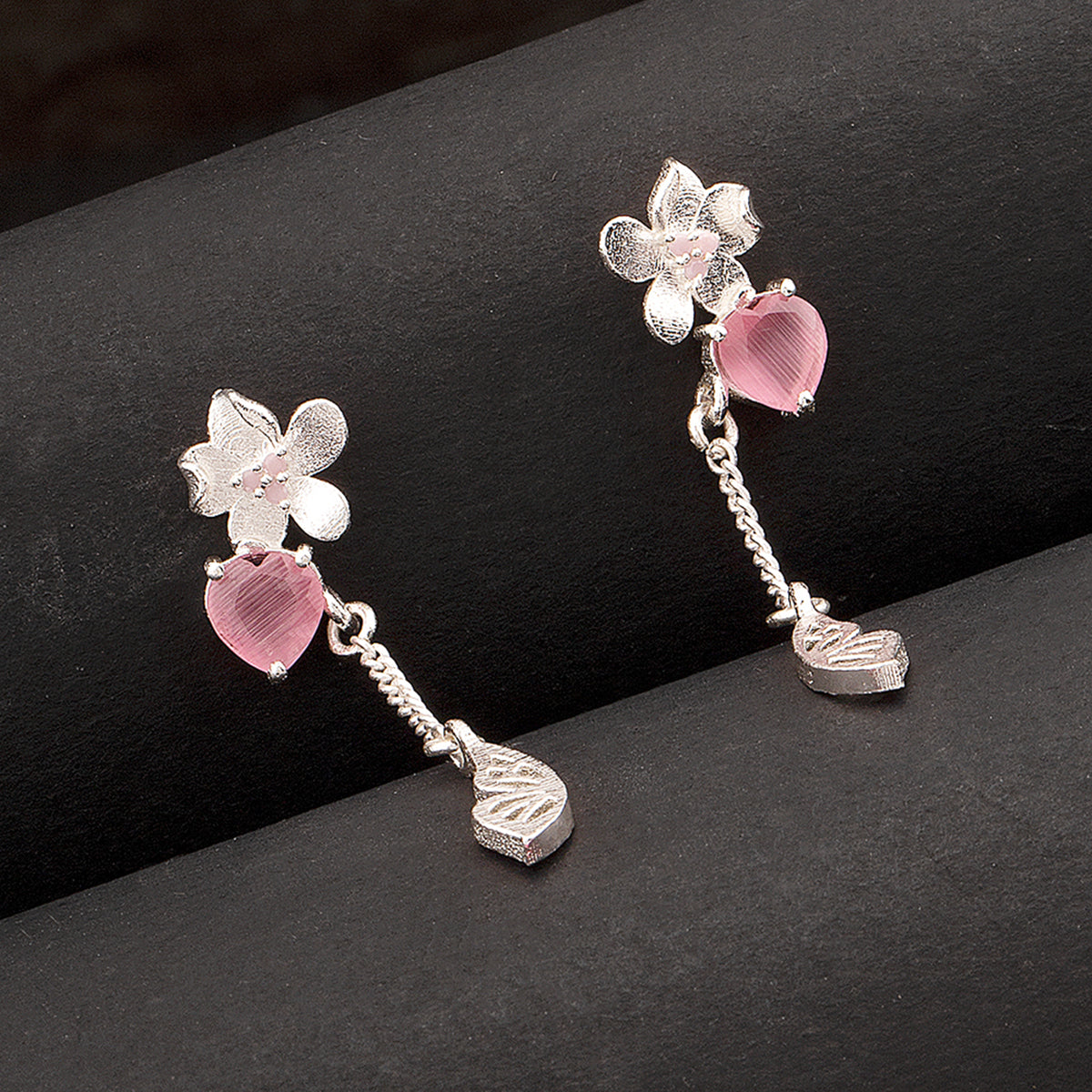 You will effortlessly fall in love with these beautiful drop earrings. These silver plated are studded with shiny gemstones, the size and the vibrant shine make these earrings an absolute show stopper. You can wear with your part wear attires.