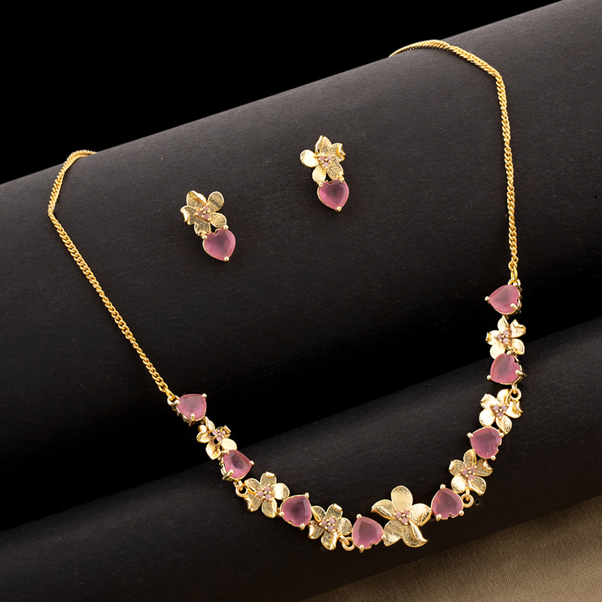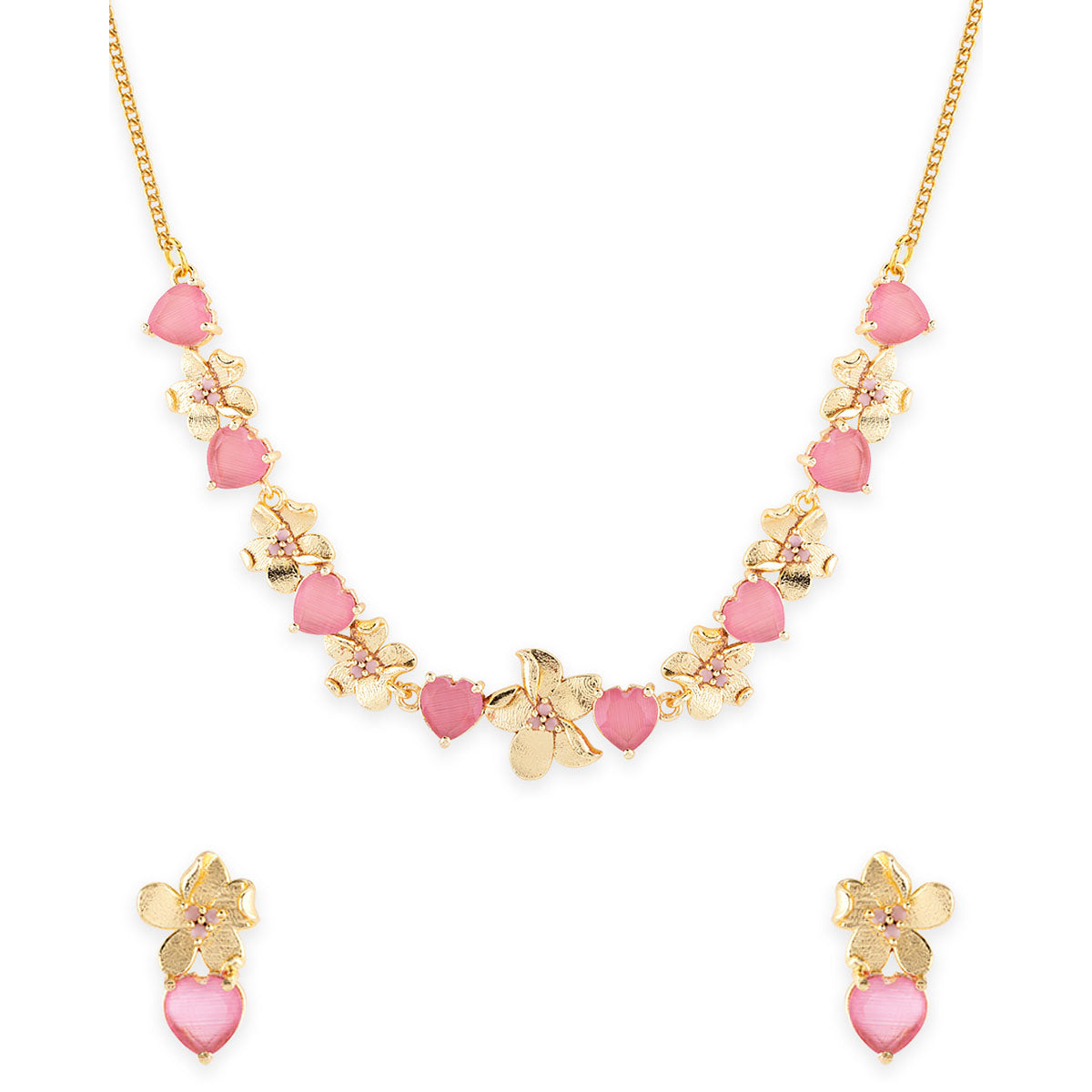 This impressive unique floral necklace set has been crafted out of brass to give it a timeless and elegant look. Pair it with a floral suit and saree to look stunning.