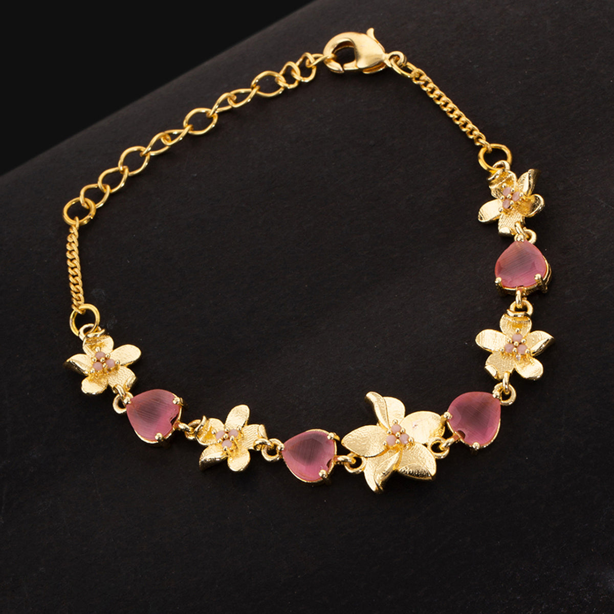 Pick up this adorable chain bracelet for an exquisite addition to your jewelry collection. Buffed to a die gold shine, This brass piece features a flower design and is studded with a single tiny gem. Team it up with your modern outfit and rock the show.
