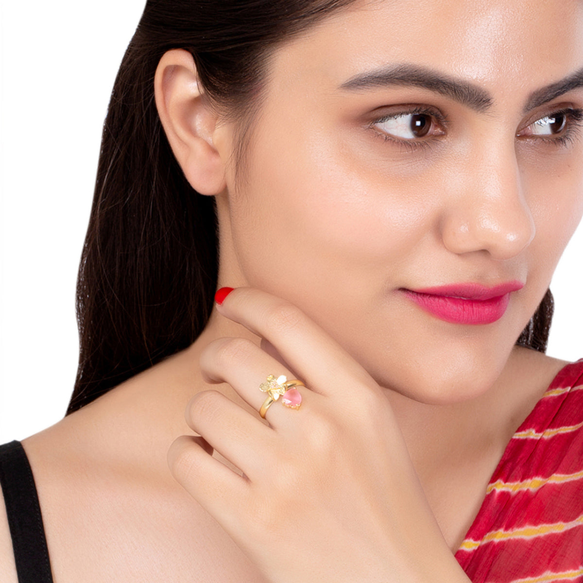 For those who specifically go for picking up a floral-themed ring, this would serve as the best choice. The touch of die gold on the overall design further adds beauty to the ring. This cute piece of floral jewelry goes well with modern as well as traditional outfits.