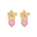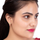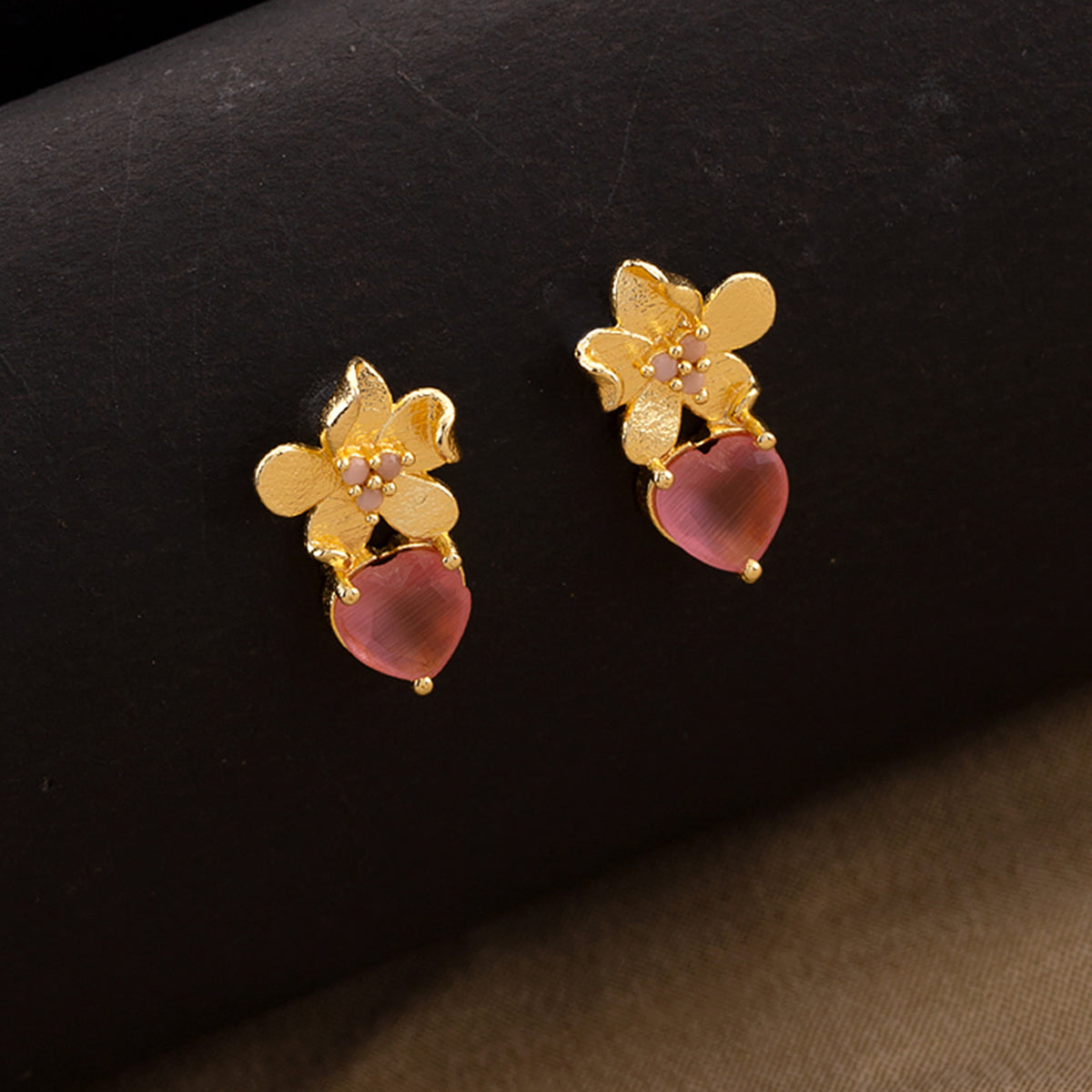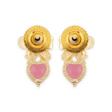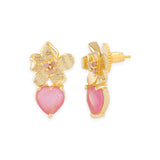 You can find nothing better than these beautiful floral earrings to embellish your ears. This brass pair is studded with a heart-shaped pink gem and plated with die gold. Wear this pair with your formal party dress to look stunning.