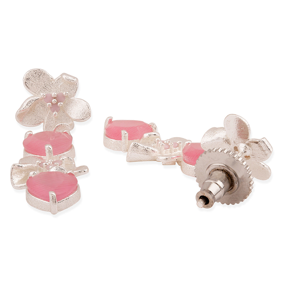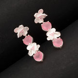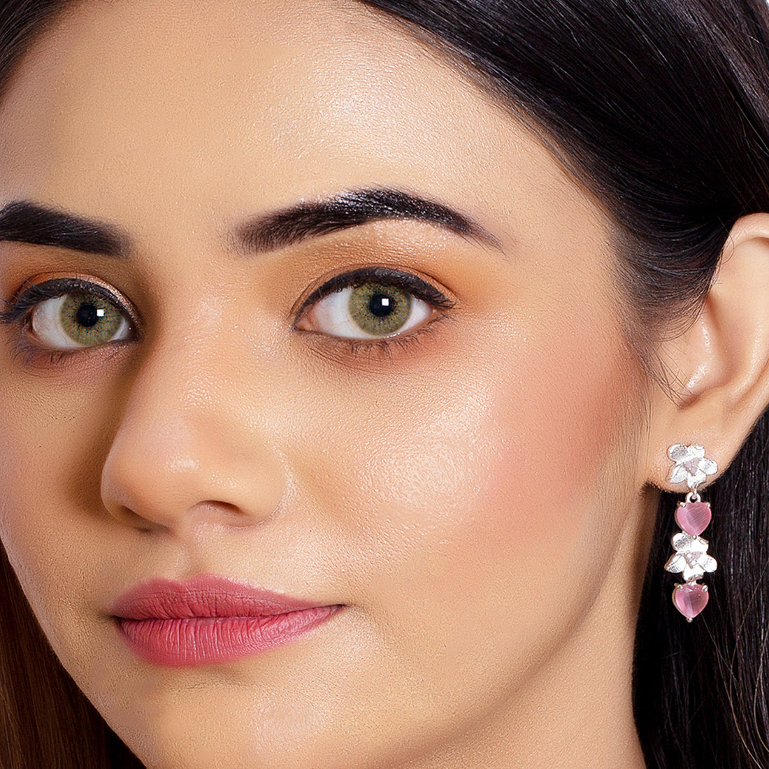 This pair of earrings are stunning ear candies, made out of brass, studded with pink gemstones, and encased prettily in a silver plating frame. This little hanging pair adds elegance and class to your look.