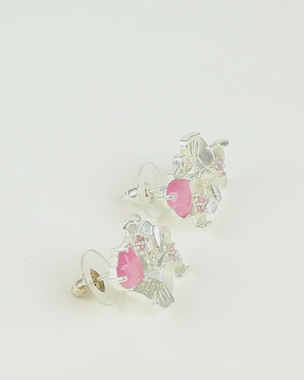 These gorgeous earrings are crafted with the beautiful floral pattern rimmed by the silver plating and studded by a heart shaped pink gemstone. It can be adorned with a summer dress to give you that extra pop of freshness or a high neck winter pullover to add warmth to your look in the chilly winters.